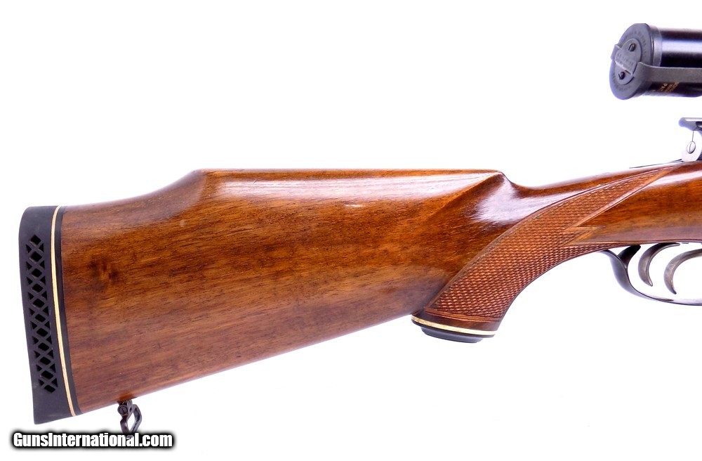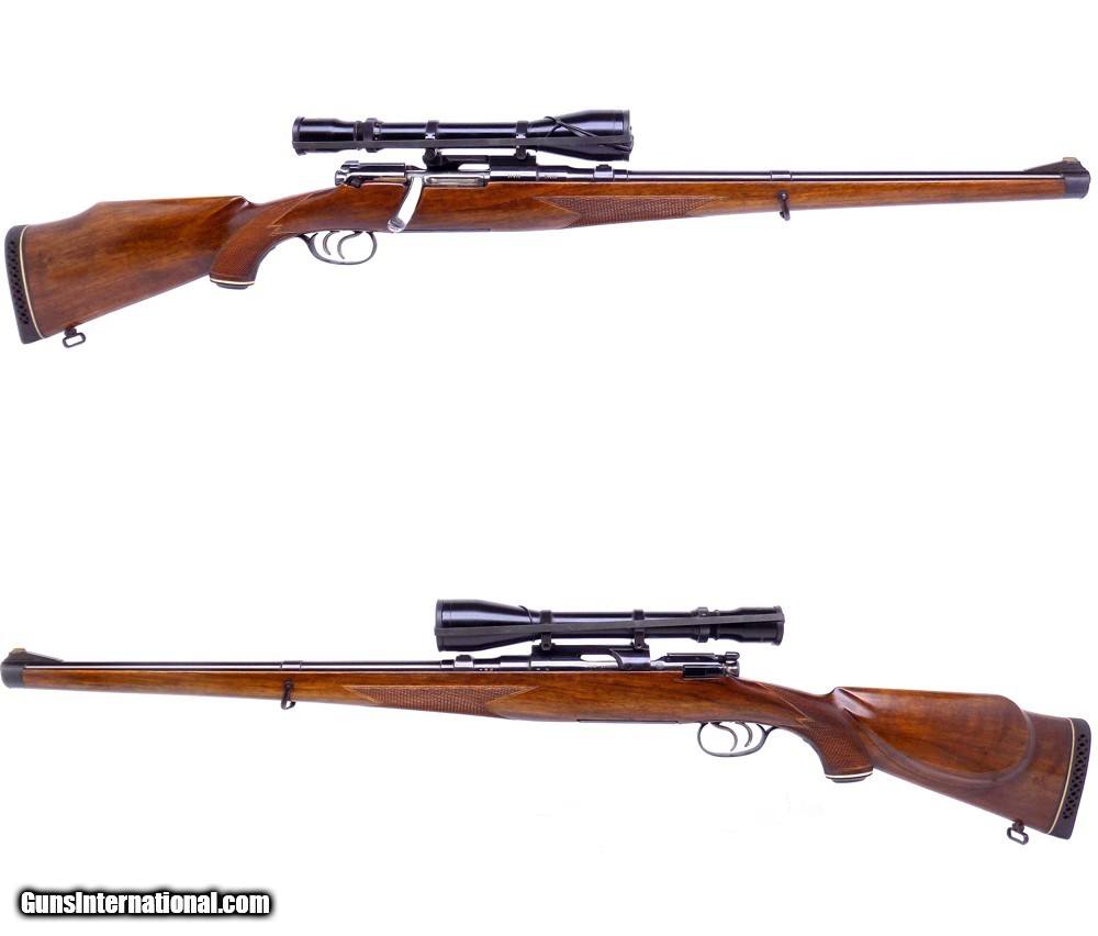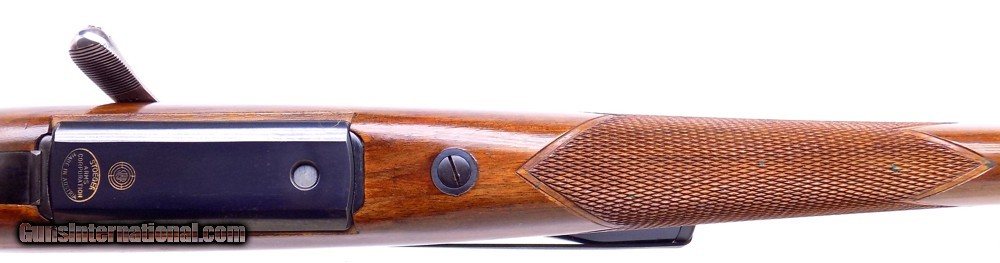 Description: ****************SALE PENDING**************** A customer has committed to the purchase of this listing. It takes time to complete a purchase so the listing may be "SALE PENDING" for some time before the transaction is completed. Another “ESTATE” firearm listing brought to you from Dust 2 Dollars who prides themselves on showing the complete gun in high quality pictures along with a detailed description for your consideration. We offer you a “Very Nice” Steyr Mannlicher MCA model 1961 Daimler Schoenauer Carbine in 243 Winchester manufactured in 1962. The Stoeger Arms Corporation was the official Mannlicher-Schoenauer importer and Steyr worked closely with Stoeger to produce rifles suitable for the American market. The top of the chamber ring is marked under the scope mount “MADE IN AUSTRIA / ORIGINAL / MANNLICHER / SCHOENAUER / MOD. MCA / KAL. 243”. The left side of the receiver is marked with 3 proofs that include “NPV” and “62”. The right side of the receiver is also marked “STEYR-DAIMLER-PUCH A.G., STEYR” and with the “STEYR in a bullseye” logo. The safety lever is marked “S” and the floor plate is marked with a “STEYR” bullseye logo over “STOEGER / ARMS / CORPORATION / MADE IN AUSTRIA”. The recoil pad is marked “White Line / Pachmayr”. The serial number is 37152 which are matching on the stock, barrel, receiver, bolt, trigger guard and nose cap. The set triggers that works just fine are numbered “3907”. So it is all matching less the trigger group. The 20 inch barrel has a bright bore with excellent lands and grooves with no issues. The metal finish shows marks and wear spots and overall is in very fine condition. There are some small surface marks and wear from the last 60 years of use. The stock is solid with no cracks on the inside or outside. It shows wear, marks and dings from use as you can see, but is solid with no issues. A recoil pad was added making the L.O.P. 13 ½ inches over the pad. There has been an old sling swivel hole filled ahead of the current one as shown in the pictures. As you can see a mount and scope were added to the gun. The mount is a Leupold Adjusto-Mount with 1 in scope rings. In them sits a period correct Bausch & Lomb BALvar 8 2.5x8 scope with tapered crosshairs. The scope is clean and clear and wears an old school set of Durfee & Deming scope covers. They were the original version of the Uncle Mike’s scope covers most of us have dealt with in the past. This will be shipped fully insured UPS Ground to your FFL for $60. It will be shipped in a foam lined double walled cardboard box that we have manufactured for us so that your gun arrives safe. Payment to be made by USPS Money Order or Cashier’s Check. All firearms come with a 3-day inspection from D2D’s. SOLD Rifle Caliber: .243 Winchester |