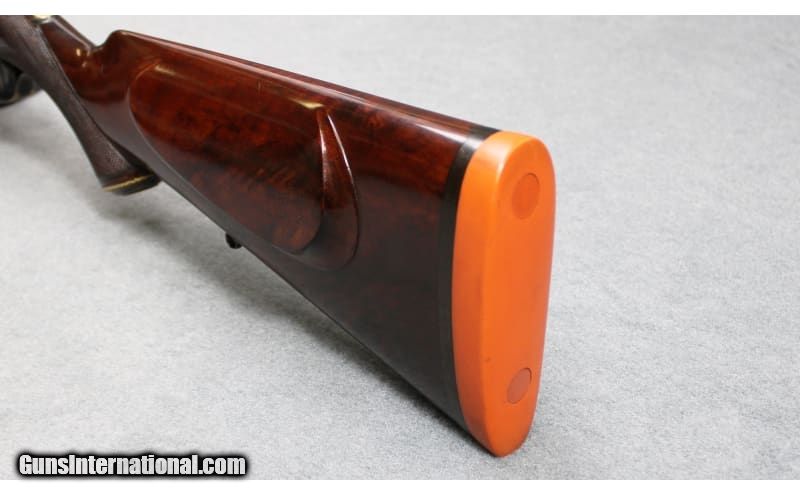 Description: Manton & Co Boxlock Double Rifle chambered in .360 Express (.360 No 2 Nitro Express). Features include blued 26 inch barrels and color casehardened receiver. Extensive gold-inlay scroll engraving throughout. Comes in a wood and leather takedown case with accessories. .360 No2 Nitro Express SOLD Metal Condition: Very Good with Minor Handling Marks Wood Condition: Revarnished Very Good with Minor Handling Marks and Dings Bore Condition: Bright And Clear with No Pitting Barrels: 26 inch with Solid Rib Triggers: Double Stock Dimensions: 14.5 inch LoP Butt Pad: Rubber Weight: 9 lbs 12 oz Sights: Three-leaf Rear and Beaded Blade Front with Flip-up Moon Bead Item Location: Fort Worth, TX |
