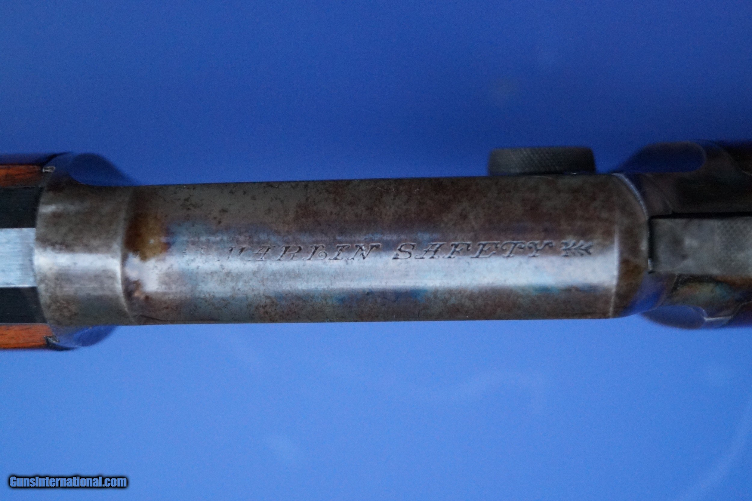 Description: This is a scarce early Marlin Model 1897 .22 Lever Action Rifle with Antique Serial Number under 175,000 indicating it was manufactured before Jan. 1, 1899. This was Marlin's first .22 rifle with a takedown feature making it easier to tote around which coincided with the bicycle craze of the 1890's. These Antique 97's are difficult to find because they were only made for roughly 18 months before the legal cut-off for Modern Firearms. Since all Model Marlin Rifles share the same consecutive serial range, its difficult to know exactly how many Model 1897's were made in this small window before 1899 but I doubt more than 3000-4000 and probably less than that. You can usually find a rare Model 1888 Marlin Lever Action (production approx. 4,000 1888-1890) with considerable ease compared to an antique Model 1897. They are simply a bear to find and the few we do turn up are often in poor shape no finish, refinished, and almost always have terrible bores. This one is FANTASTIC. I've only found one example that was nicer than this one in the past 20 years and at the time, it sold for more than double what we have this one priced for. In fact, I'm seeing Model 1893 30-30's with antique numbers priced higher than this one and they are much more common. This one has the desirable 24" Octagon Barrel with standard full magazine and standard hard rubber crescent buttplate that is unbroken with the Marlin Logo. The original case colors on this rifle are about 70% with the balance turned to a scattering of patina from natural aging. The colors are quite strong in the protected areas and there are likely some bright colors under some of the original factory lacquer in the corners which has turned dark over the years. The top of the frame has the early desirable rounded top marked "MARLIN SAFETY" in script and MODEL 1897 on the upper tang. Barrel has the correct early Marlin address and correct patent dates. Original Front and Rear Sights although the rear sight is missing the little elevator (I'm currently looking for one btw to go with it). The barrel and magazine tube have 95% original blue with a little bit of light brown patina mixing through. The walnut stocks are in Excellent Shape with just a few minor handling marks, no crack, no sling swivel holes, no repairs, no chips, and 98% of the original factory lacquer that is still a nice light reddish orange hue. Wood to metal fit is perfect. The buttplate is solid with no chips or breaks and a clear distinct Marlin logo. The action is nice and the bore....Get Ready For This...the Bore is nearly Excellent which is almost unheard of on a 19th century .22 rimfire rifle. The bore is bright and shiny with very nice lands and grooves. This is a great little rifle in collector grade condition that was looked after and is 100% original aside from the rear sight elevator. This is not an easy rifle to find and the few nice ones that have survived rarely come up for sale. SOLD Antique: Yes Manufacturer: Marlin Mfg Model: 1897 97 Caliber Info: .22 Condition: NRA Antique Fine+ to Exc Barrel Type: Octagon Manufacture Date: Pre-1898 Antique |
