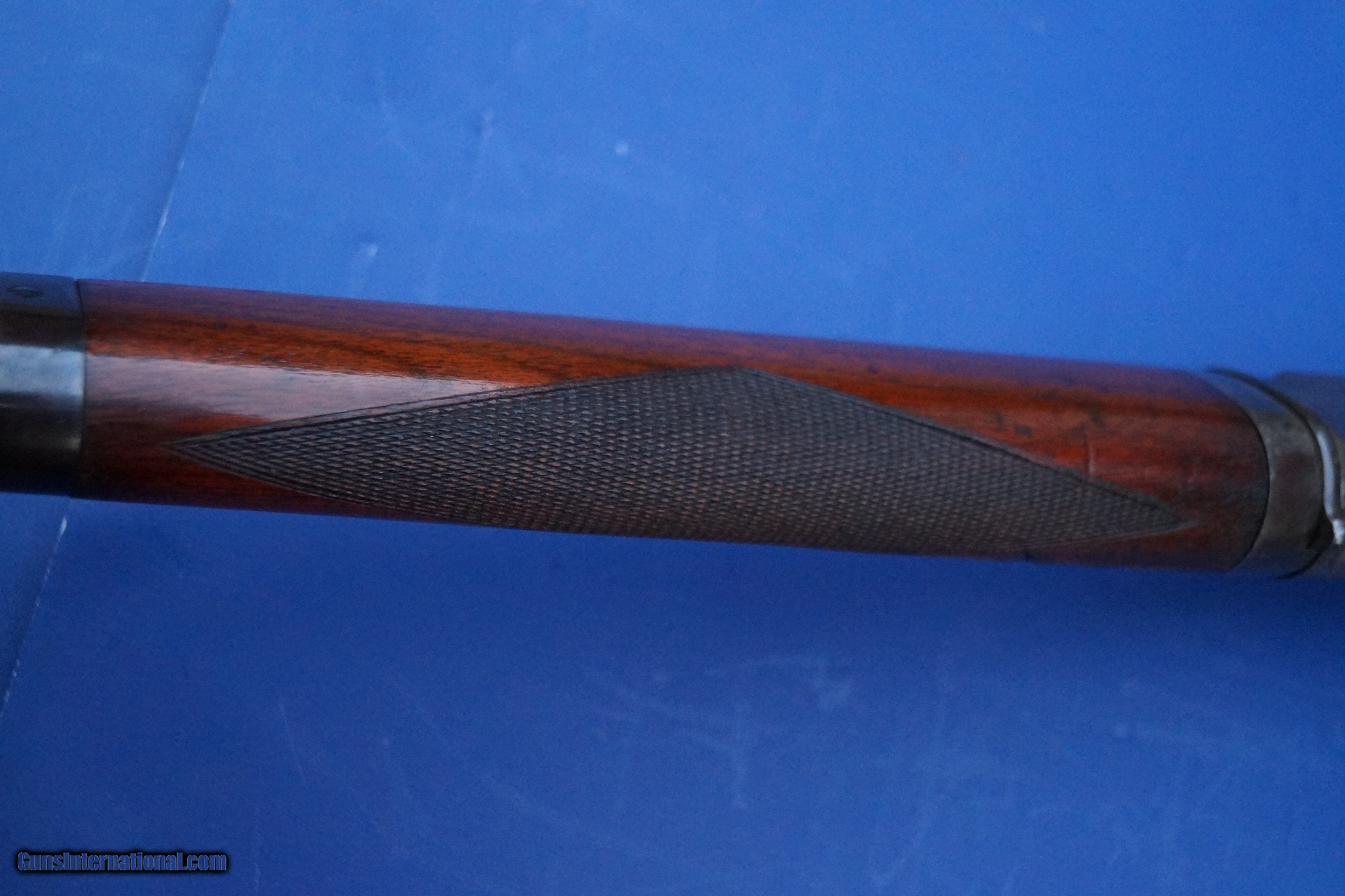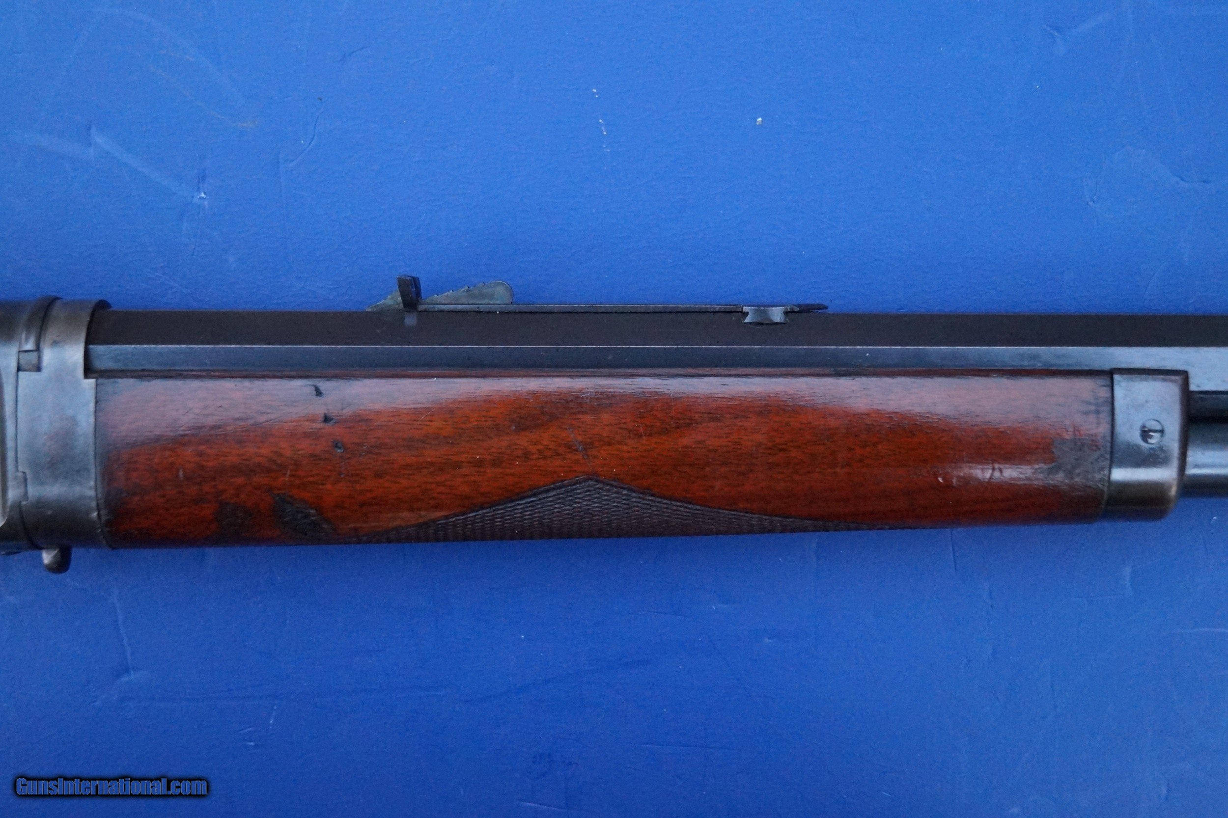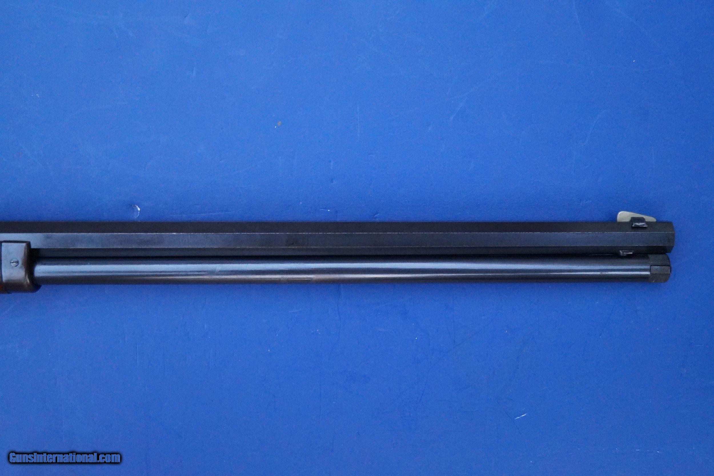 Description: This is a scarce Model 1895 Deluxe Rifle with Special Order Pistol Grip Checkered Stock and the scarce Take Down Frame. Standard 26" Octagon Barrel, Full Magazine, and Crescent Rifle Buttplate. Caliber is 40-82. It also has a desirable Pre-1898 Antique Serial Number in the 137,000 range. Serial numbers start at around 131,000 for this model (All Marlins shared the same consecutive serial range) so this one is probably first or second year production. Marlin only made the original Model 1895 from 1895 to about 1917 with just 18,000 units produced. To put that into perspective, the Model 1886 Winchester Rifle, this Marlin's main competitor, outnumbers the Model 1895 at an almost 10:1 ratio. Today, a Model 1895 is a scarce and desirable gun and the deluxe and takedown features put this rifle on another level. During the latter half of the 19th Century, traveling out West by Train became popular for many hunters. Magazines like Forest and Stream (aka later as Field and Stream) had advertisements from Railroads offering trips out West for hunters living in the East. This is where the takedown frame came into play as this rifle could be broken down and either placed into a custom luggage case or a soft canvas case for ease of travel. Overall Condition Grades to NRA Antique Fine+ to Excellent witih 50-60% fading case colors on the receiver and 97% original blue remaining on the barrel and magazine tube. The wood retains 95% original varnish with very good checkering that shows light usage that isn't worn down. No cracks or repairs but does show some handling marks including what looks like a boot spur once rolled across the right side of the forend....which is not uncommon on 19th century rifles. Fine Plus wood overall and Exc. Wood to Metal Fit. The takedown mechanism works and is still very tight. Excellent Bore. Original Sights include the Marlin Ballard Rear Sight and the Standard Rocky Mountain Front sight with German Silver Blade. This is a very rare rifle in great shape that is priced for about half that of a comparable Winchester 1886 Deluxe Rifle. SOLD Antique: Yes Manufacturer: Marlin Model: 1895 Caliber Info: 40-82 Condition: NRA Antique Fine+ to Exc. Barrel Type: Octagon |