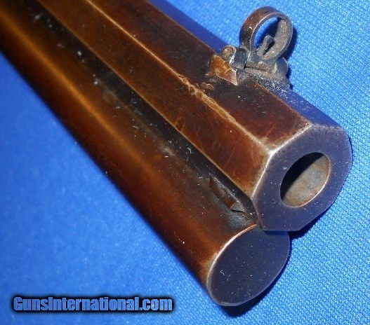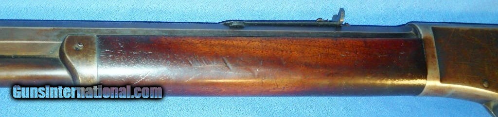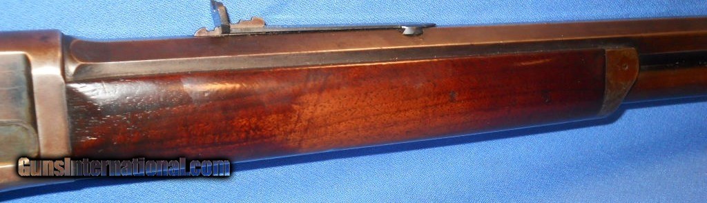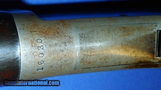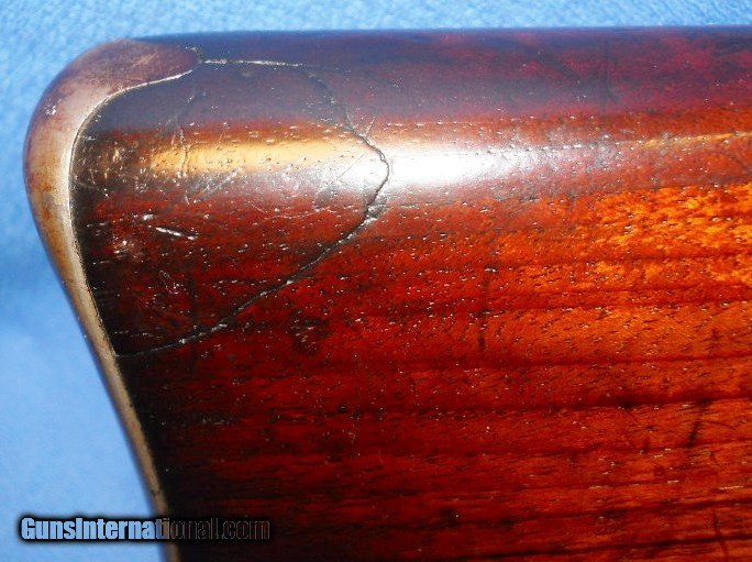 Description: EXCEPTIONAL ANTIQUE .40-60 CALIBER MARLIN MODEL 1881. THE FIRST OF MARLINS LEVER ACTION RIFLES. SERIAL # 16030, MFG. 1882-1892. ONLY 2788 WERE MADE WITH 24" BARREL, SEE FLAYDERMANS 5D-021. BORE HAS DISTINCT RIFLING, SHOWING LIGHT PITTING, SHOULD CLEAN BRIGHT. BARREL & MAGAZINE TUBE HAVE OVER 90% ORIGINAL BLUE THAT IS STARTING TO FADE WITH LIGHT SILVERING ON SHARP EDGES AND FEATURING A FOLDING FRONT SIGHT THAT MAY HAVE BEEN SPECIAL ORDER. FRAME STILL SHOWS BRIGHT SHINEY BLUE FADING TO GRAYISH PATINA ESPECIALLY ON LOWER CARRY AREA & UPPER TANG. LEVER, BUTTPLATE & HAMMER CASE COLORS HAVE DARKENED WITH AGE. WALNUT STOCKS IN VERY GOOD CONDITION, FEWER THAN EXPECTED HANDLING MARKS SHOWING PROPER FINISH WEAR AND OLD REPAIR WITH ORIGINAL PIECE AT BUTTPLATE (PIC # 8). A WELL CARED FOR RIFLE. I WOULD RATE AT LEAST NRA FINE, AS PICTURED. SENSIBLE OFFERS CONSIDERED ! ANTIQUE SHIPS DIRECT TO BUYER ANYWHERE THAT IS OK. SOLD Antique: Yes Manufacturer: MARLIN Model: 1881 Serial Number: 16030 Caliber Info: .40-60 Condition: NRA FINE |