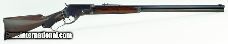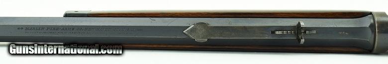 Deluxe Marlin model 1881 .40-60 caliber. Excellent bore. Action works perfectly. Gun has set triggers. Barrel has 98% original blue. Magazine tube has an even brown patina. Receiver has approximately 80% original blue. Stocks have excellent checkering. Barrel length 28”. Fine condition Deluxe model 1881.