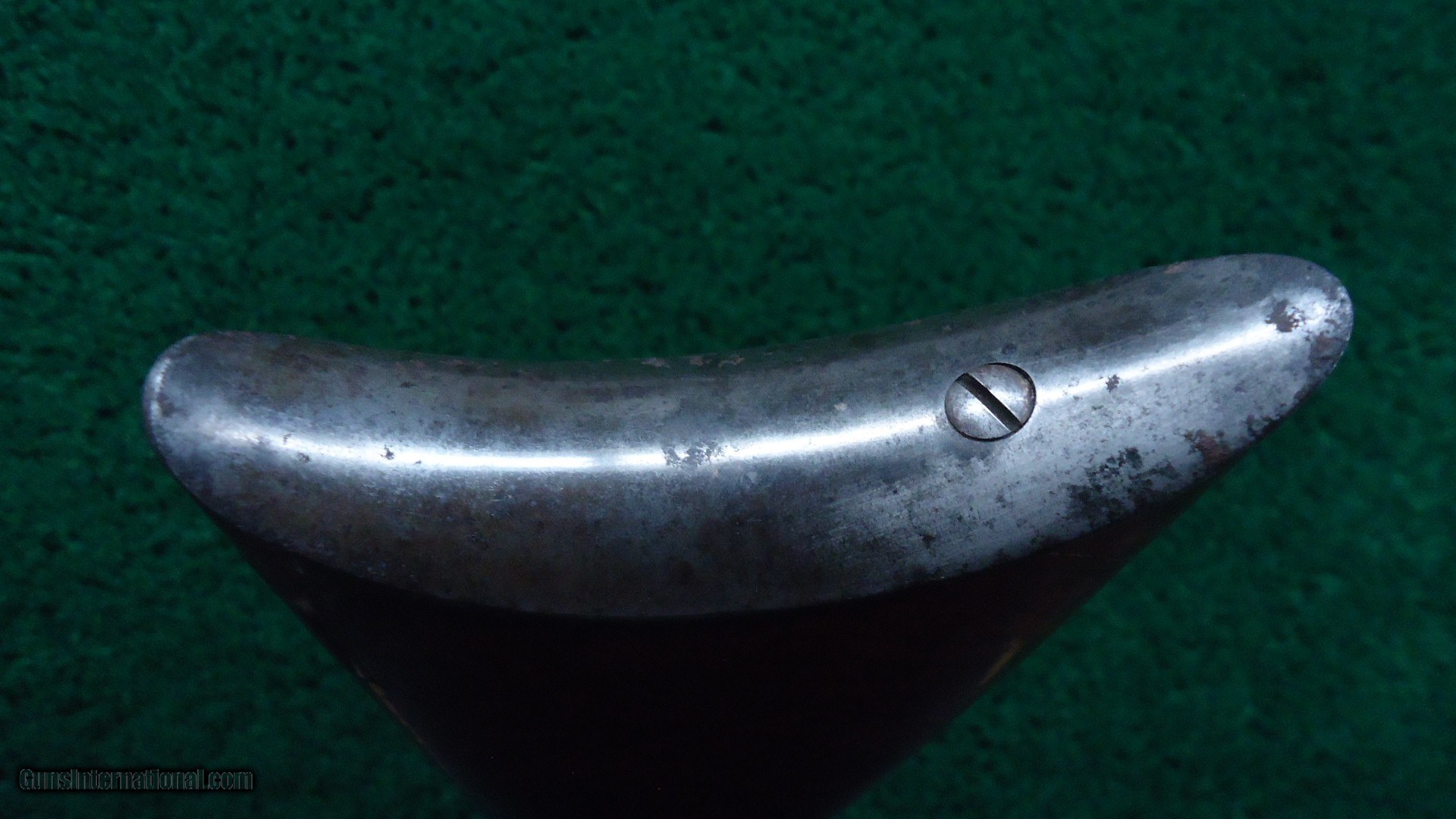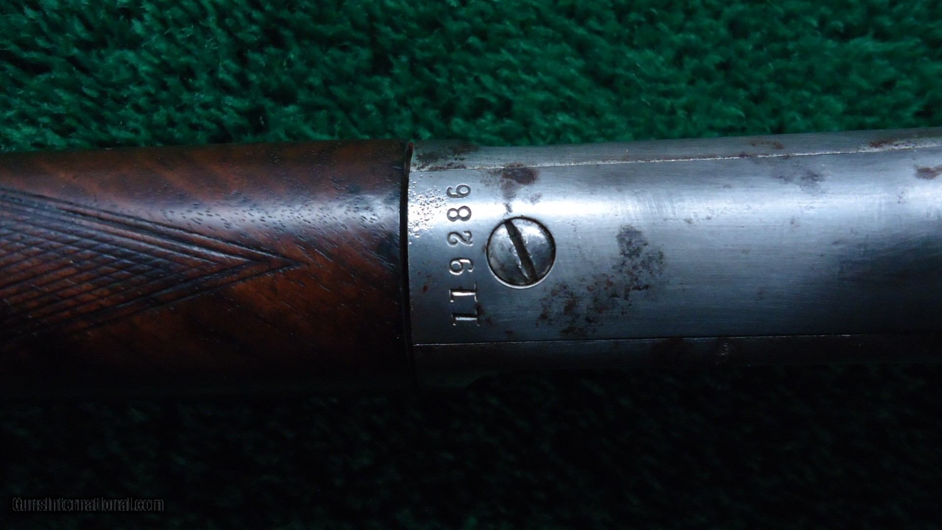 Description: 28 inch octagon barrel with full length magazine tube. Bore is near bright with just a little light pitting and decent rifling. About 60% original nickel finish shows freckling and some small areas of light pitting. Receiver has been lightly cleaned showing a mottled nickel appearance with traces of nickle in the protected areas. Sights include a Beech combination front, flat top sporting rear and a Lyman folding tang mount peep. Deluxe checkered walnut pistol grip stock and forearm retain about 70% original finish showing use with light wear and handling marks. This one was made in 1895. Leroy Merz Antique Firearms specializes in antique and vintage Winchesters and other fine American firearms. Since 1965 Mr. Merz has taken part in the world of firearms and has been a contributor to many well known reference books. We have hundreds of additional guns in every price range at our home online. Search for Merz Antiques in google. SOLD Antique: Yes Rifle Caliber: .38-55 Winchester |