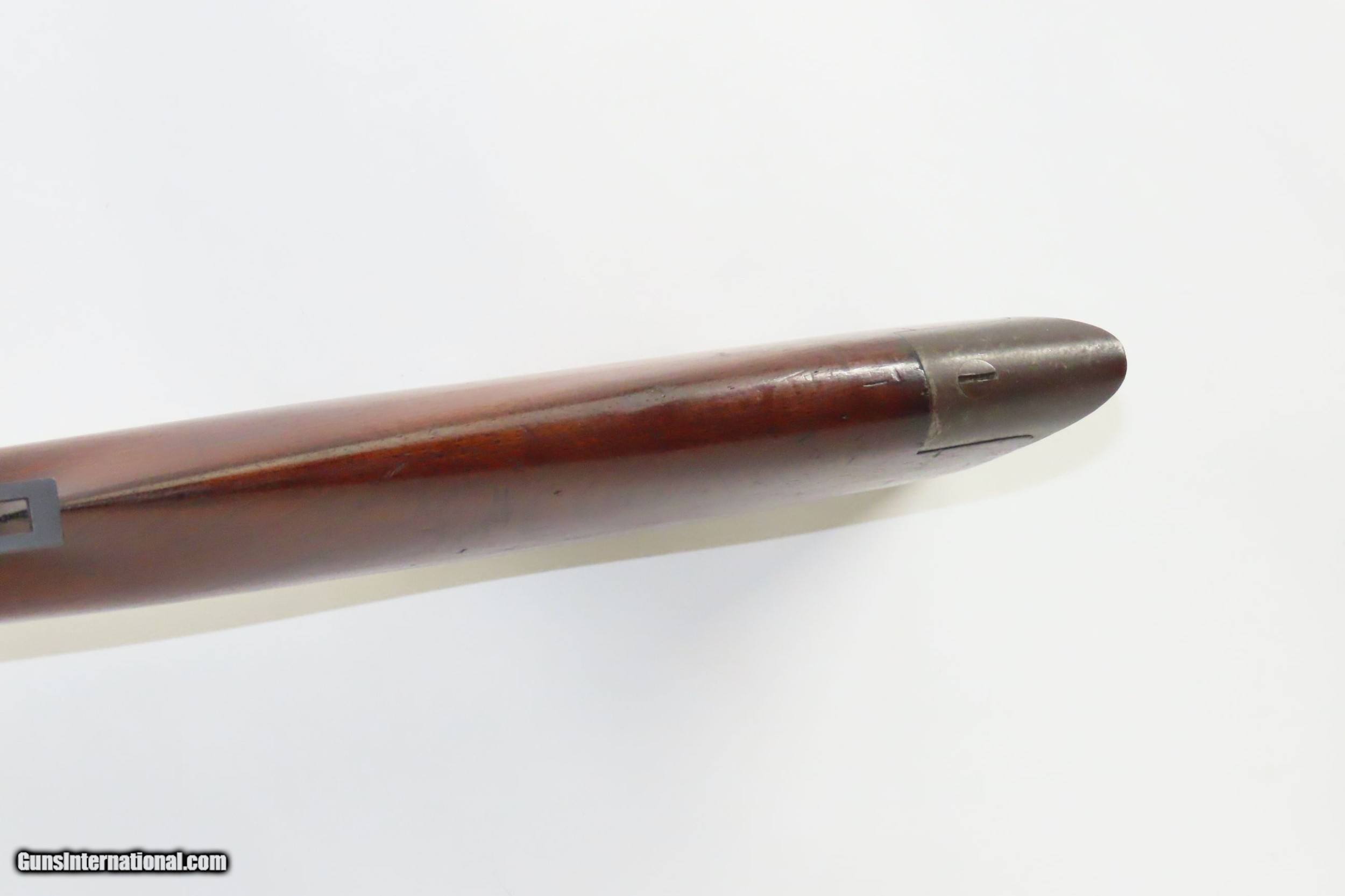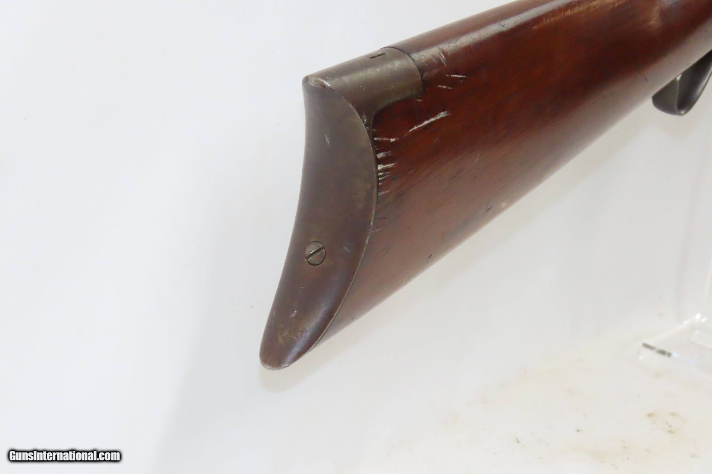 Description: 1870s Antique J.M. MARLIN .22 S, L, LR RIMFIRE Ballard No. 2 SPORTING Rifle Single Shot Falling Block w/Octagon Barrel Here we present an antique J.M. Marlin Ballard No. 2 Sporting Rifle in .22 Caliber Rimfire made circa the late 1870s to early 1880s with a production run between 1876-1891 in New Haven, Connecticut. Early manufactured Marlin Ballard rifles almost never have the caliber stamped on the barrel, as is this example, while the post-1881 guns almost always have the caliber marked. The Ballard design was utilized during the Civil War and retained a following after the conflict as it was simple and rugged. Though Winchester Model 1866s and 1873s were the latest and greatest in firepower, the Ballard was the firearm of many during this period characterized by conflict and westward expansion. This rifle features a fully octagonal barrel with standard blade front sight and semi-buckhorn rear. This one also has a receiver mounted peep sight. The left side of the receiver is marked “J.M. MARLIN. NEW HAVEN CONN. U.S.A./PATENTED. FEBRUARY 9, 1875/ BALLARD’S PATENT.NOV.5.1861”. The overall condition is near fine. Original finish and patina. The action is excellent. The bore is bright with great rifling. The walnut stock shows some wear and remains solid. A fantastic piece! Own the original! This is a legitimate antique and not a reproduction. Barrel is 26 inches. Caliber: .22 S, L, LR Rimfire Overall condition as seen in photos. Very Fast. Very Safe. FREE SHIPPING WORLDWIDE. Delivered directly to your door by express mail! Guaranteed AUTHENTIC & Includes CERTIFICATE OF AUTHENTICITY. ancestryguns $2175 #226388 SOLD Antique: Yes |