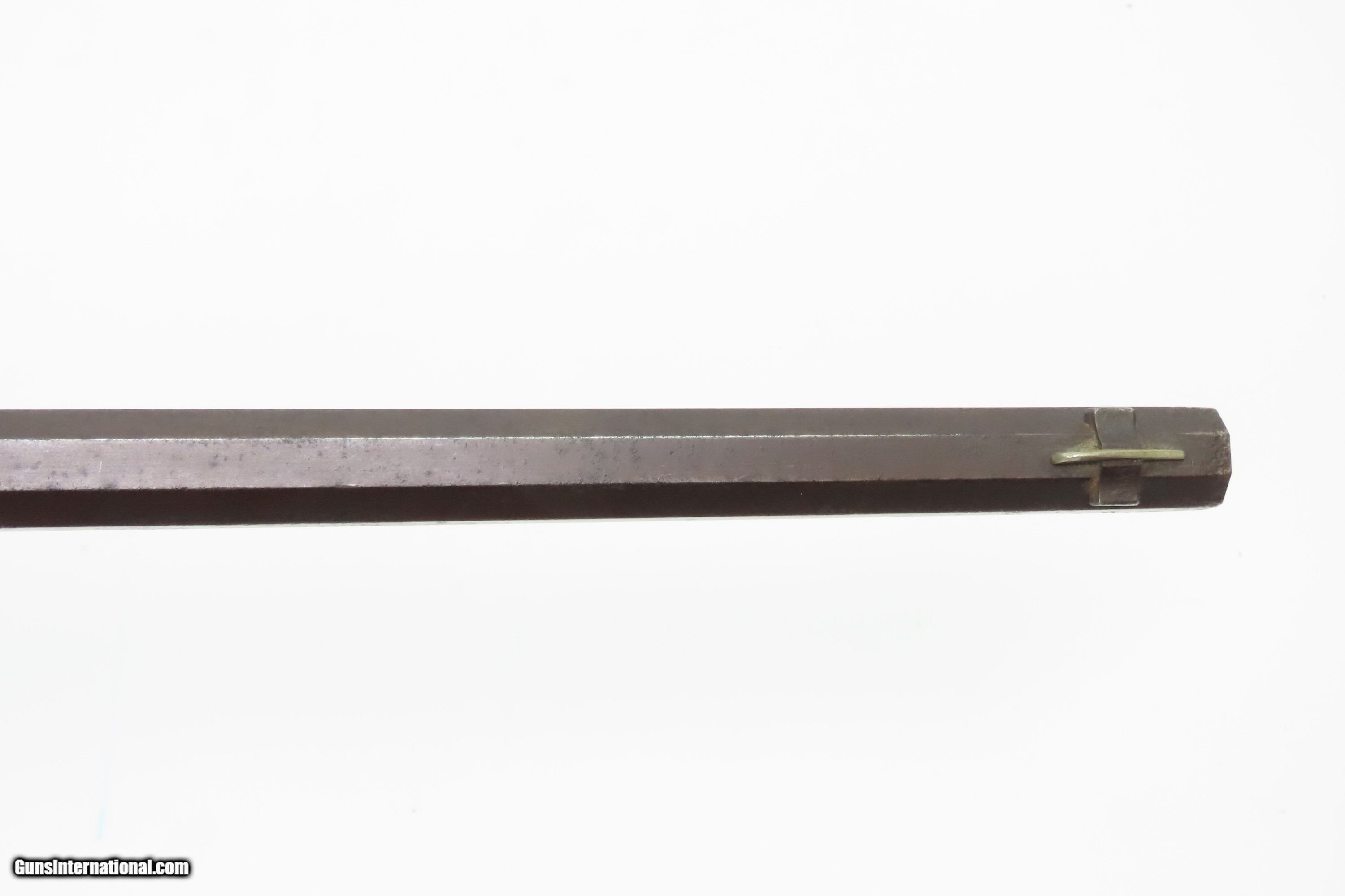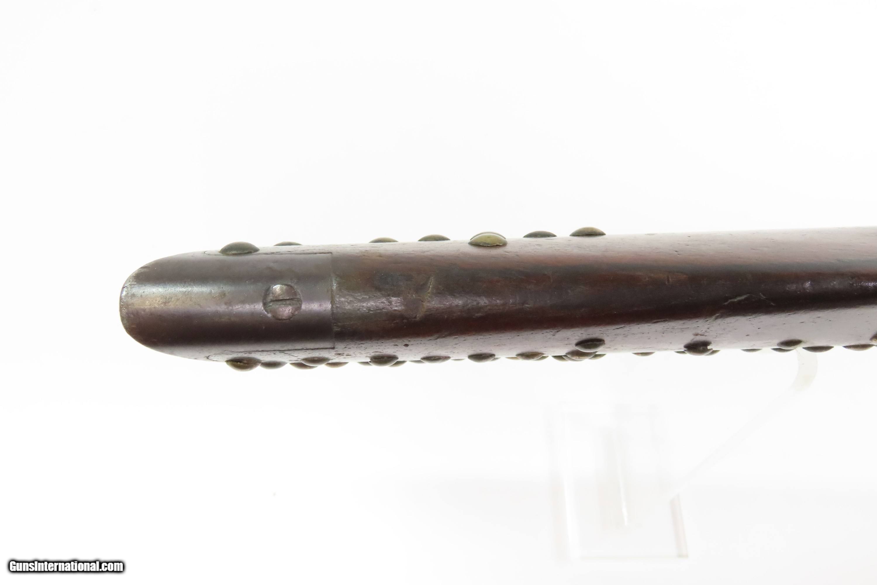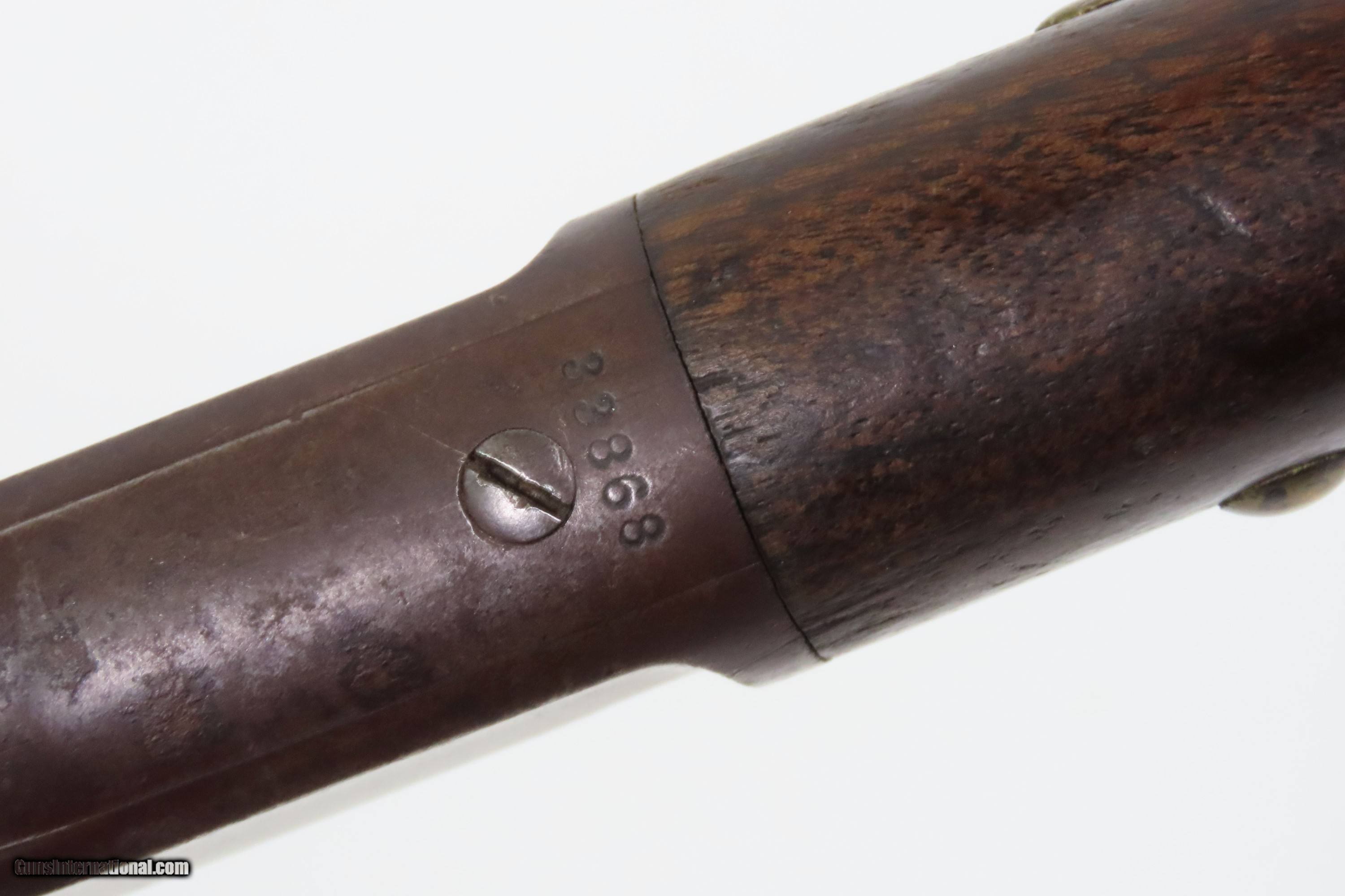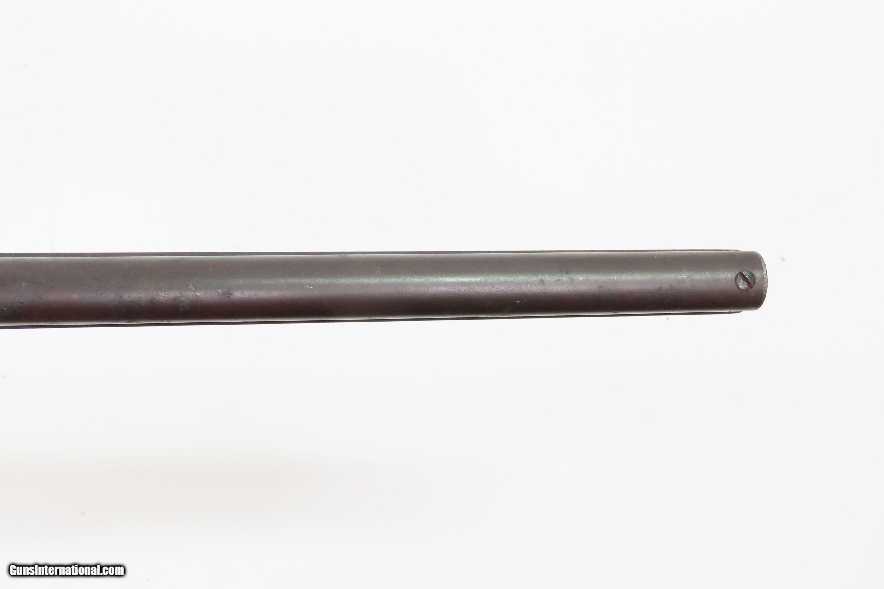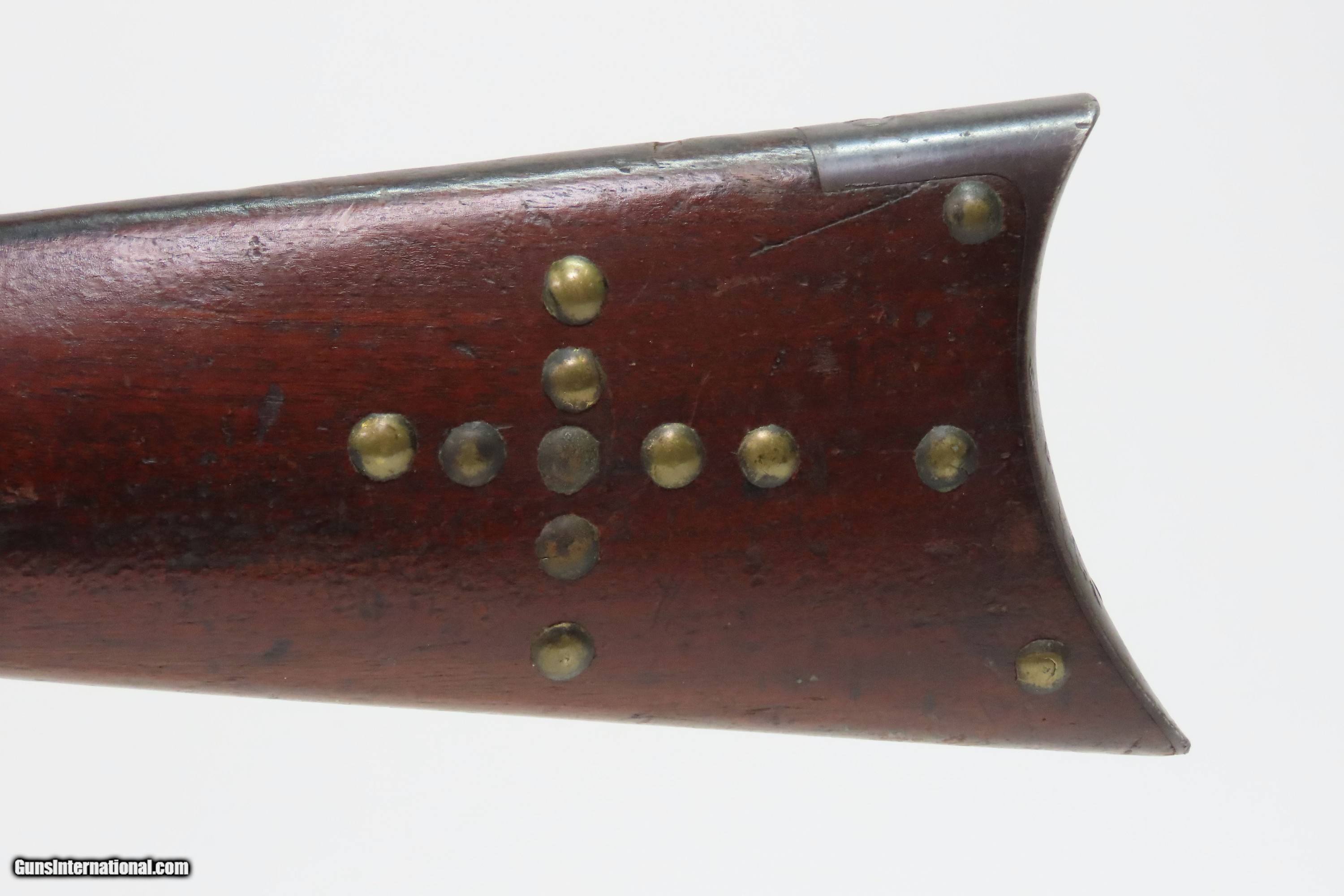 Description: 1890 mfg. TACK DECORATED Antique J.M. MARLIN M1889 .38-40 WCF Lever Rifle NATIVE AMEREICAN Style BRASS Tack Decoration Here we present an antique J.M. Marlin Model 1889 Rifle in .38-40 WCF, made in 1890 in New Haven, Connecticut. Dubbed as the “New Safety Repeating Rifle,” the 1889 Marlin was a mid-sized, redesigned 1888 model. Many key features of these style lever action rifles had already been patented by several people, but John Martin incorporated all the features into a single functional firearm. The most noticeable difference is the solid top with its side-ejection system. The new model also utilized a cartridge carrier that raised automatically, closing the end of the magazine after the head of the cartridge had passed into the carrier preventing the next cartridge from entering the carrier and jamming the action. This was an important feature, since the rifle was produced in a variety of calibers ranging from .32-20 to .45-70 GOVT, a feature that would not be duplicated by competing Winchesters for several more years. The similarity between the .38-55 and the .44-40 cartridges sometimes caused confusion for shooters. If a shooter accidentally loaded a .44-40 into a .38-55, the lever would not close properly. With the ’89 Marlin, he simply had to lever downward, as if the .44-40 was an empty shell, and the oversized cartridge would be thrown to the side. Overall, the 1889 Marlin was well received on the frontier and nationwide. More than 55,000 guns left the factory between 1889 and 1903. In its day, the model was considered state-of-the-art. Now, 130+ years later, this 1889 Marlin is an extremely collectible firearm. The overall condition is very good. Nice even brown patina throughout. The action is strong, but the lever is a little sticky. The bore is reflective, slightly dims toward the muzzle and has serviceable rifling. The stock and forend are solid. Legible markings. Rear sight elevator is absent. The muzzle has been cleaned. Own the original! This is a legitimate antique and not a reproduction. Barrel is 24 inches. Caliber: .38 Winchester Center Fire Overall condition as seen in photos. Very Fast. Very Safe. FREE SHIPPING WORLDWIDE. Delivered directly to your door by express mail! Guaranteed AUTHENTIC & Includes CERTIFICATE OF AUTHENTICITY. ancestryguns $1600 #250170 SOLD Antique: Yes |