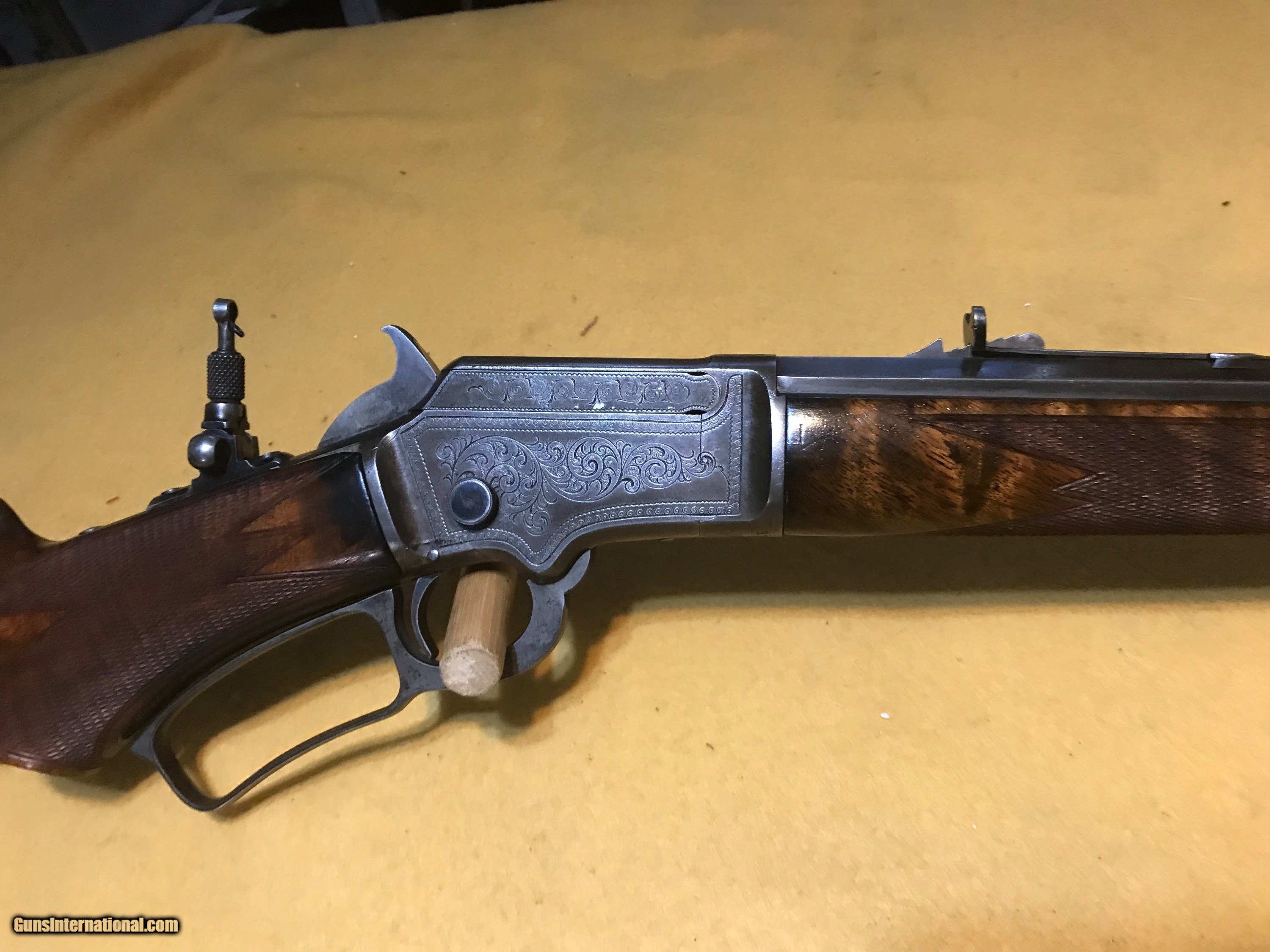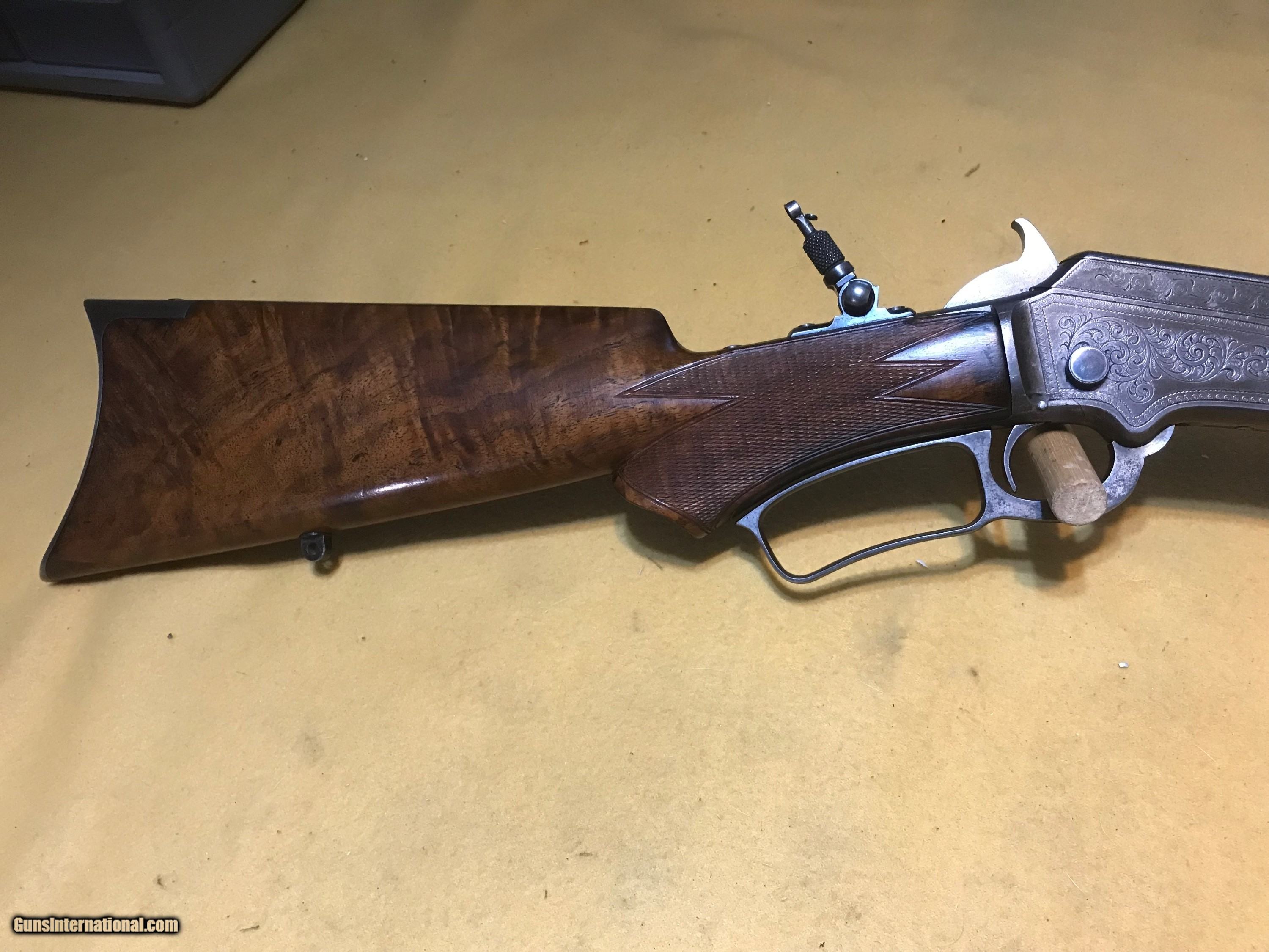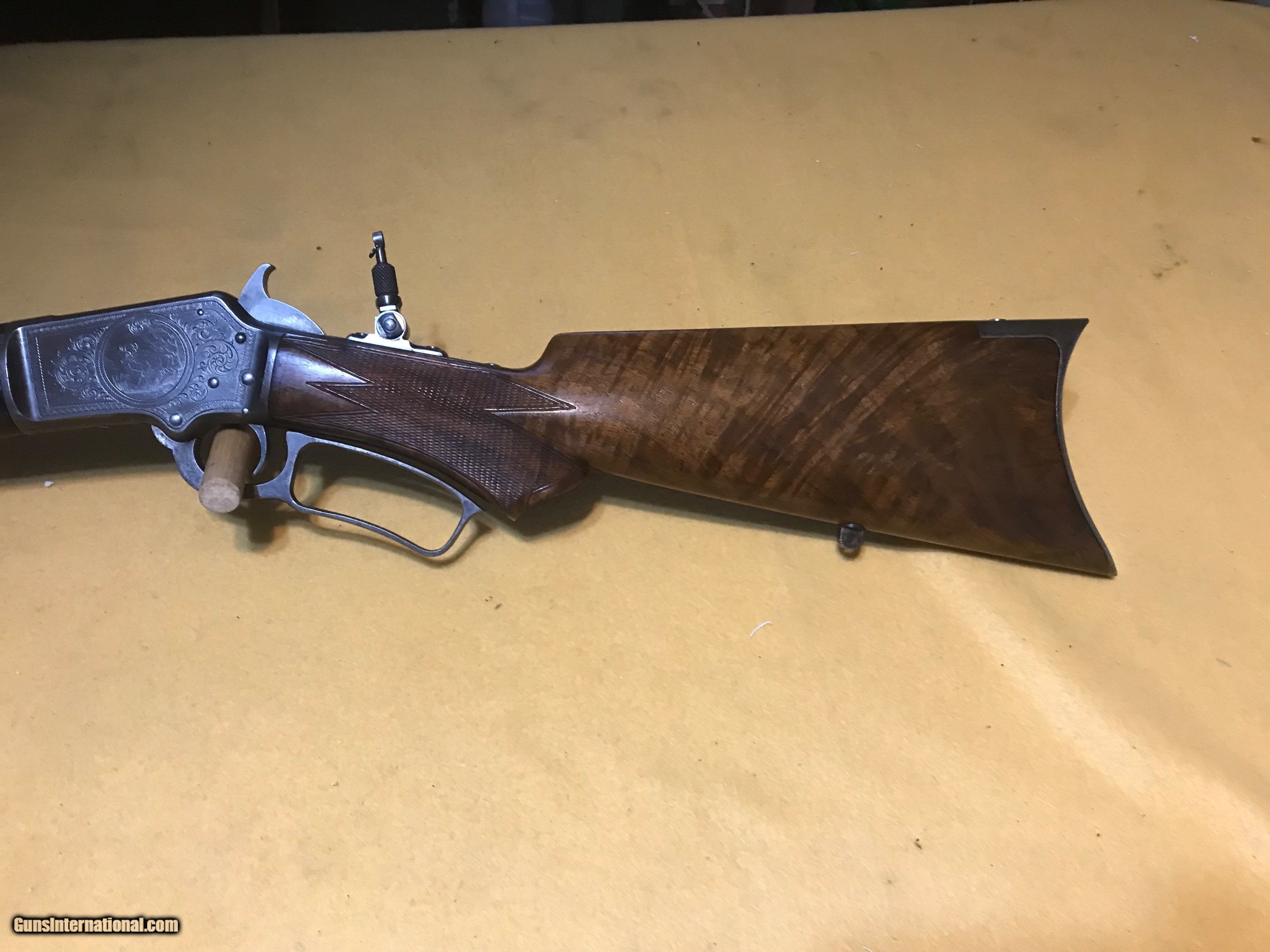 Description: Deluxe factory engraved Marlin 1891 Rifle 24" octagon barrel, good bore silver blade front sight ,sharp engraving with No B engraved by Conrad Ulrich, left and right side. A beautiful looking Marlin with Cody Letter. Questions call Richard 406-407-0698 Antique: Yes Rifle Caliber: .32 RF Manufacturer: Marlin Model: 1891 Serial Number: 81xxx Barrel Length: 24” Wood Condition: 3x Deluxe Price: $7,000.00 Contact Seller |