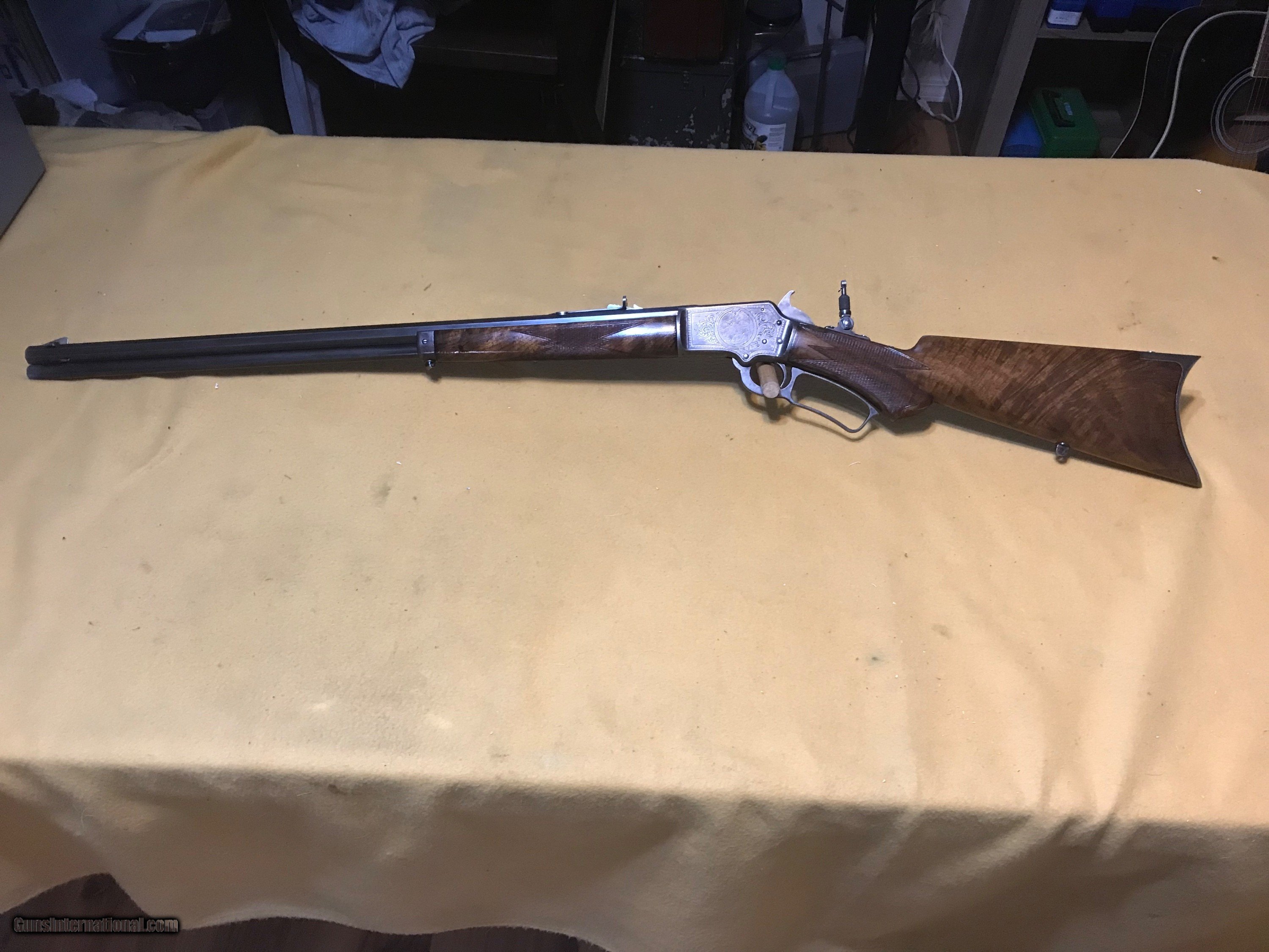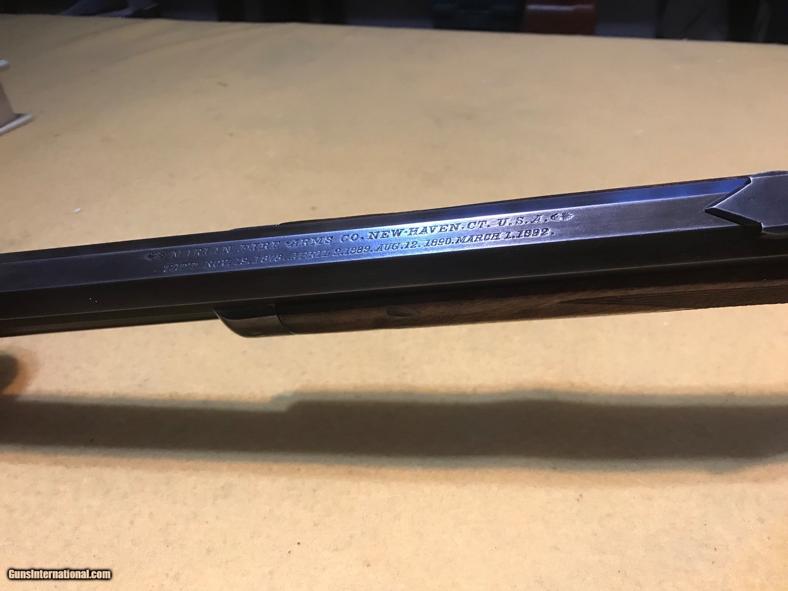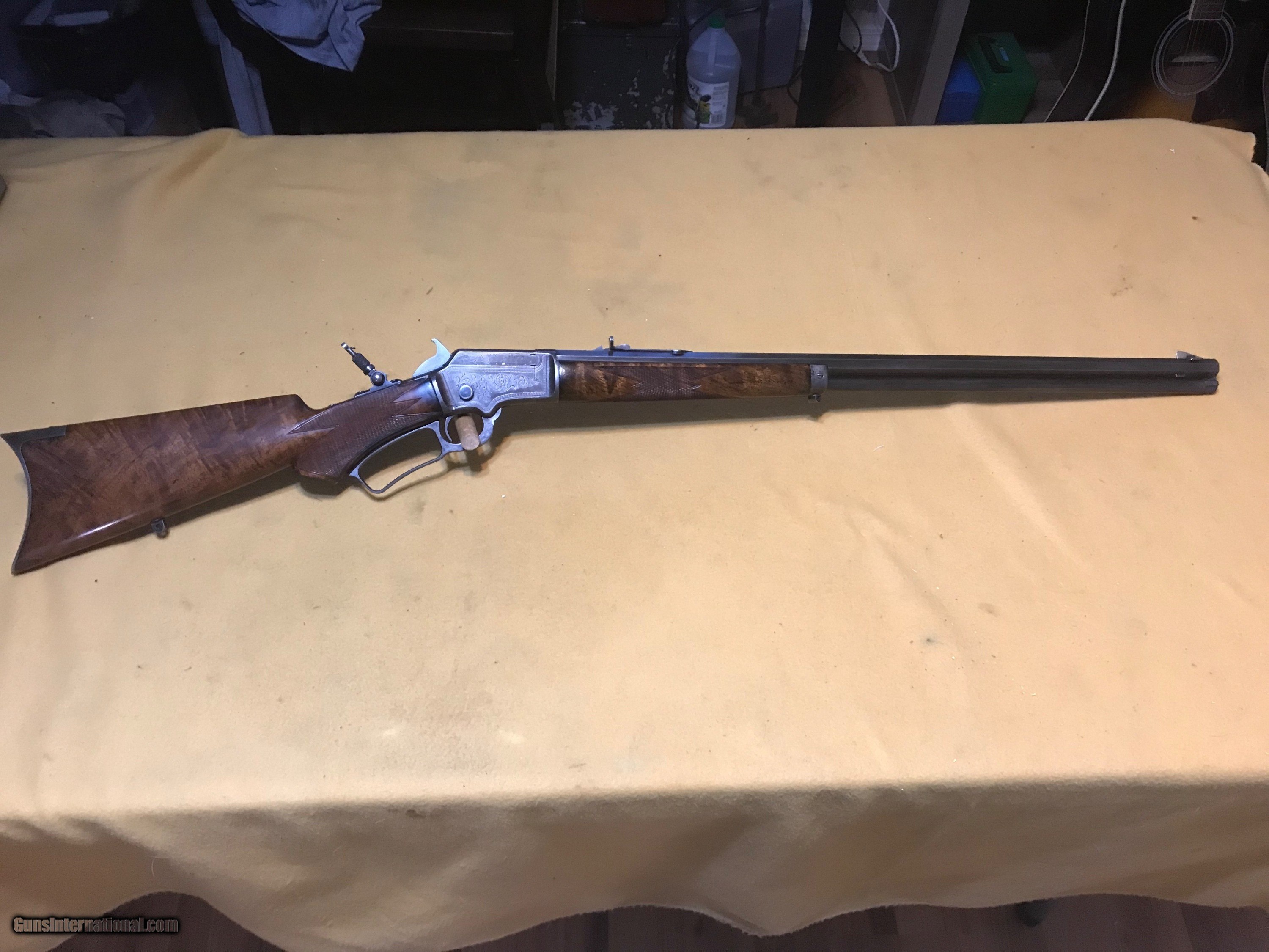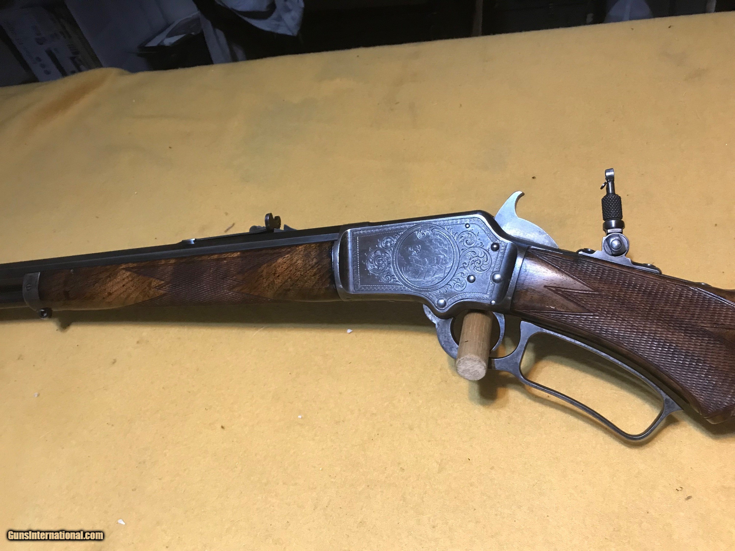 Description: Deluxe factory engraved Marlin 1891 Rifle 24" octagon barrel, good bore silver blade front sight ,sharp engraving with No B engraved by Conrad Ulrich, left and right side. A beautiful looking Marlin with Cody Letter. Questions call Richard 406-407-0698 Antique: Yes Rifle Caliber: .32 RF Manufacturer: Marlin Model: 1891 Serial Number: 81xxx Barrel Length: 24” Wood Condition: 3x Deluxe Price: $7,000.00 Contact Seller |