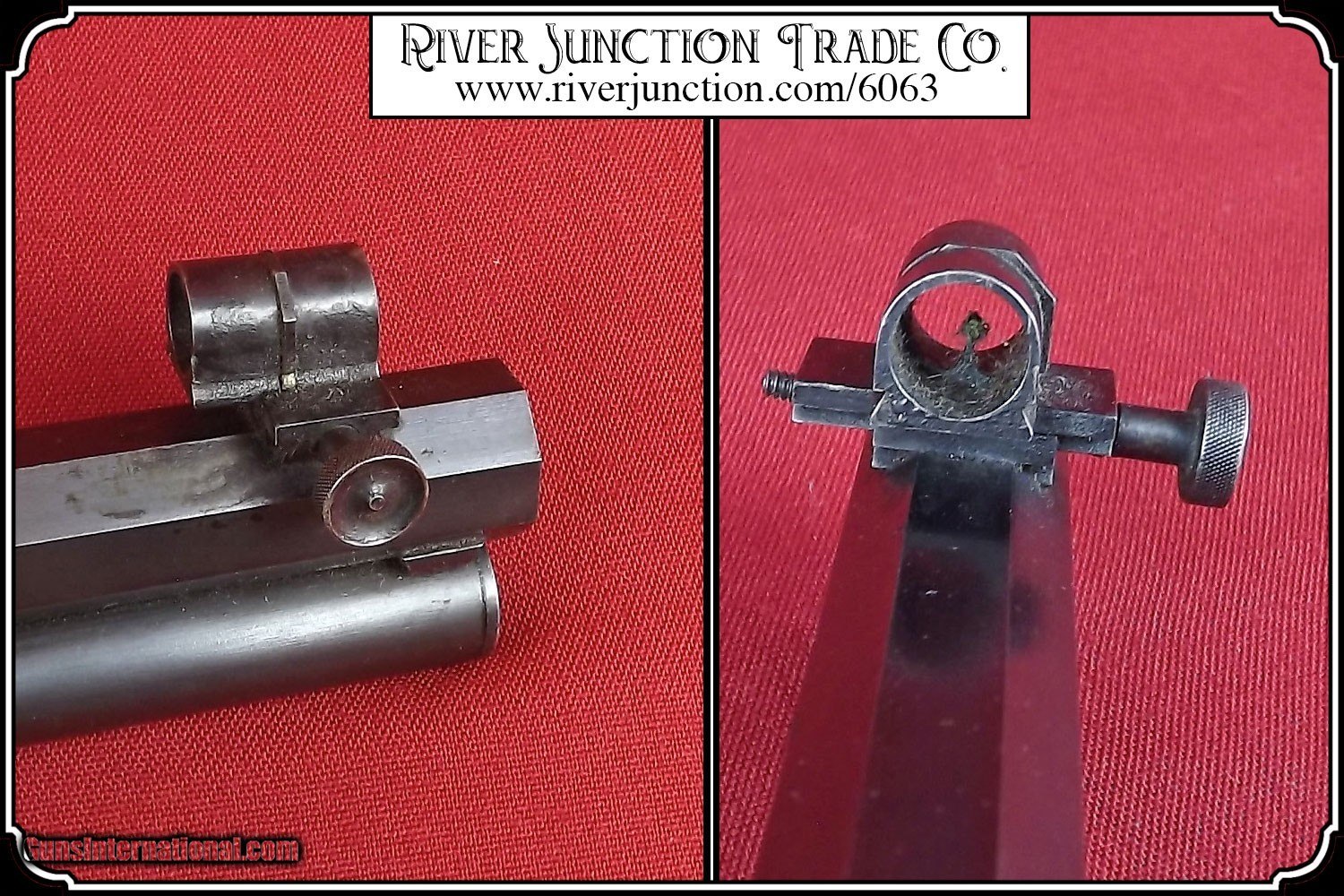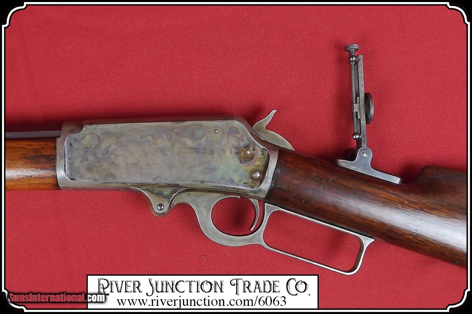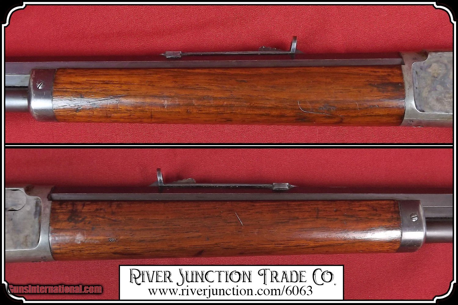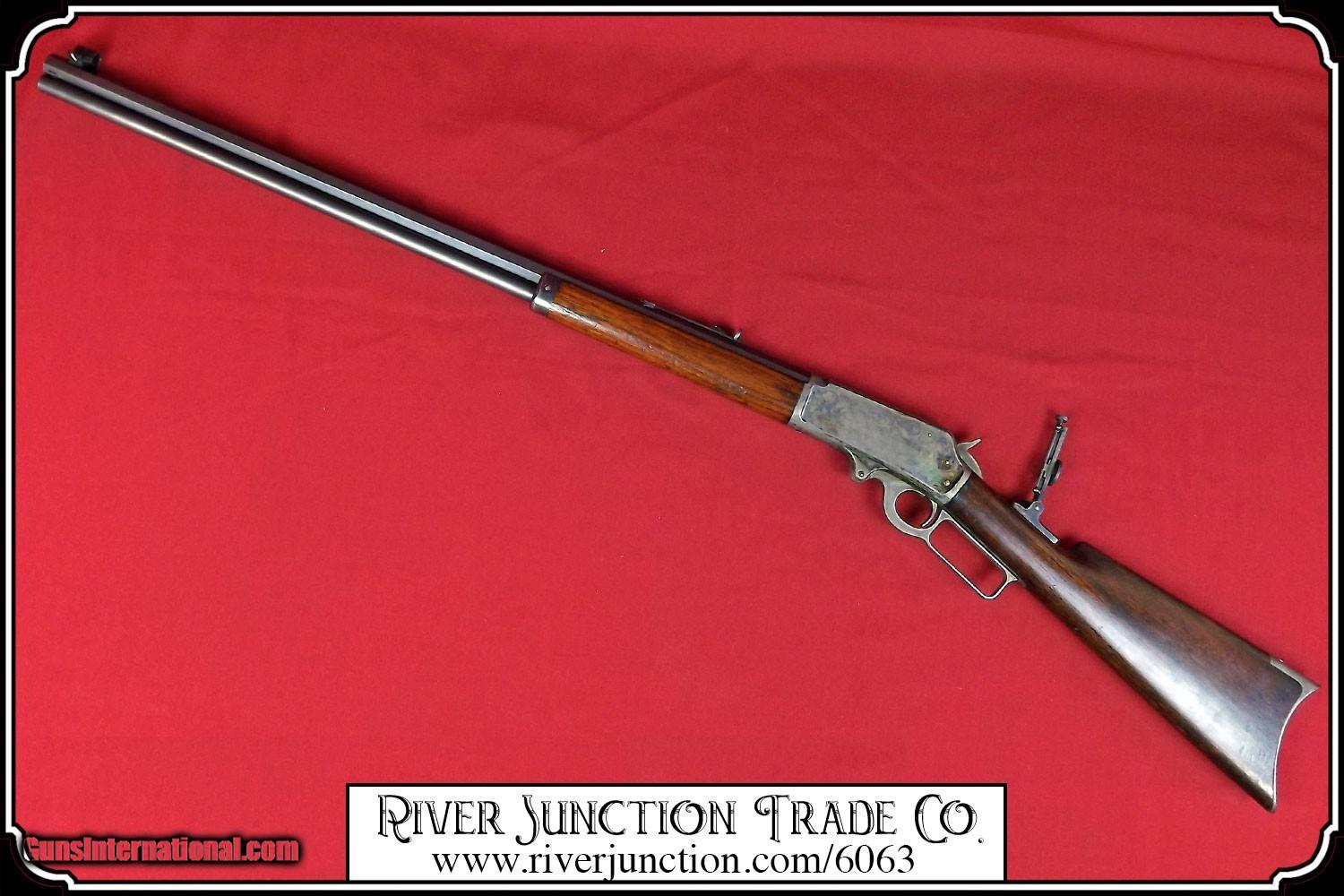 Description: This is an early Model 1893 Marlin Sporting Rifle in caliber 38-55. with extra long 28” octagon barrel and is not marked, “For Black Powder” nor ”Special Smokeless Steel". Serial number is 101702 which makes it an antique of 1894 production. The sights include, this early Winchester Mid-Rang Vernier Tang Sight with the thick base plate. It's in excellent shape with no problems or damage and blue overall and the globe front sight is likewise. Top of barrel marked "38-55" with Marlin address and 1887, '89, and '93 patent dates. I have not removed the tang sight but, I assume it denotes "Model 1893". The 38-55 is an all-around great calibers for both hunting and target shooting in their original black powder loads. The bore is bright and shiny as new. This is an "A" grade rifle, a very nice example! Overall, NRA Antique Fine+ Condition. Barrel, magazine tube, and forend cap retain 95% original blue. The frame shows 75% faded colors on the right side and around 40% on the left side. Bolt has about 60% faded colors. Top of the frame is marked "Marlin Safety" and shows smoky shadows of mottled colors. Lever retains 10% colors while the hammer has fared a little better with 70% faded colors. Loading port has 75% bright original blue. The original walnut stocks are in Fine condition showing only light handling marks with perfect wood to metal fit and 95% original varnish. No chips, cracks, or repairs. Action is still nice and smooth with an Excellent bore. A very clean example of a Marlin 1893 in a great configuration and caliber. This is an ANTIQUE and can be shipped directly to you. Sold as an Antique ~ no guarantees, warranties, or liabilities for any actual usage. If any firearms are to be used for shooting purposes, a qualified gunsmith should inspect them first. Payment: Item, can be ordered with a credit card or paypal on our sight. Just Google (riverjunction) and type in the River Junction Trade Co. item number (6063) in the search box. Before you checkout you will see shipping cost and total. OR If you prefer: Pay by cash, postal money order, cashiers check, personal & business checks. We wait for checks to clear. Call me 563-880-4588. Jim We qualify some of our items as eligible for our LAYAWAY PROGRAM. We accept Bank Check, Money order, Personal checks or wire transfer. Items over $1000.00 can layaway at 1/3 down and 1/3 in 30 days and balance in the following 30 days. No discount is offered on layaway items. We are open to offers at any other time. SOLD |