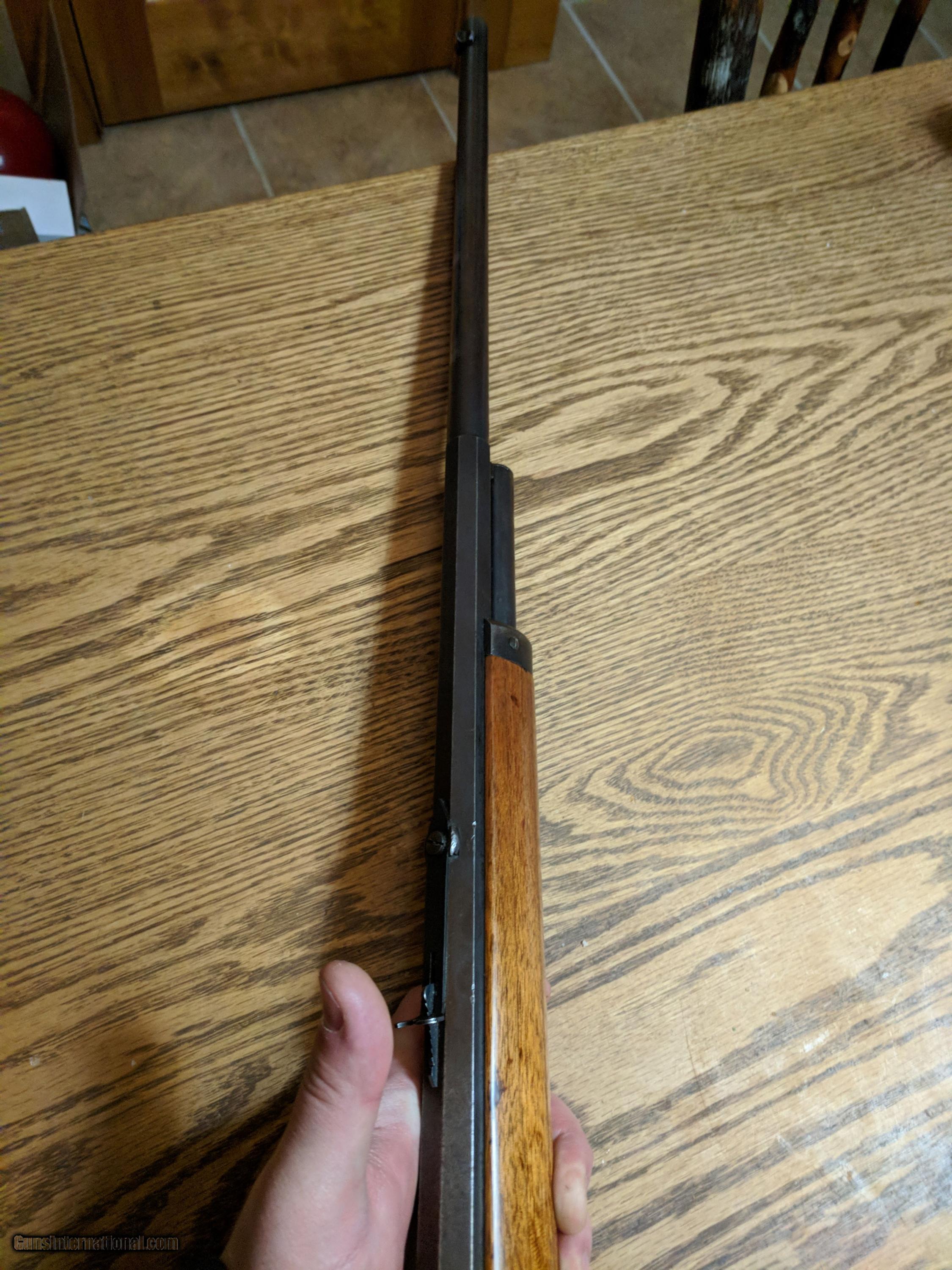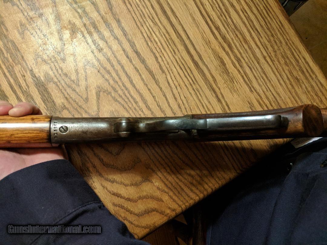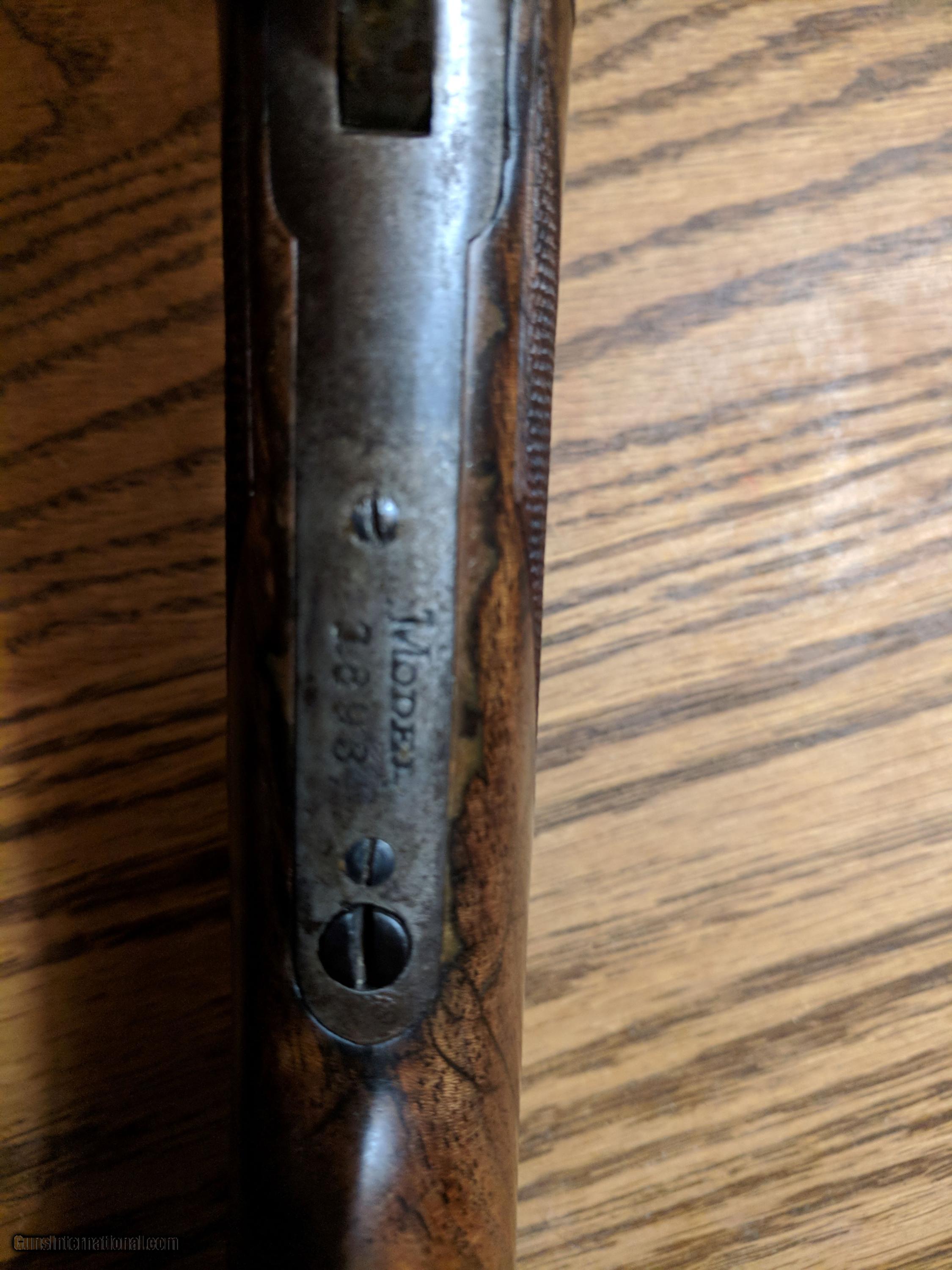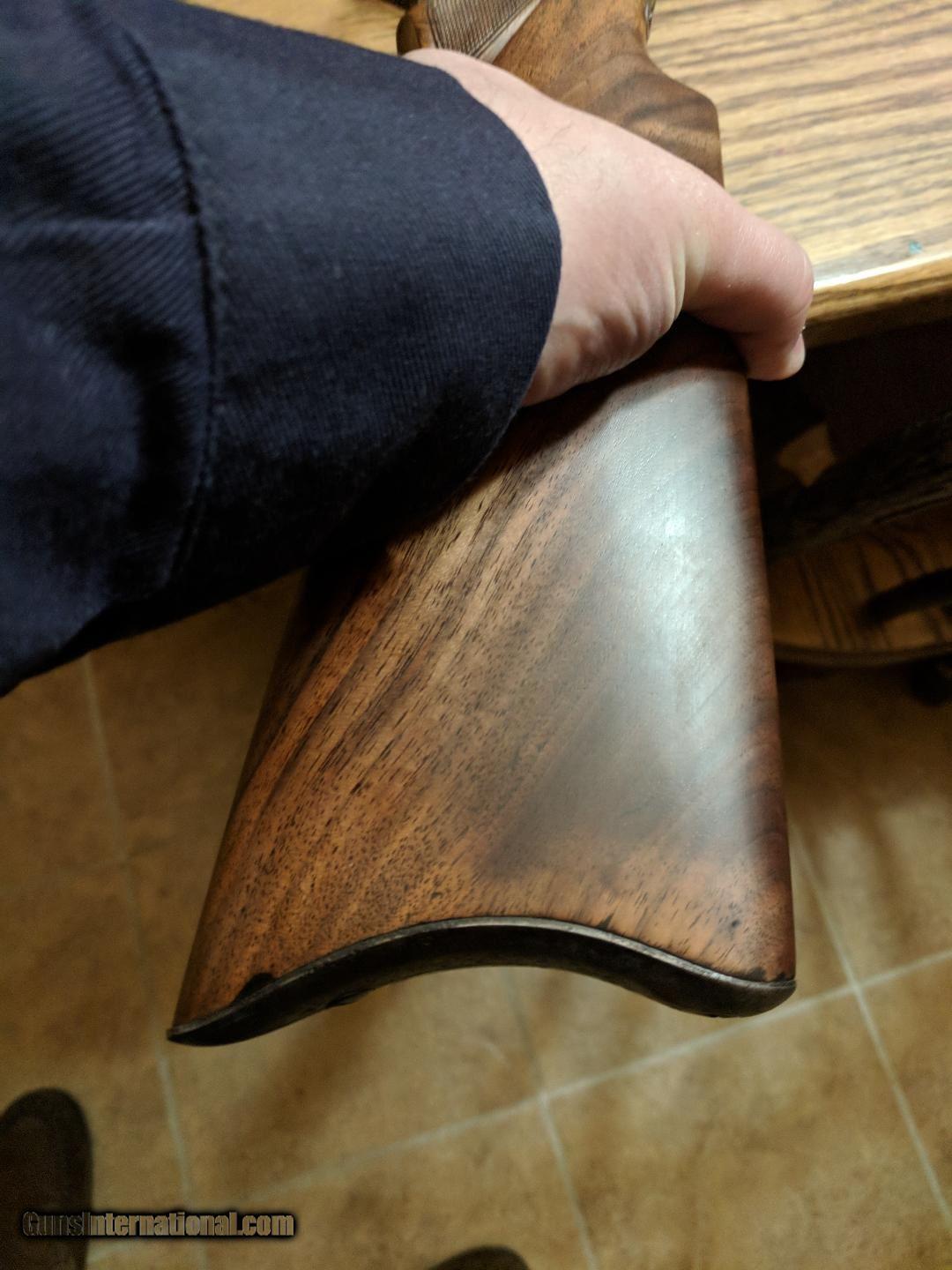 Description: MARLIN MODEL 1893 DELUXE 32-40. THIS FIREARM WAS MANUFACTURED IN 1905 WITH (SPECIAL SMOKELESS STEEL). IT HAS A HALF ROUND, HALF OCTAGON 26" BARREL. THE MAGAZINE SEEMS TO BE 2/3RDS. THE BORE IS VERY GOOD WITH NO PITTING AND STRONG RIFLING. IT HAS SOME MINOR PITTING ON THE OUTSIDE OF THE BARREL. THE FORESTOCK IS NOT ORIGINAL TO THE FIREARM. THE BUTTSTOCK HAS BEEN REPAIRED AROUND THE TANG BY MY GUNSMITH WITH THE CHECKERING BEING CLEANED UP AND OIL FINISHED. THE BOLT IS ALSO NOT ORINGINAL TO THE FIREARM. THE RECIEVER HAS SOME SLIGHT DAMAGE AT THE BOLT FACE. VISABLE IN A PICTURE SUPPLIED. NO INTERNALS ARE DAMAGED TO MY KNOWLEDGE. 30$ ADDED FOR SHIPPING CHARGES SOLD Manufacturer: MARLIN Model: 1893 DELUXE Serial Number: 315,XXX Caliber Info: 32-40 |