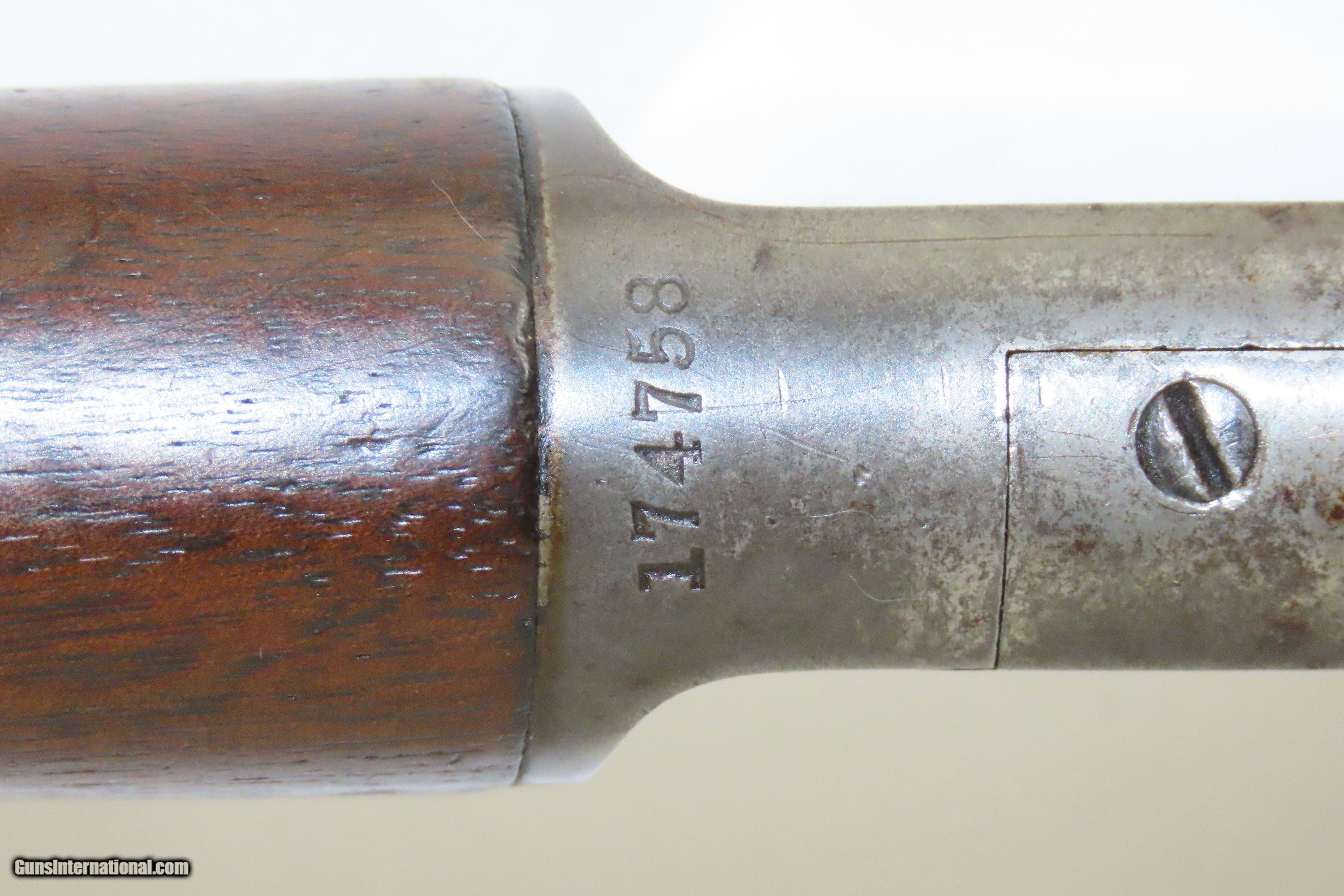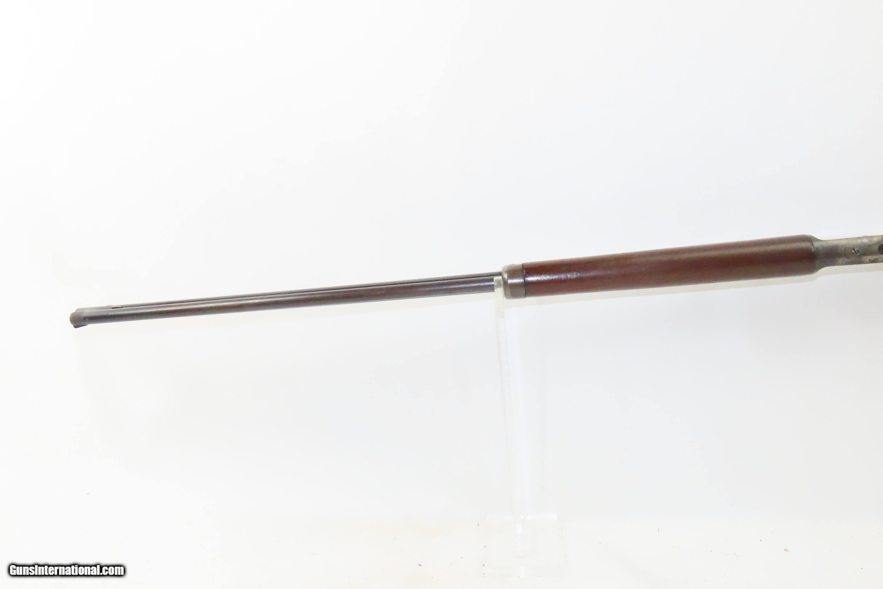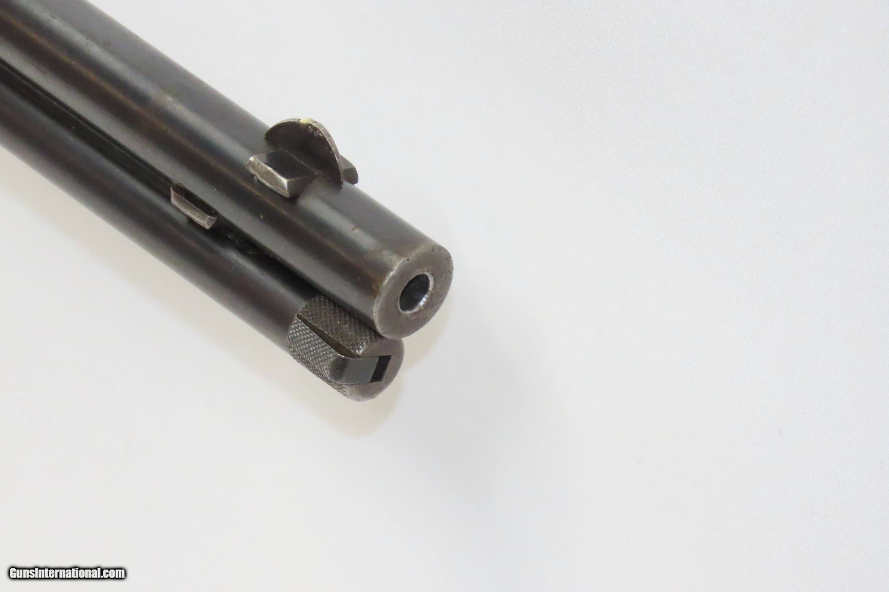Description: c1898 Antique Model 1897 MARLIN Lever Action .22 S, L, LR Rifle TAKEDOWN Inscribed “FRED.BERRYHILL/KEOKUK, IA 1901 Here we present an Antique Marlin Model 1897 Lever Action .22 Rifle, made in 1898 in New Haven, Connecticut. This rifle had a production run from 1897 to around 1915 when the factory retooled for the war effort. After World War I, a few guns were assembled from parts until 1922 when it was re-designated as the Model 39. Sometime during 1905, Marlin changed the model designation on the tang from “Marlin 1897” to “Marlin 97”. John Mahlon Marlin, founder of the company, served as a machinist with Colt Patent Firearms of Hartford prior to starting his own firearm manufacturing company in New Haven in 1863 during the American Civil War, where he concentrated primarily on production of small, single shot .22 deringers. The Marlin Golden Model 39A started life as the Marlin Model 1891, the first lever-action rifle ever chambered in .22 Long Rifle and the magazine was loaded through a conventional side gate in the receiver. The tubular magazine was changed to front-loading with the Model 1892, due to the difficulties of receiver feeding the small rimfire round. The 1892 gave way to this takedown Model 1897, which became the Model 39 in 1922 and Model 39A in 1939. The overall condition is near fine. Original blue finish and case colors. The action is excellent. The bore is in great shape, bright with good rifling. The stock has an old chip at the toe and is otherwise in great shape and solid. This one is inscribed to Fred Berryhill with the date in 1901. He appears to have owned and tended a bar in Keokuk by the name of Doc’s Place at 306 Main Street. Own the original! This is a legitimate antique and not a reproduction. Barrel is 24 inches. Caliber: .22 Rimfire (S, L, LR) Overall condition as seen in photos. Very Fast. Very Safe. FREE SHIPPING WORLDWIDE. Delivered directly to your door by express mail! Guaranteed AUTHENTIC & Includes CERTIFICATE OF AUTHENTICITY. ancestryguns $2400 #233491 SOLD Antique: Yes |