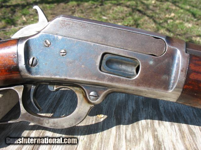 Description: SOLD...Excellent antique 1889 Marlin. Here is a way above average 1889 Marlin. Has the standard 24" octagon barrel. It is in the best shooting 38-40 caliber. My favorite. Also has the correct tang sight. Low S/N 30370 so probably first month of the second year production. To start with the bore is excellent and near mint. Mirror bright and shiny all the way through. NO rings or bulges. Would be very hard if not impossible to find a better bore in any antique rifle. The mechanics are excellent as well. It feeds, fires and ejects perfectly. Super accurate. The ejector is a little lazy as all the 89's are this way but it kicks out the cases no problem. Both hammer notches are perfect and not broken or worn. The is gun has the original rear sight with the "legs" on the bottom rear and has the original "fish hook" elevator as well. The front sight is a period of use Marbles replacement Number 2 and by looking at it, it may be original. It has a brass bead and it looks like it has been on this gun forever. It has a very tight tang sight also. The staff is tight and not all worn out like most all you will find. All the markings are excellent. The finish is excellent as you can see. The receiver has 50% thinning but bright blue on the left side. The right side has a little less. The top of the receiver has 40% blue. The barrel has about 30% blue mainly on the bottom flats and a little in other places where protacted. The mag tube has 50% blue. A couple burred screws on the right side of the receiver. I see this on a lot of 89 Marlins for some reason. NO pitting on the metal and it just shows a couple small spots of surface crud but nothing into the metal. Very nice metal and blue on this ole 89. The lever still shows some vivid case colors in the protected areas. The wood is excellent... The forearm has NO splits or cracks and has just afew honest handling dings. May have been lightly cleaned and some varnish added over the years. The butt stock is very nice as well. It has one tiny sliver on the left by the upper tang. {see photo}.. No other splits or cracks and has some minor handling dingd and scratches. ALL the wood fits tight and proud to the metal in some places. It is not all oil soaked and still has great color. This is a very nice 89 Marlin and way better than you will usually find. Much better than the gray-brown ones you see for $1200 to $1400. Plus it has a near mint bore with a good and solid tang sight. I have a very soft spot in my heart for minty bores so if this one does not sell, I don't mind adding it to my personal collection. This gun would fit very nice in a mid to upper rang collection. Don't miss it !!! $50 insured shipping. Call 765-728-8049 with any questions or more photos. SOLD Antique: Yes |