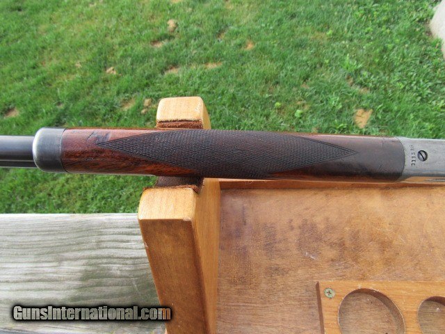 Description: DESCRIPTION: Extremely rare Marlin Model 1893 rifle in caliber 32-40 with 32" part octagon barrel, correct 30" magazine (Marlin did not make magazines longer than 30" no matter what the barrel length was), deluxe checkered pistol grip stock with rifle butt plate, Lyman #5 combination front sight, correct "J" marked Lyman #2 combination tang sight, blued barrel and magazine, case colored receiver/lever/hammer. Cody info sheet confirms the features (except the sights) for serial number 111326 and shows a ship date of November 14, 1894 (copy will be supplied to buyer). A similar rifle, serial # 111261 in 38-55 with a full octagon barrel, is shown in Colonel Brophy's Marlin Book at the top of page 194. CONDITION: Barrel and magazine retain 85% original blue starting to tone. Action is crisp and half cock safety functions as it should. Bore is excellent, no frost, no pitting and only light wear. Frame, lever and hammer exhibit 15% original case colors with the balance turning silver. Deluxe stocks show most of the original finish and sharp checkering. Stocks have never been cleaned, sanded or refinished and do not have any extra holes. Unfortunately this rifle was dropped at one time as there is a 1.5" crack coming in from the butt plate on both sides down by the toe, and the butt stock was broken through at the wrist, now neatly repaired and is very tight/not too noticeable. Still makes a fine antique with many special order features and an extremely rare barrel configuration. TERMS: No international sales. Antique so it can ship directly to you assuming your local laws allow it. Copy of driver's license required as proof of age. Payment by bank check, money order, personal check, or all major credit cards with 3% surcharge. 3 day non-firing inspection. Buyer pays return shipping. Thanks for looking. SOLD Antique: Yes Manufacturer: Marlin Model: 1893 Serial Number: 111326 Caliber Info: 32-40 Action: Lever Triggers: Standard/plain Manufacture Date: 1894 Extras: Many Item Location: New York |