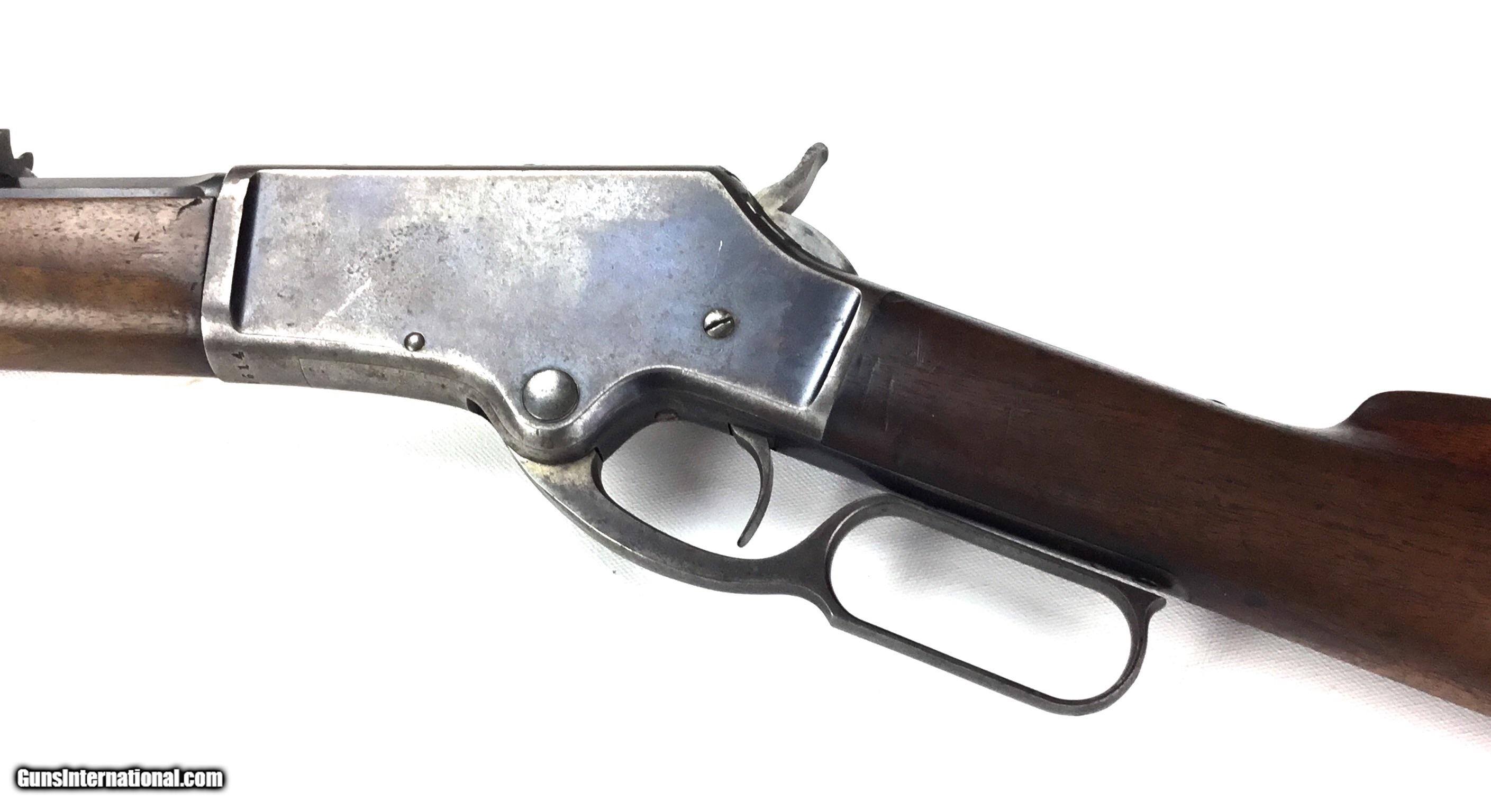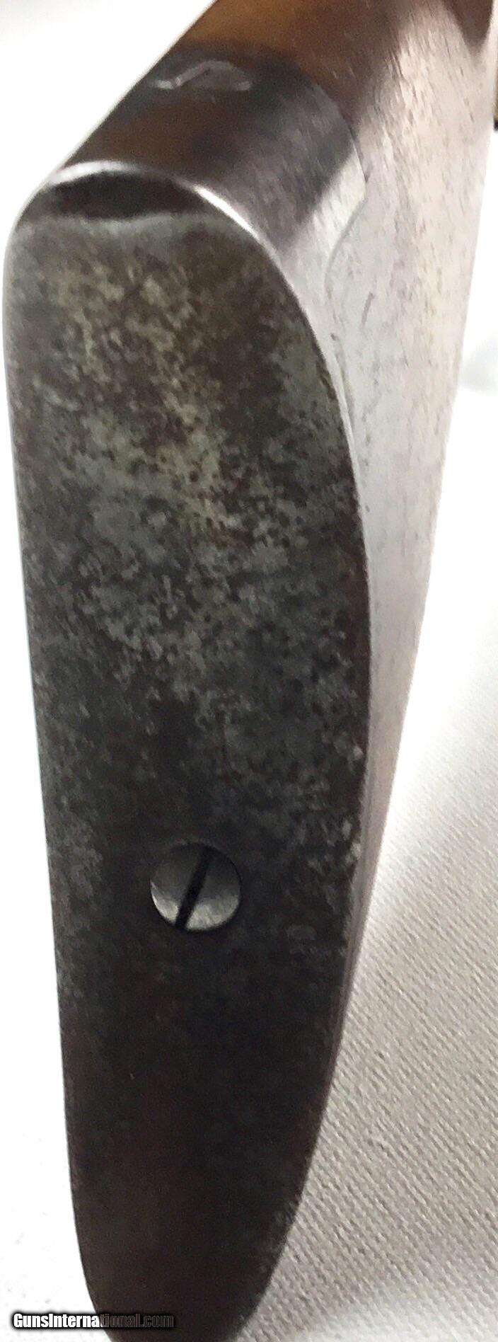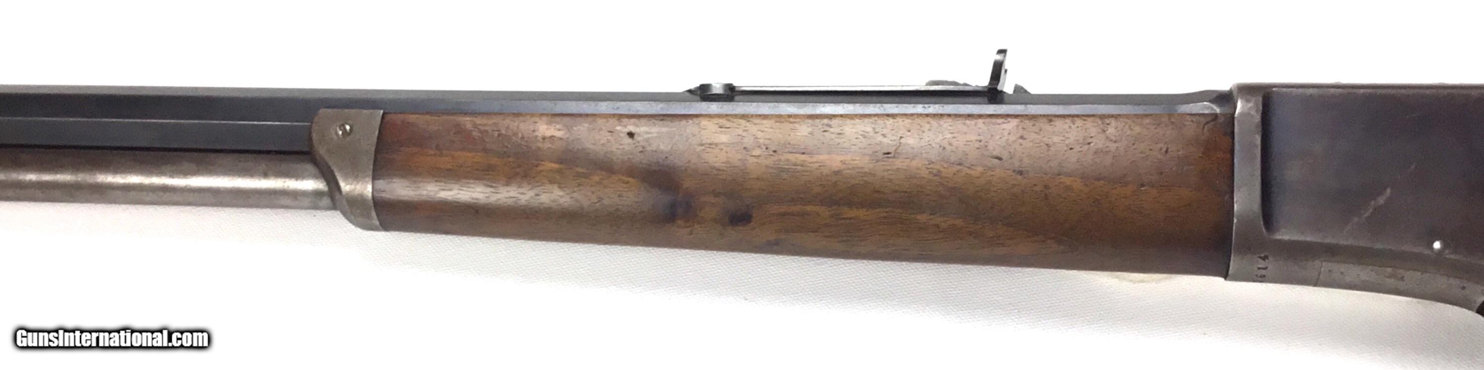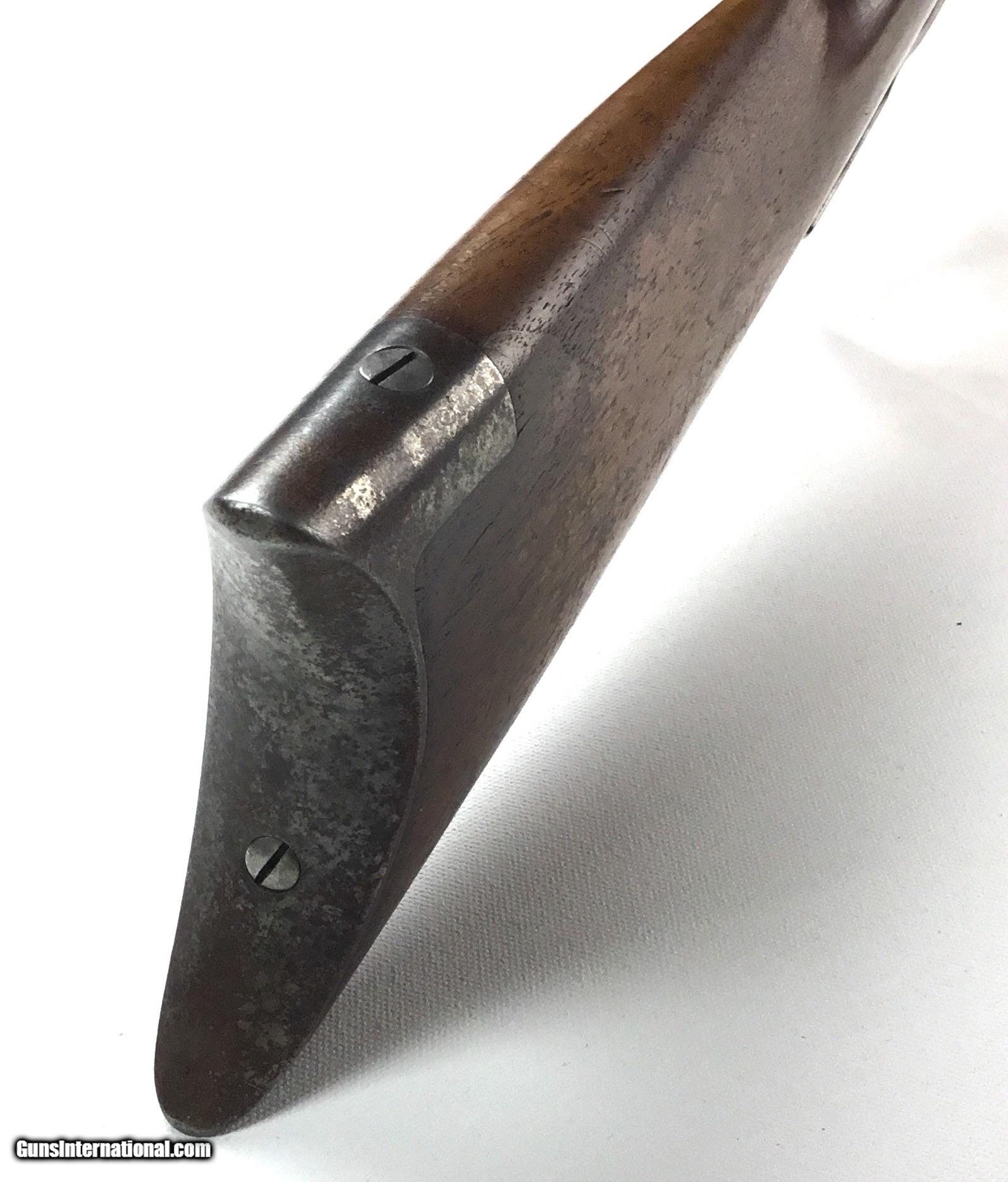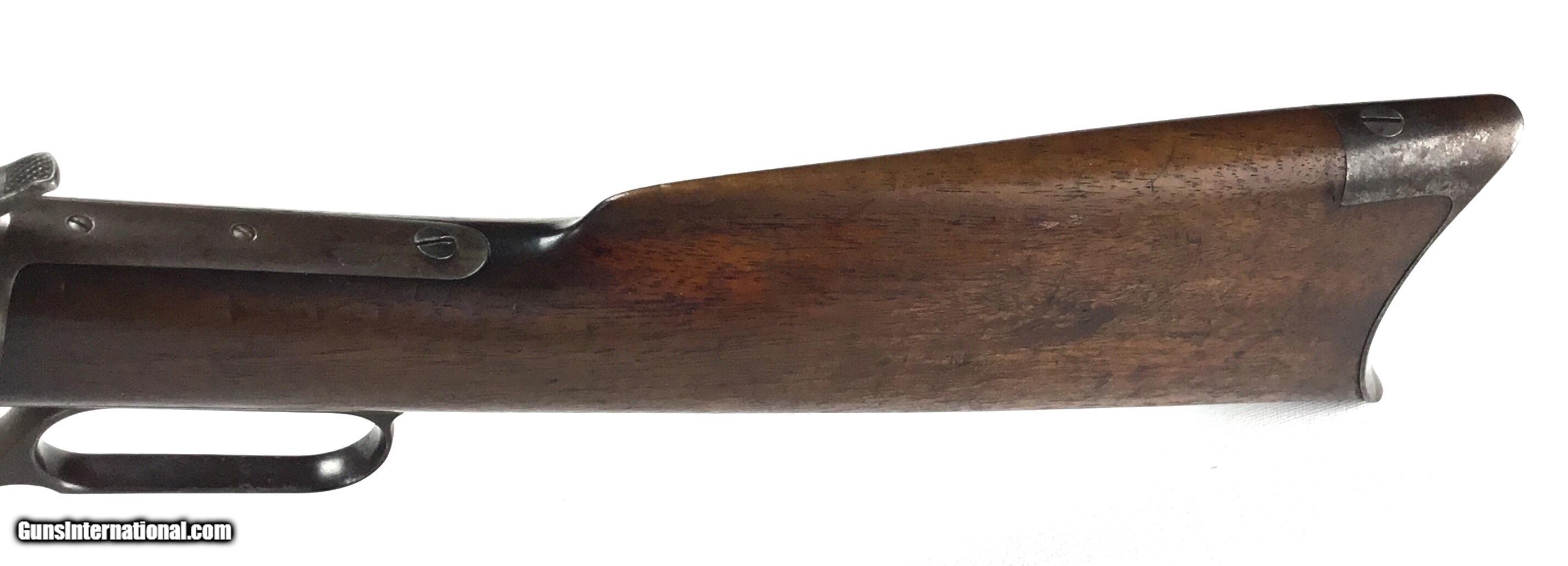 Description: MARLIN 1881 .38-55, Straight Stock with Curved Metal Butt Plate, Forearm has Two Cracks on Right Side Next to Receiver, Brass Blade Front Sight, Dovetailed Rear Sight, Manufactured by Marlin Fire-Arms Company, New Haven Connecticut Circa 1886, SN-13614, #2741, $1495.00, HAMPELSGUNCO SINCE 1919. SOLD Antique: Yes |