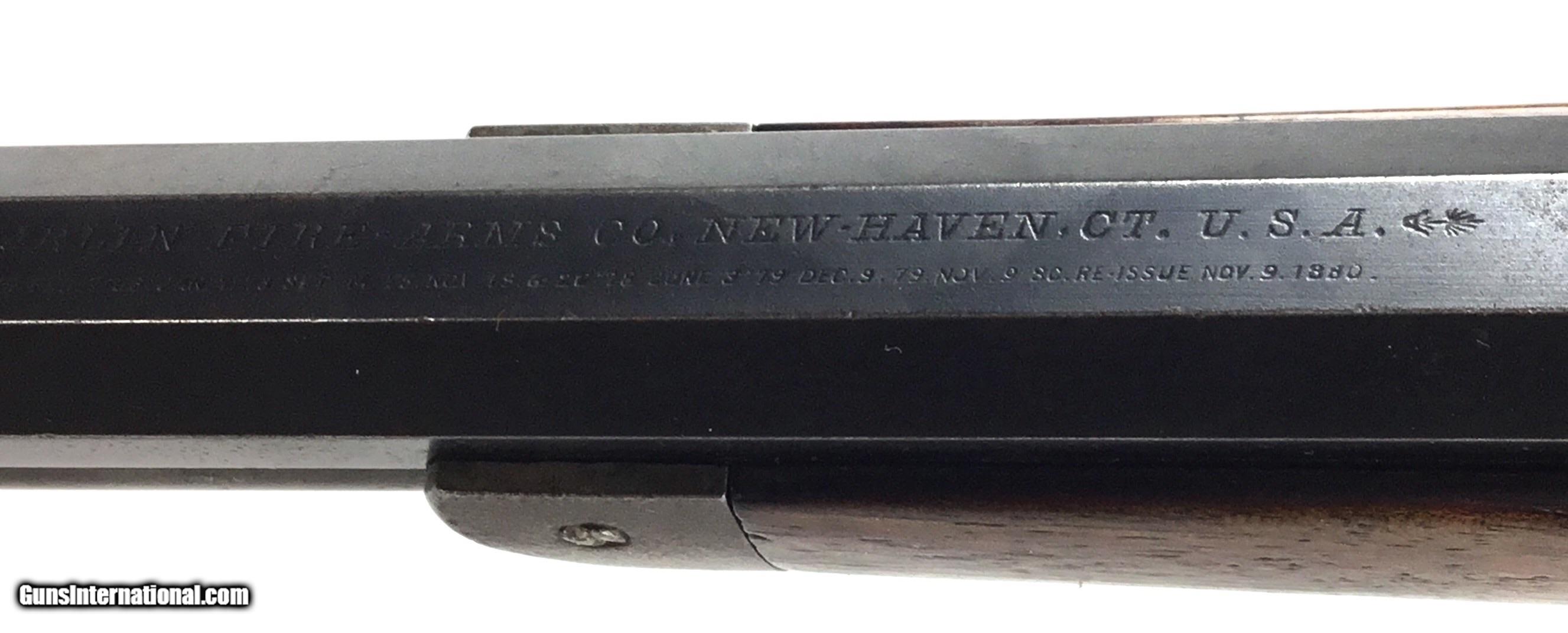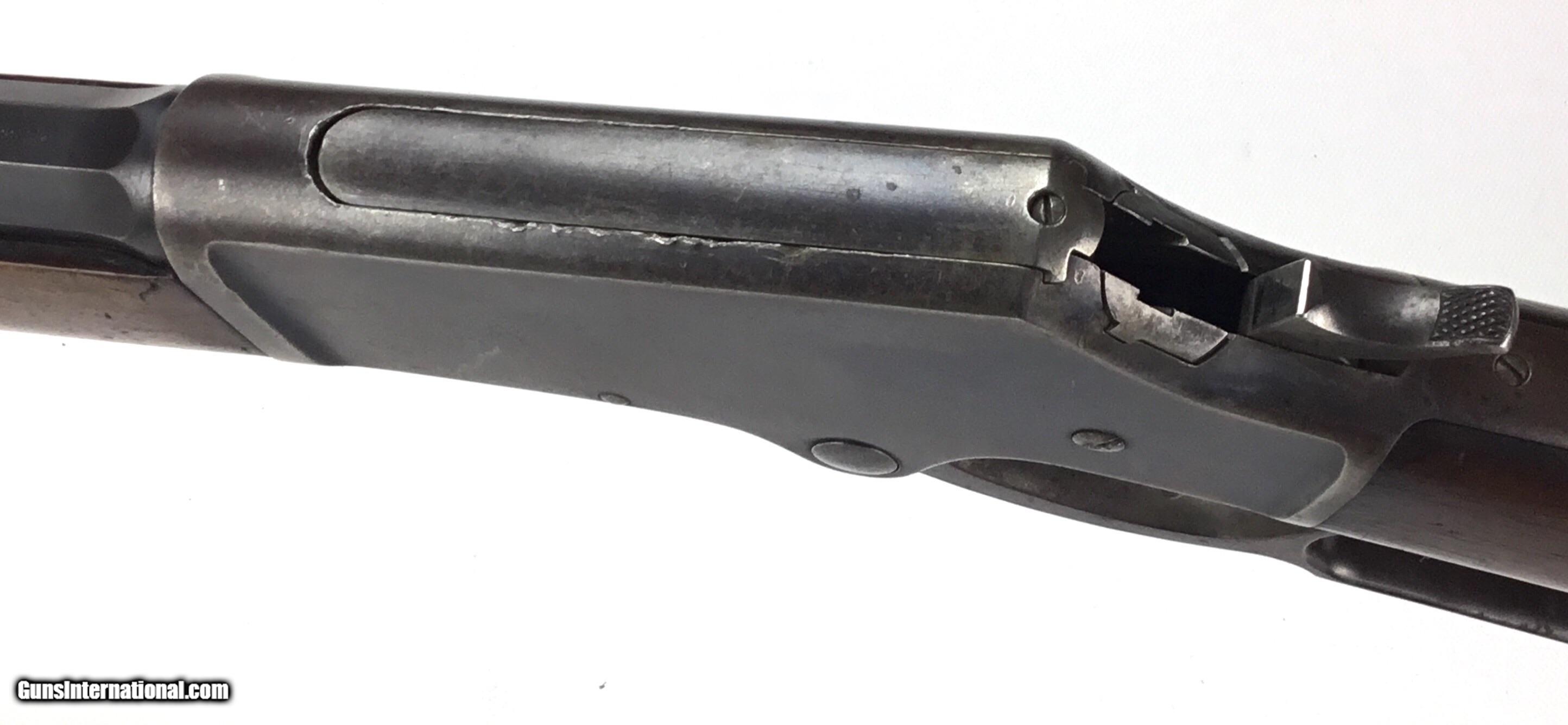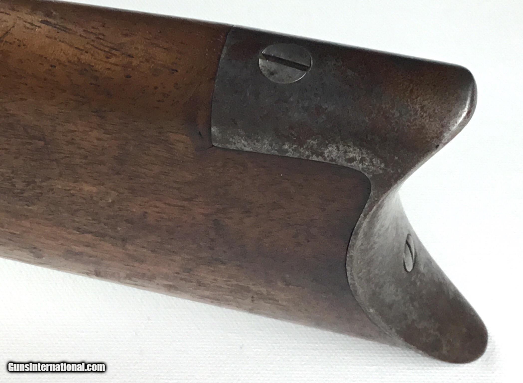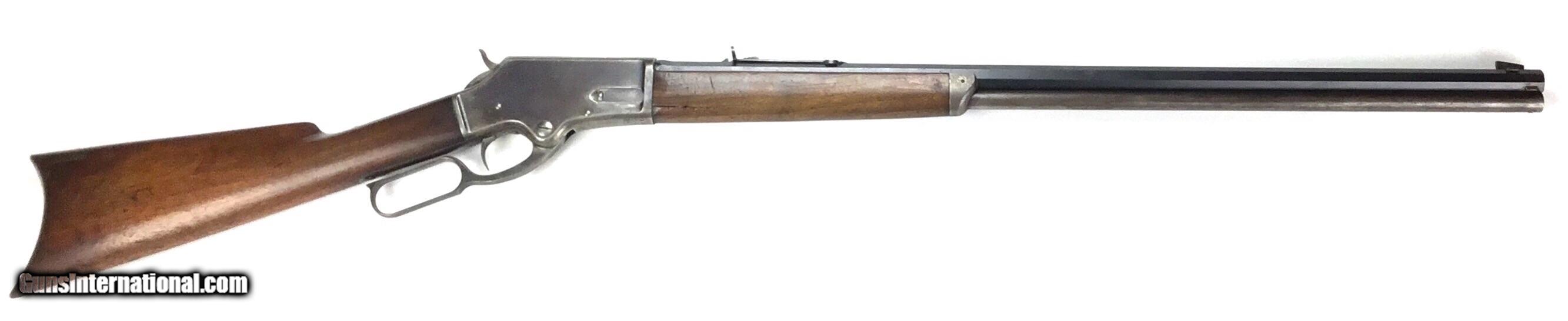 Description: MARLIN 1881 .38-55, Straight Stock with Curved Metal Butt Plate, Forearm has Two Cracks on Right Side Next to Receiver, Brass Blade Front Sight, Dovetailed Rear Sight, Manufactured by Marlin Fire-Arms Company, New Haven Connecticut Circa 1886, SN-13614, #2741, $1495.00, HAMPELSGUNCO SINCE 1919. SOLD Antique: Yes |
