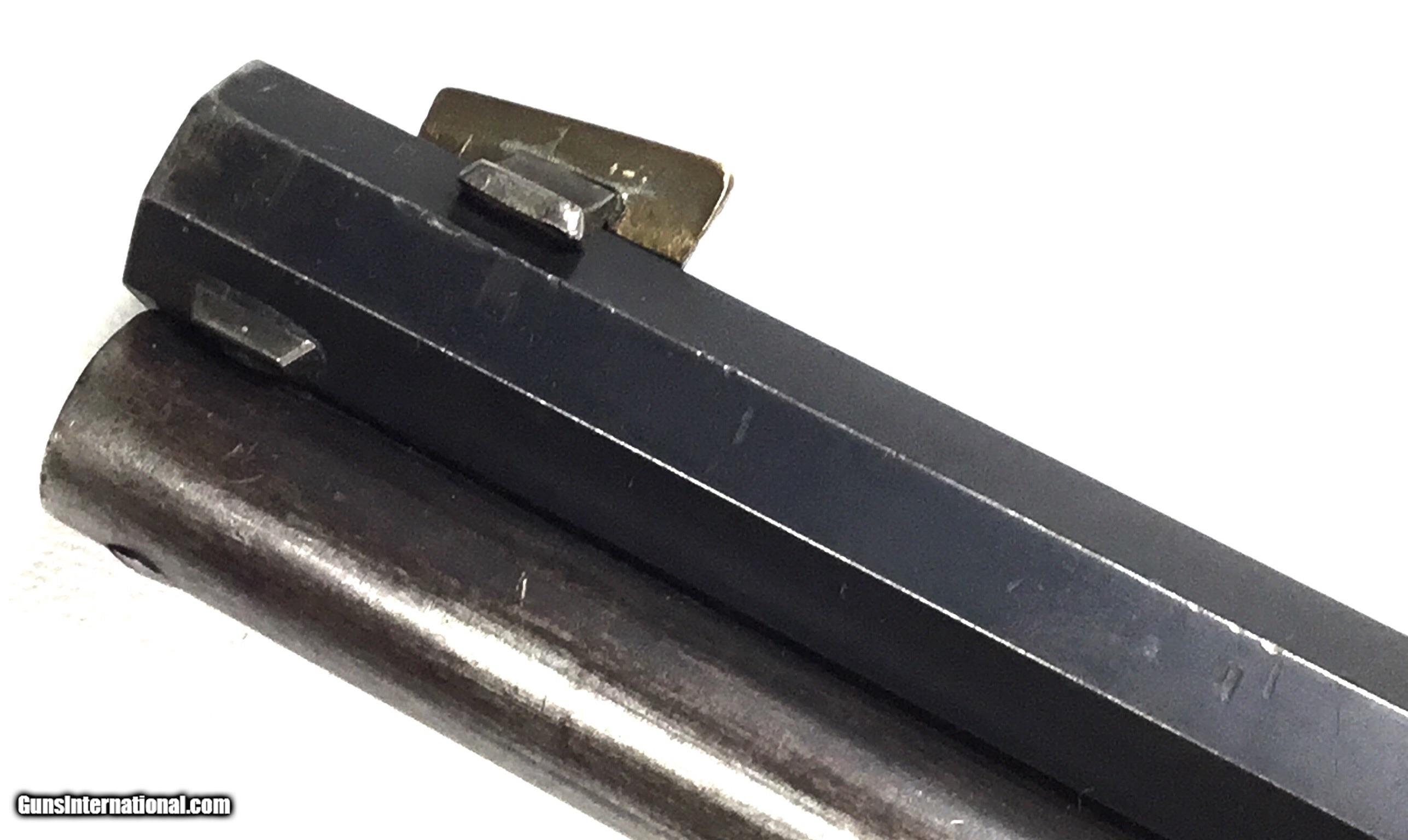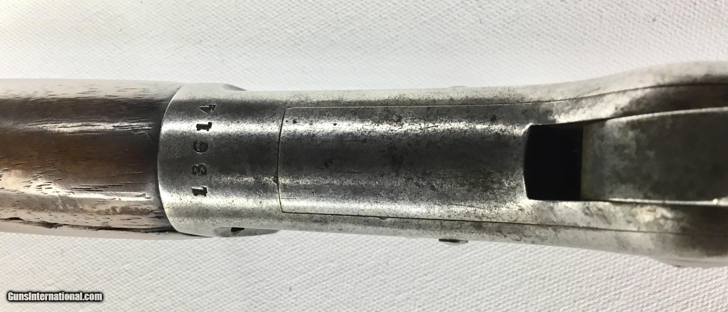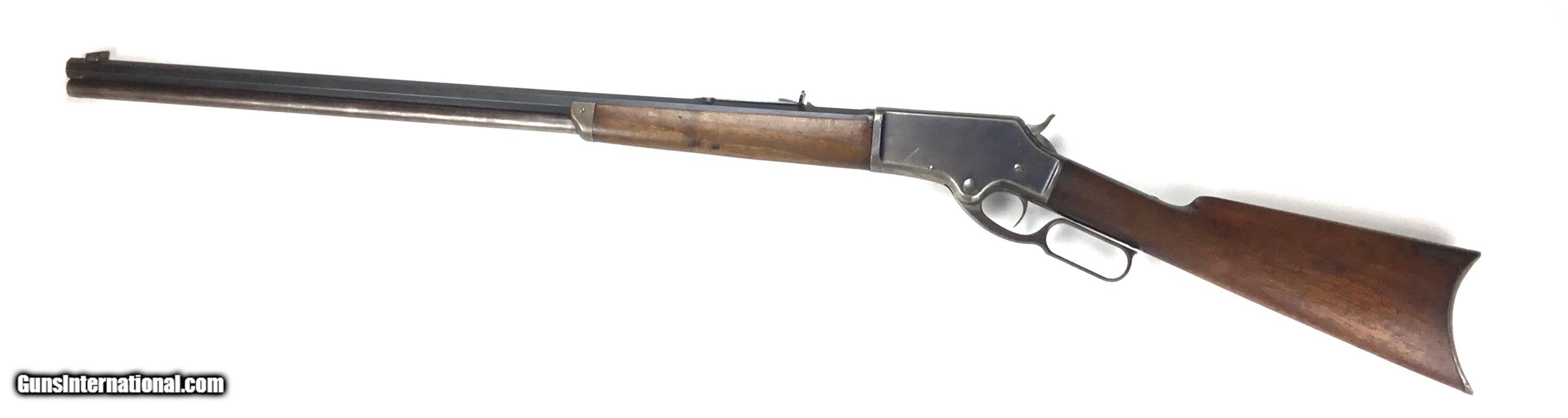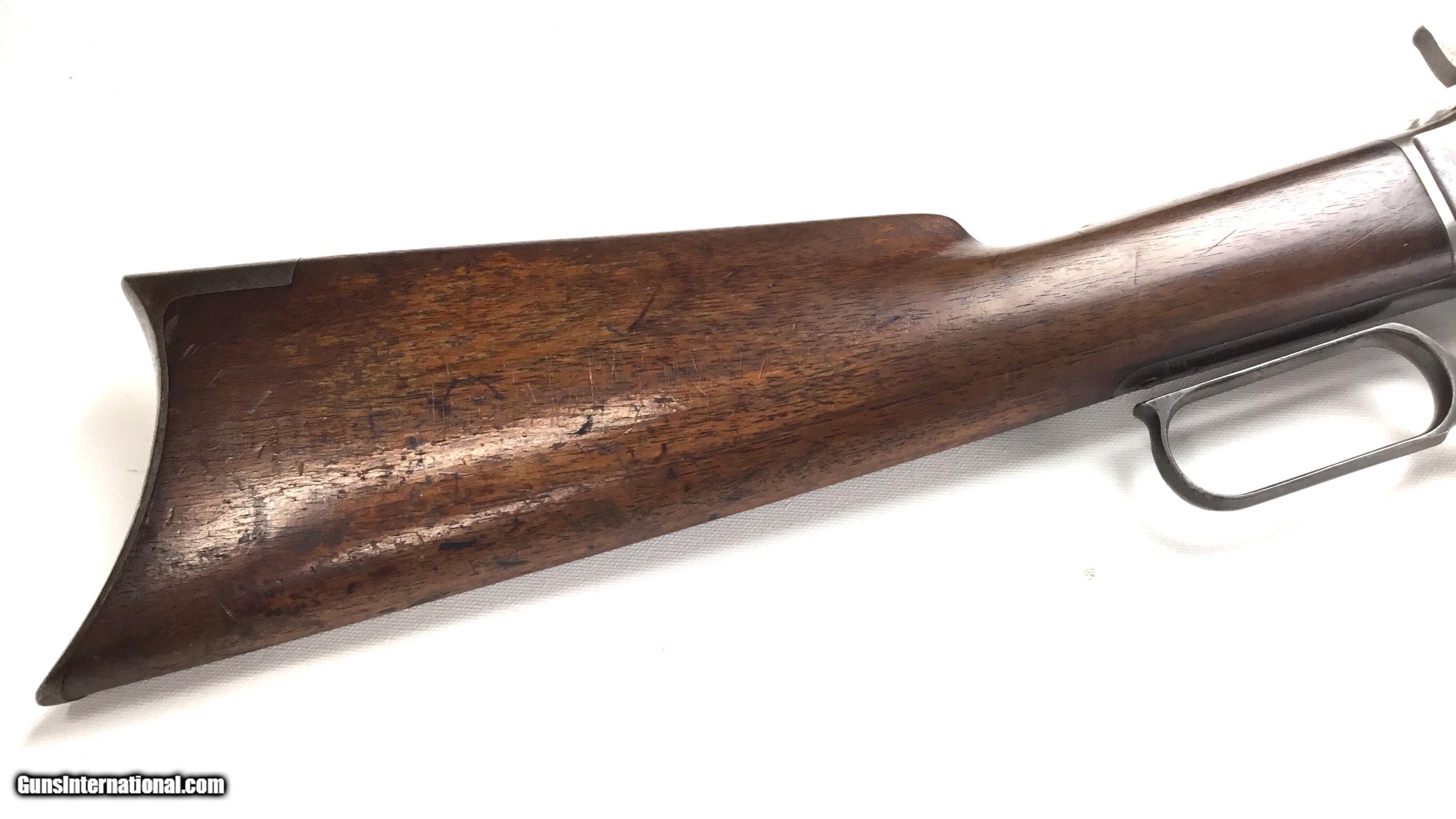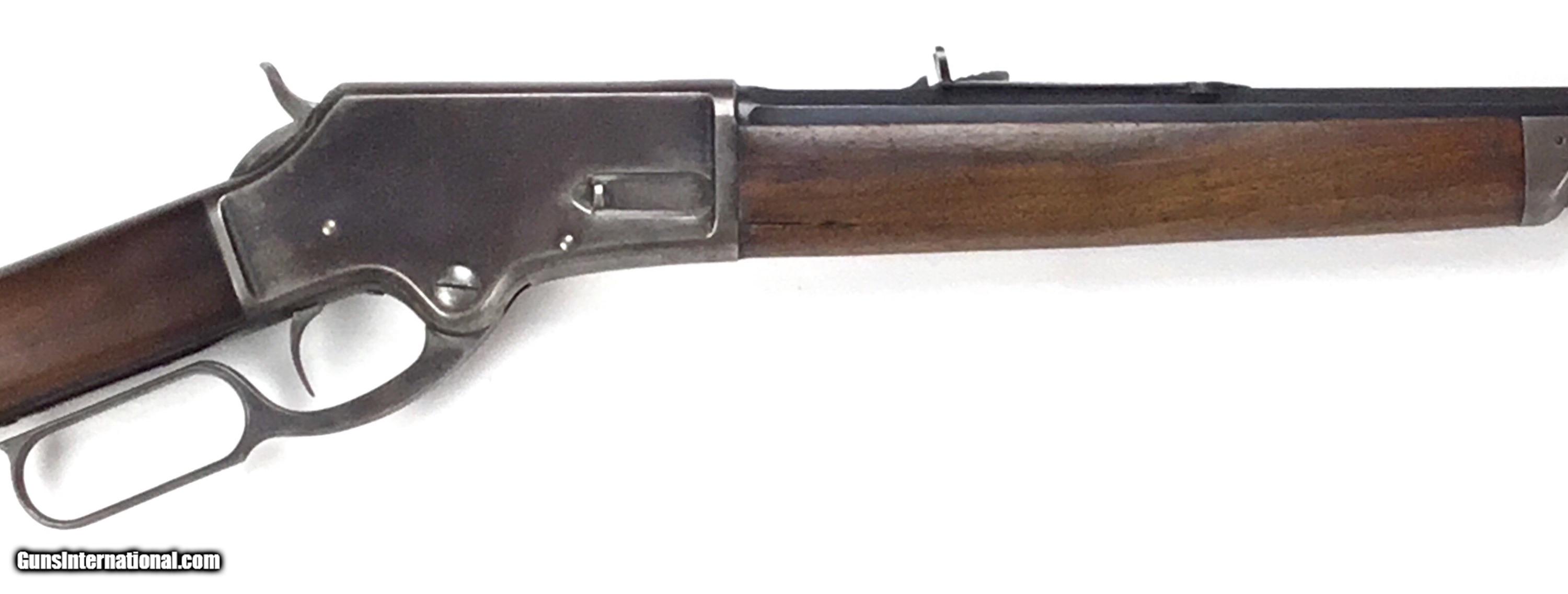 Description: MARLIN 1881 .38-55, Straight Stock with Curved Metal Butt Plate, Forearm has Two Cracks on Right Side Next to Receiver, Brass Blade Front Sight, Dovetailed Rear Sight, Manufactured by Marlin Fire-Arms Company, New Haven Connecticut Circa 1886, SN-13614, #2741, $1495.00, HAMPELSGUNCO SINCE 1919. SOLD Antique: Yes |