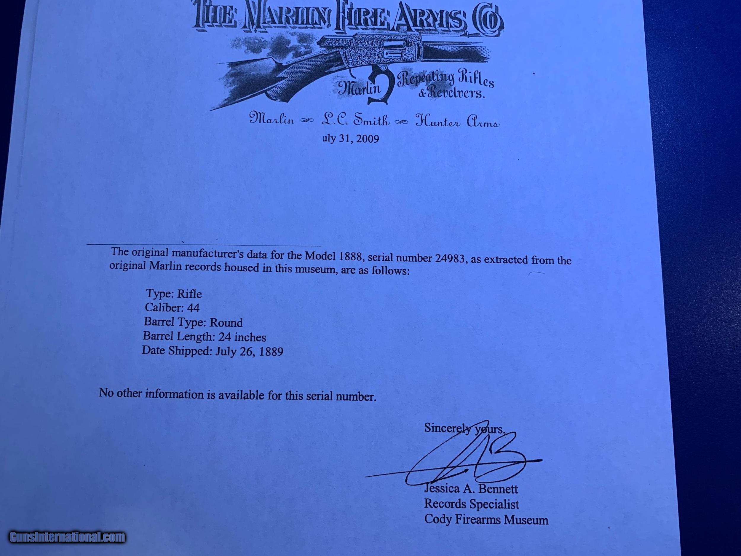 Description: MARLIN MODEL 1888, 44-40 caliber round barrel. 4814 total 1888s made. 266 round barrels (4.7%). . Bore has good rifling. Gun is 100% original, not changed in any way. Cody letter. Mfg 1889 SOLD Antique: Yes Rifle Caliber: .44-40 Winchester |