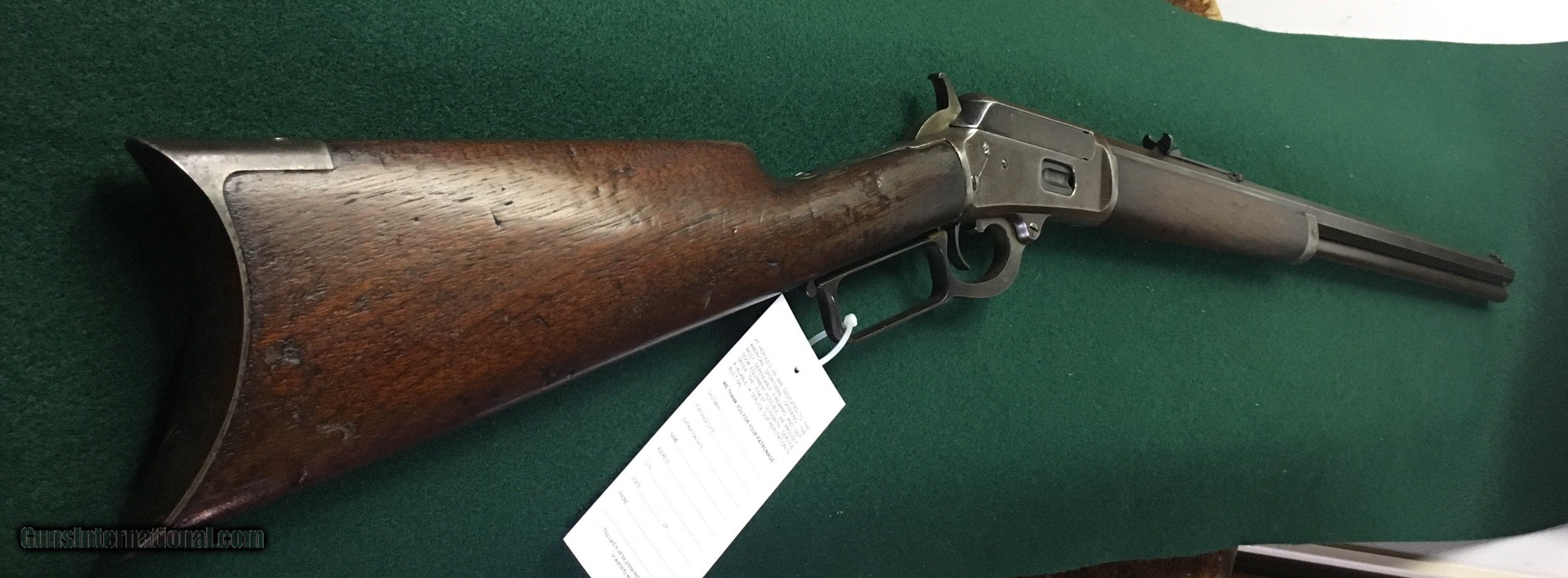 Description: (Price reduced) For your consideration we are offering this Marlin 1889 lever action rifle in 32-20 caliber. The manufacture date for this rifle is 1892, and the serial number is 643XX. Most of the bluing is gone but has a very nice patina. The wood is in good shape as well. Excellent example of this rifle at this price. Has honest wear, yet is still in very good condition for its age. (This is the only Marlin we have in 32-20 that is in the antique category) It has a 24 inch octagonal barrel and bore is dark. Please note: since this rifle was manufactured back in 1892, it is considered an antique and no FFL needed. And if you have a Colt Single Action Army in 32-20, this rifle would make a great combination for your handgun. We reserve the right to sell this item at our retail location until an offer is placed with Guns International. The preferred method of payment is USPS money order. We do accept Visa and MasterCard with a 4% surcharge. We will also take personal checks, however we will not ship the item until your check clears the bank. Please give us up to three business days to return emails and phone messages. Occasionally we get quite busy with walking in traffic and/or paperwork. (We’re not ignoring you, but there’s only a few of us here to handle all the work) Thank you for your patience and understanding in this matter. Please come visit us to see this item and many other fine older firearms at Herold’s Gun Shoppe in Waynesboro, Pa. We look forward to meeting you! PS: we have quite a few Marlin and Winchester older lever action rifles in stock and ready to go! If you’re into these kinds of rifles, come take a look at our inventory! SOLD Antique: Yes Manufacturer: Marlin Model: 1889 Serial Number: 643xx Caliber Info: 32-20 Bore: Dark but useable. Metal Condition: VG for its age Wood Condition: VG for its age |