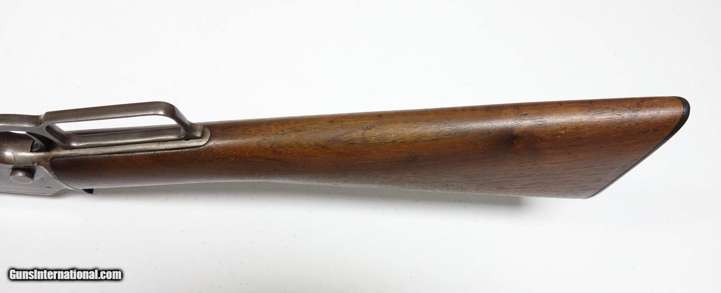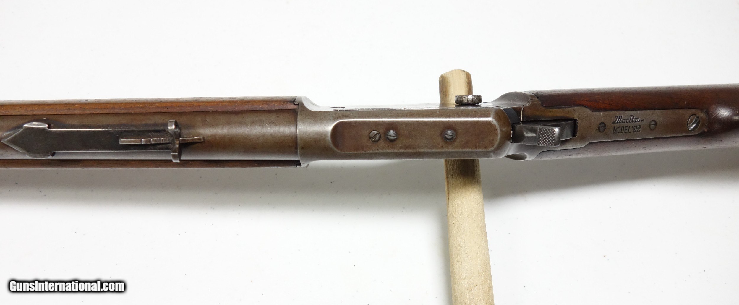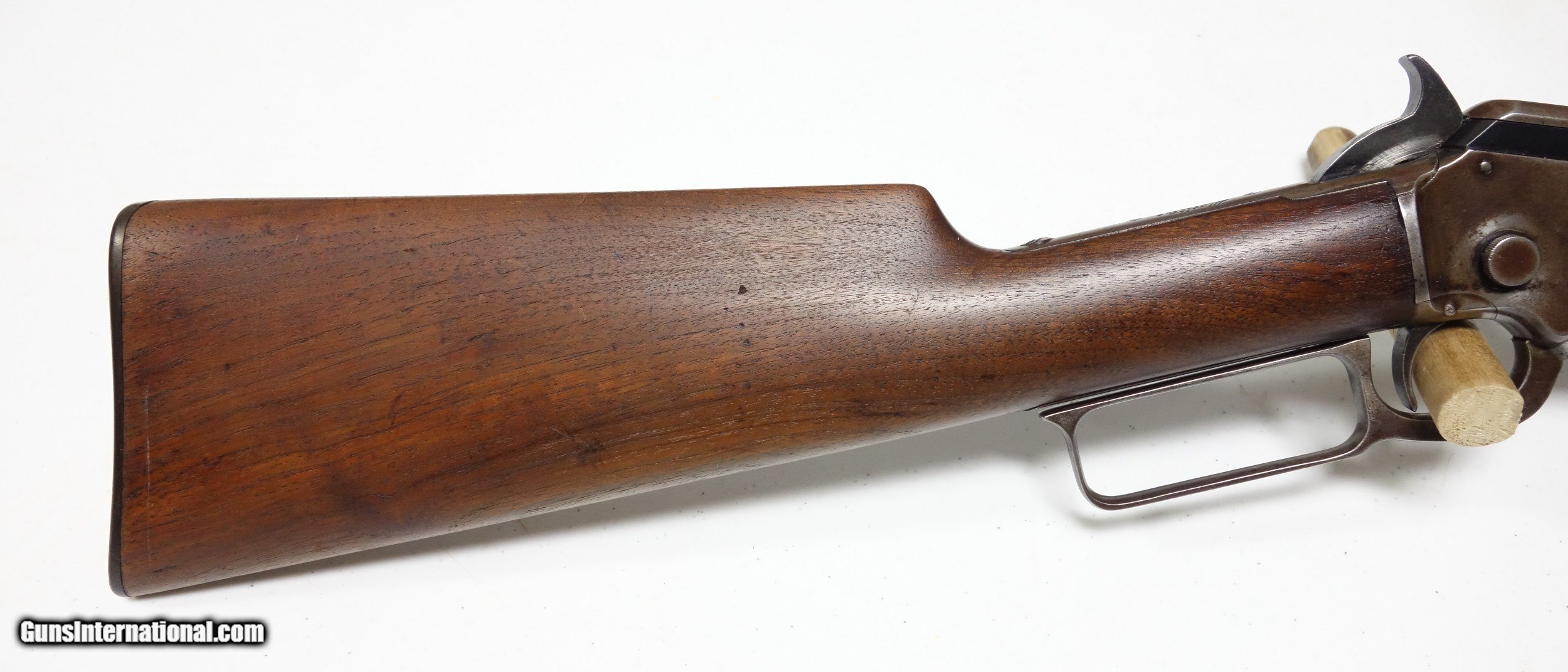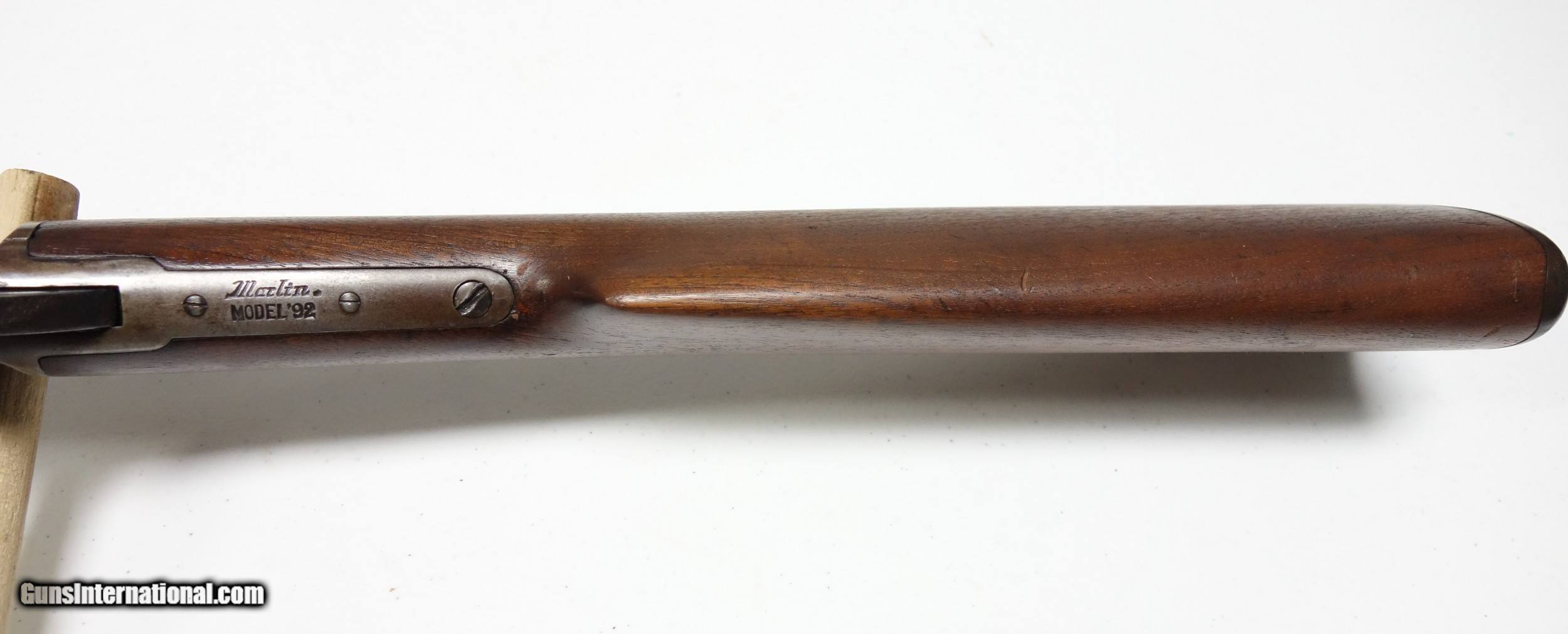 Description: Marlin '92 lever-action rifle in the less frequently encountered 22 LR caliber. S/N 414508. The rifle is in good, unmolested condition showing an overall patina to the finishes, but with no noteworthy marks nor any cracks. It features a thumb screw removable side plate for easy access to inner action components. The Barrel is 24" with a poor-fair bore. I have personally fired the rifle and all functions were perfect along with very decent accuracy. SOLD Curio/Relic: Yes |