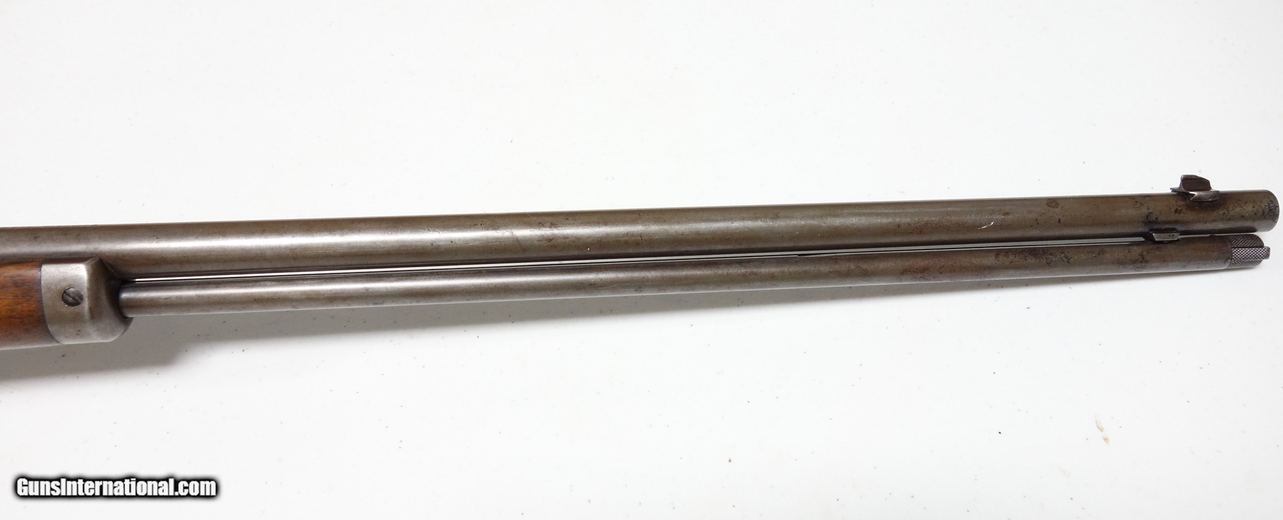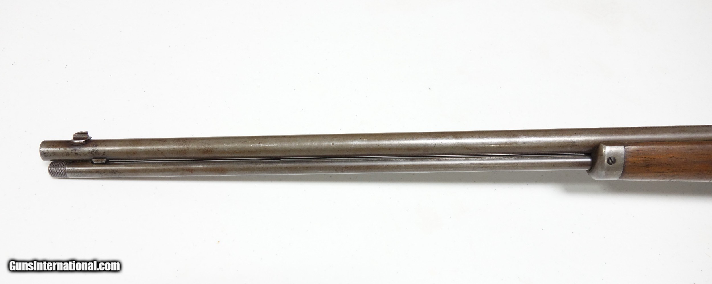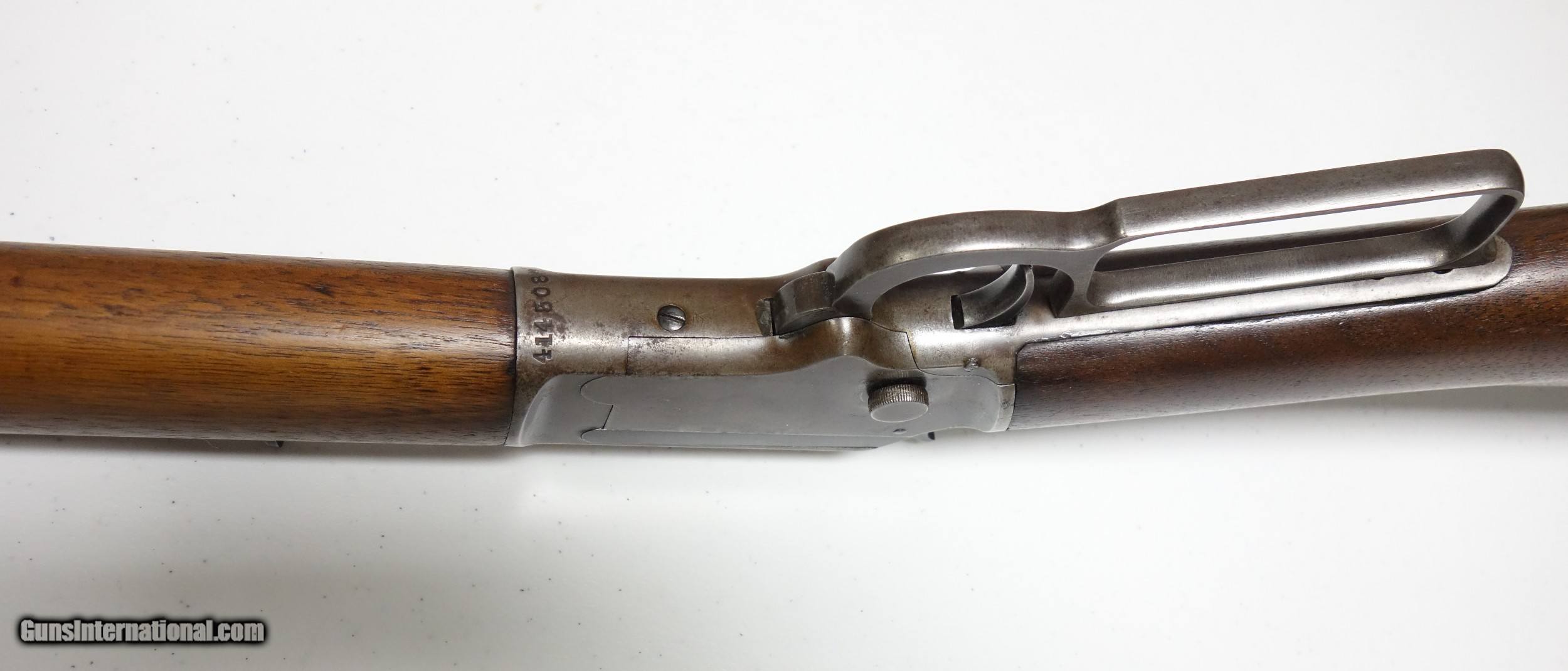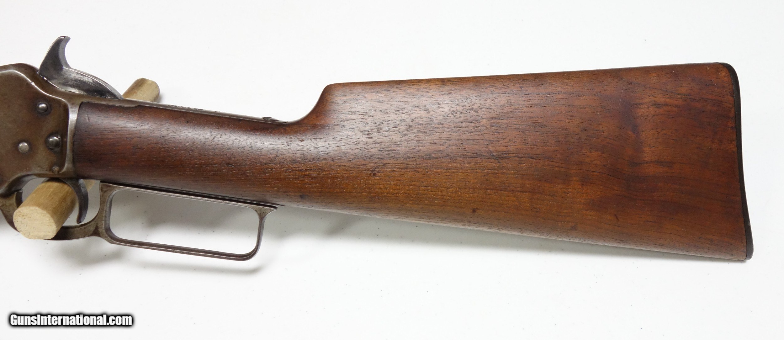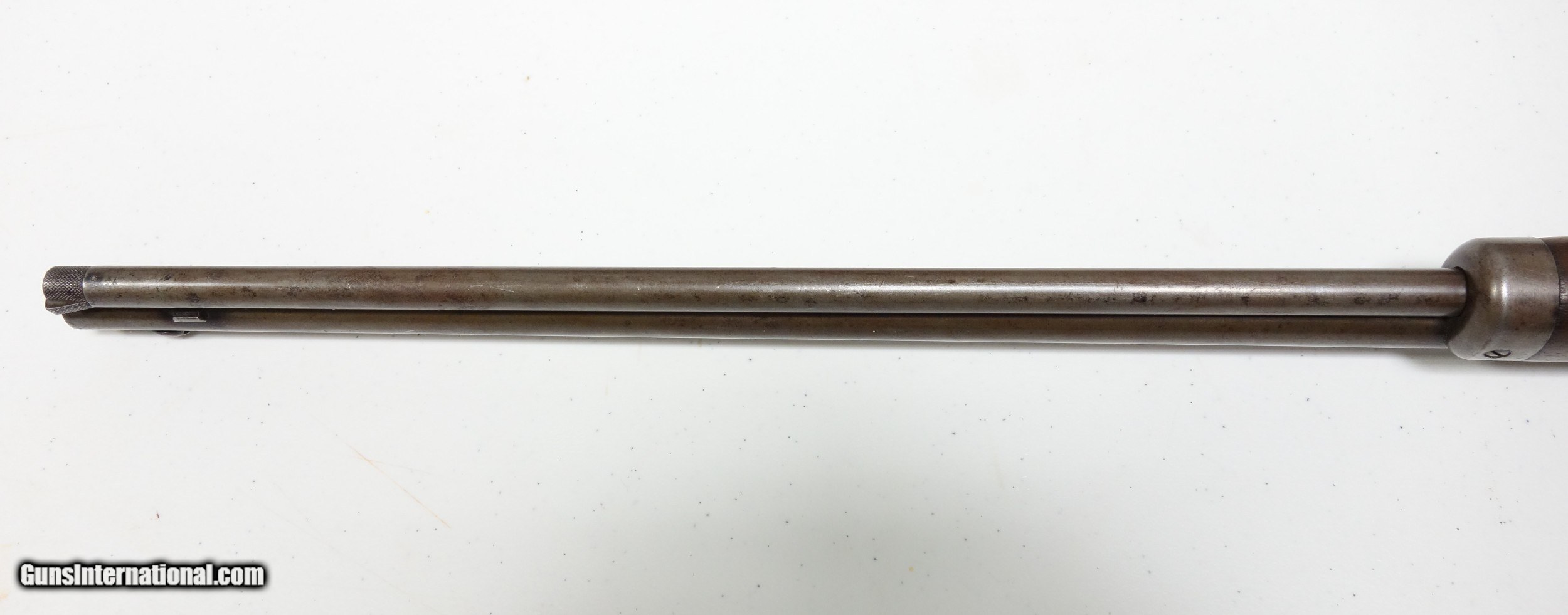 Description: Marlin '92 lever-action rifle in the less frequently encountered 22 LR caliber. S/N 414508. The rifle is in good, unmolested condition showing an overall patina to the finishes, but with no noteworthy marks nor any cracks. It features a thumb screw removable side plate for easy access to inner action components. The Barrel is 24" with a poor-fair bore. I have personally fired the rifle and all functions were perfect along with very decent accuracy. SOLD Curio/Relic: Yes |