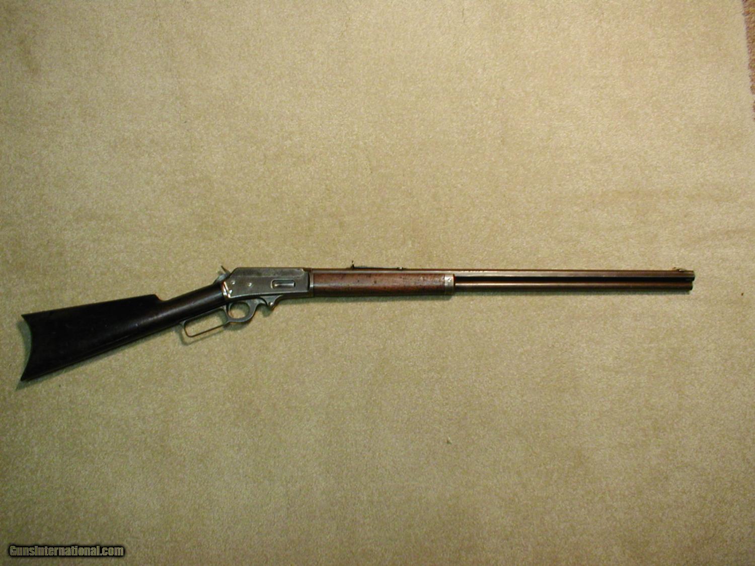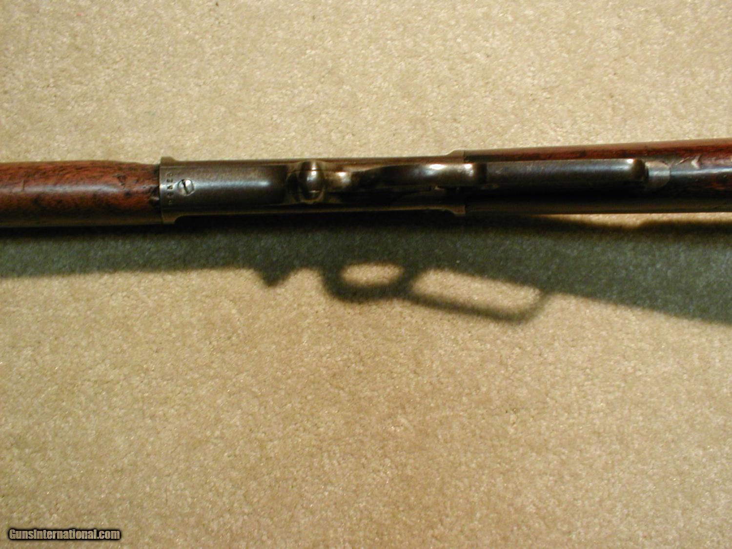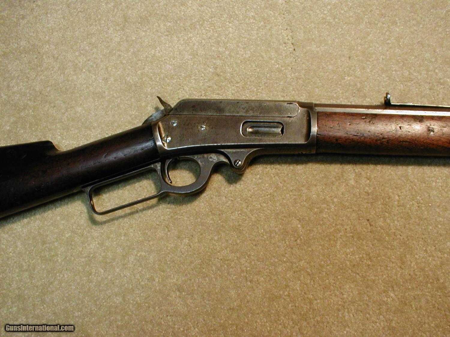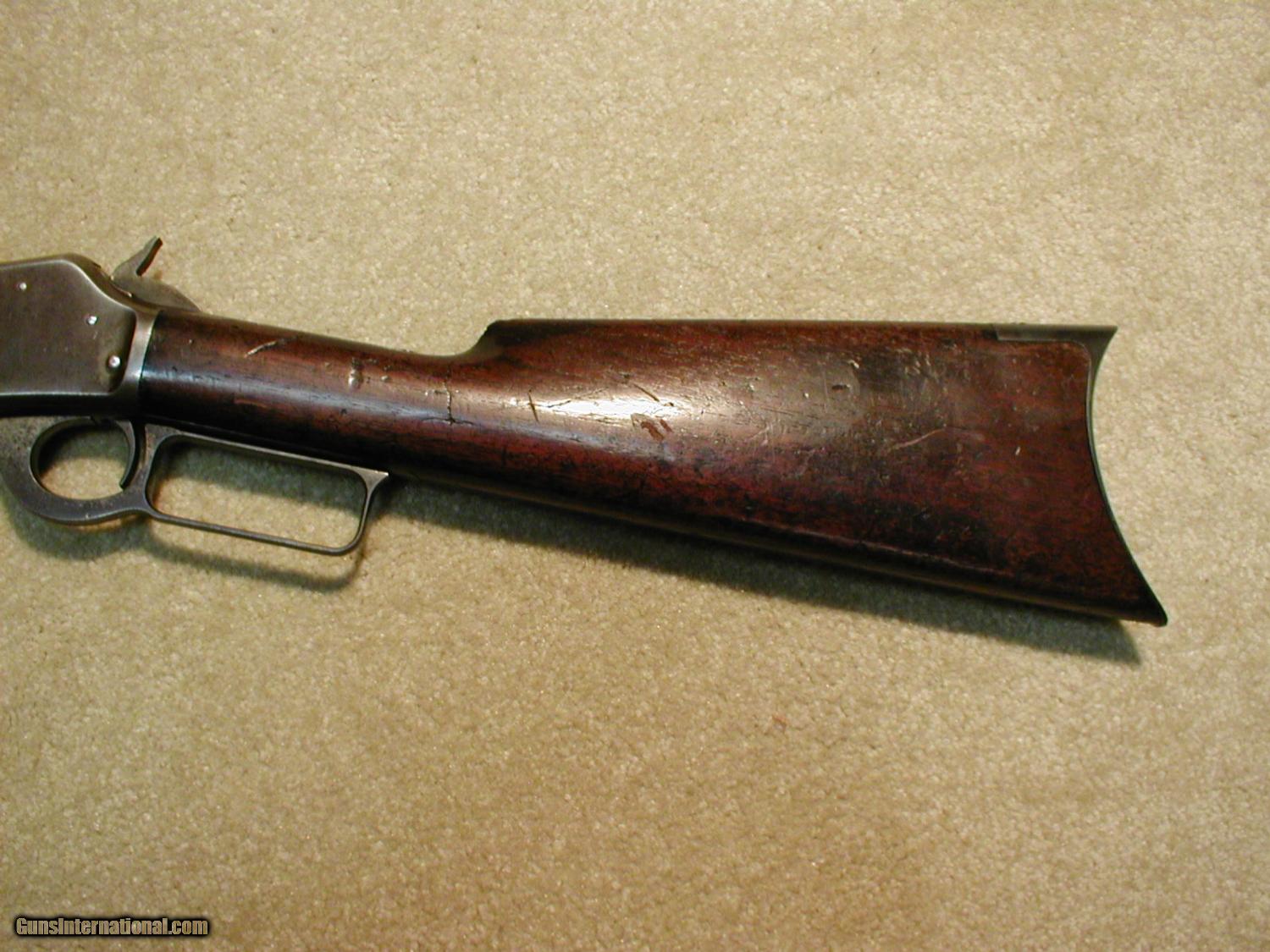 Description: EARLIEST FIRST TYPE 1893 .38-55 OCTAGON RIFLE MADE WITHOUT THE MODEL MARKING ON THE UPPER TANG, #99XXX, MADE 1894, only the first year or so of production had an unmarked upper tang after which "Model 1893" was stamped, this one came out of here in Montana and has heavy saddle wear on the left rear of the forearm (as carried over the front of a saddle by a right handed rider), still retains some very aged blue on the barrel, but is mostly an honest and uncleaned aged brown patina, fine butt stock, dark patina receiver with some blue on the loading gate, may have a couple of correctly replaced screws, original front and rear sights, tight action, bore a little dark but with good rifling all the way through, a nice uncleaned very early example that saw real hunting use in Montana! SOLD Antique: Yes Manufacturer: Marlin Model: 1893 early oct, c.1894 Serial Number: 99XXX Caliber Info: .38-55 Condition: VG-Fine |