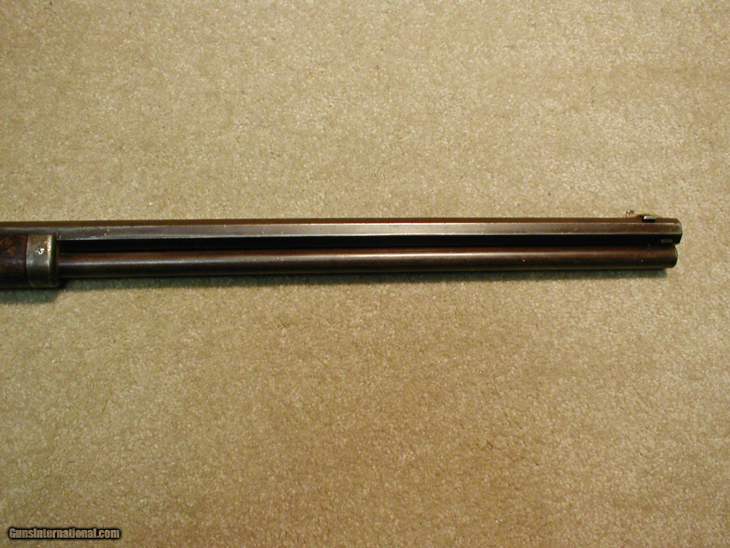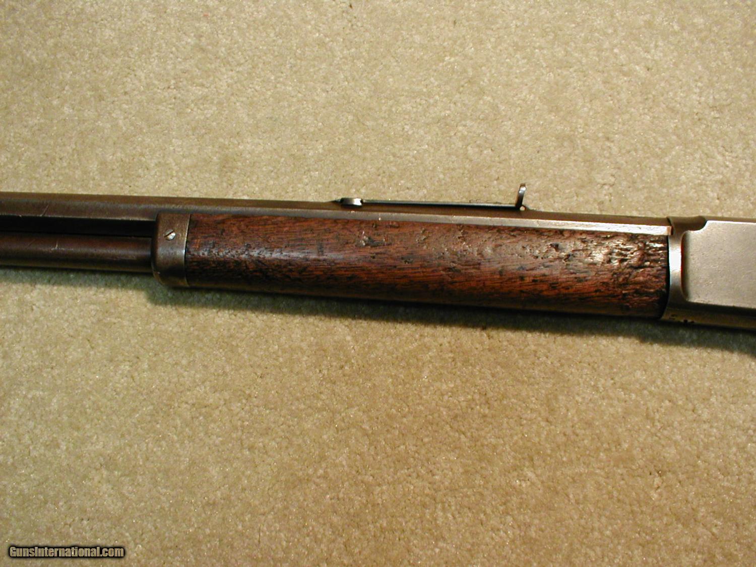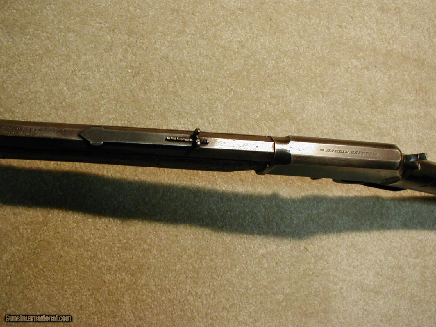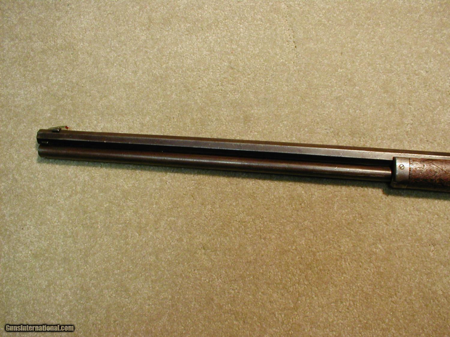 Description: EARLIEST FIRST TYPE 1893 .38-55 OCTAGON RIFLE MADE WITHOUT THE MODEL MARKING ON THE UPPER TANG, #99XXX, MADE 1894, only the first year or so of production had an unmarked upper tang after which "Model 1893" was stamped, this one came out of here in Montana and has heavy saddle wear on the left rear of the forearm (as carried over the front of a saddle by a right handed rider), still retains some very aged blue on the barrel, but is mostly an honest and uncleaned aged brown patina, fine butt stock, dark patina receiver with some blue on the loading gate, may have a couple of correctly replaced screws, original front and rear sights, tight action, bore a little dark but with good rifling all the way through, a nice uncleaned very early example that saw real hunting use in Montana! SOLD Antique: Yes Manufacturer: Marlin Model: 1893 early oct, c.1894 Serial Number: 99XXX Caliber Info: .38-55 Condition: VG-Fine |