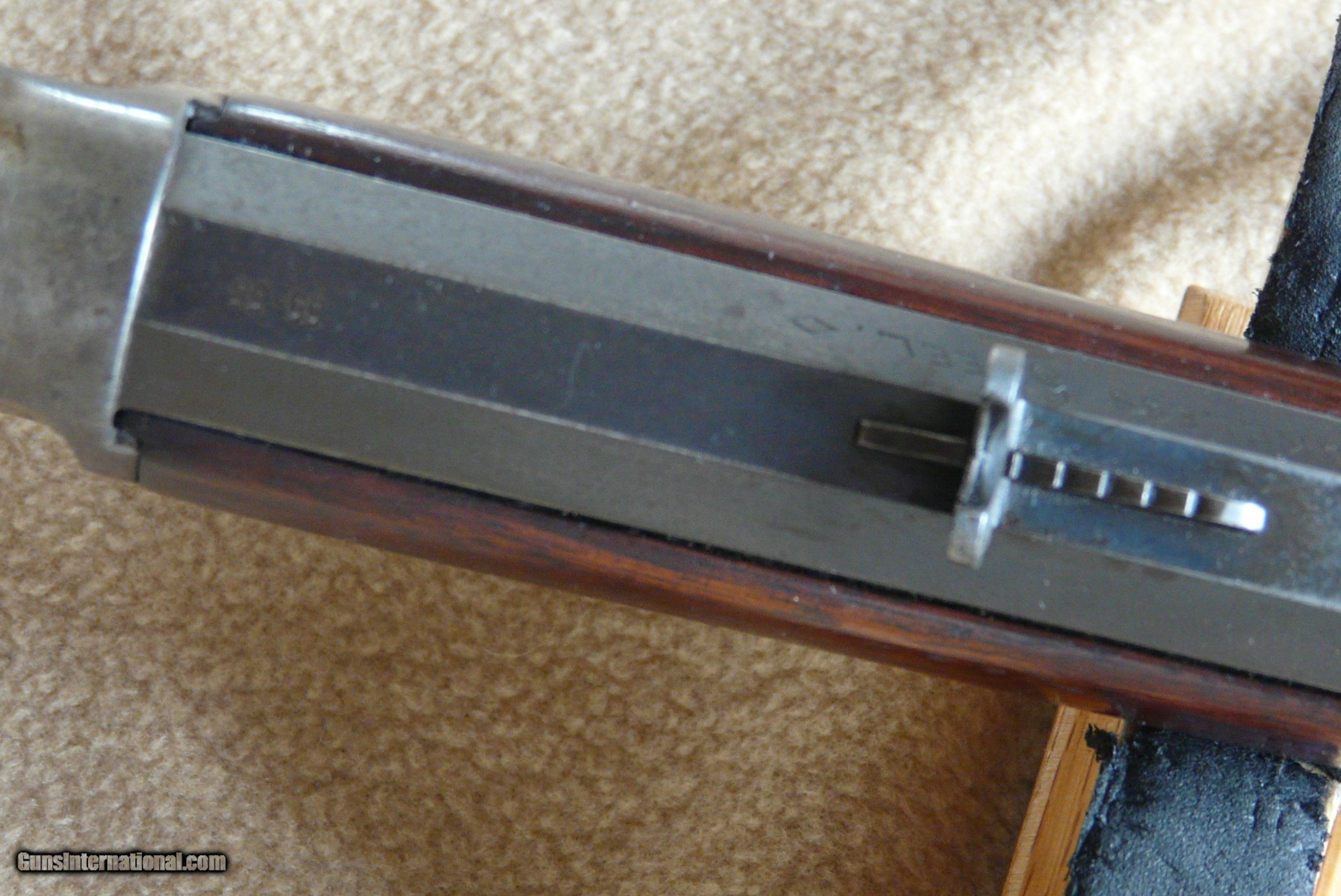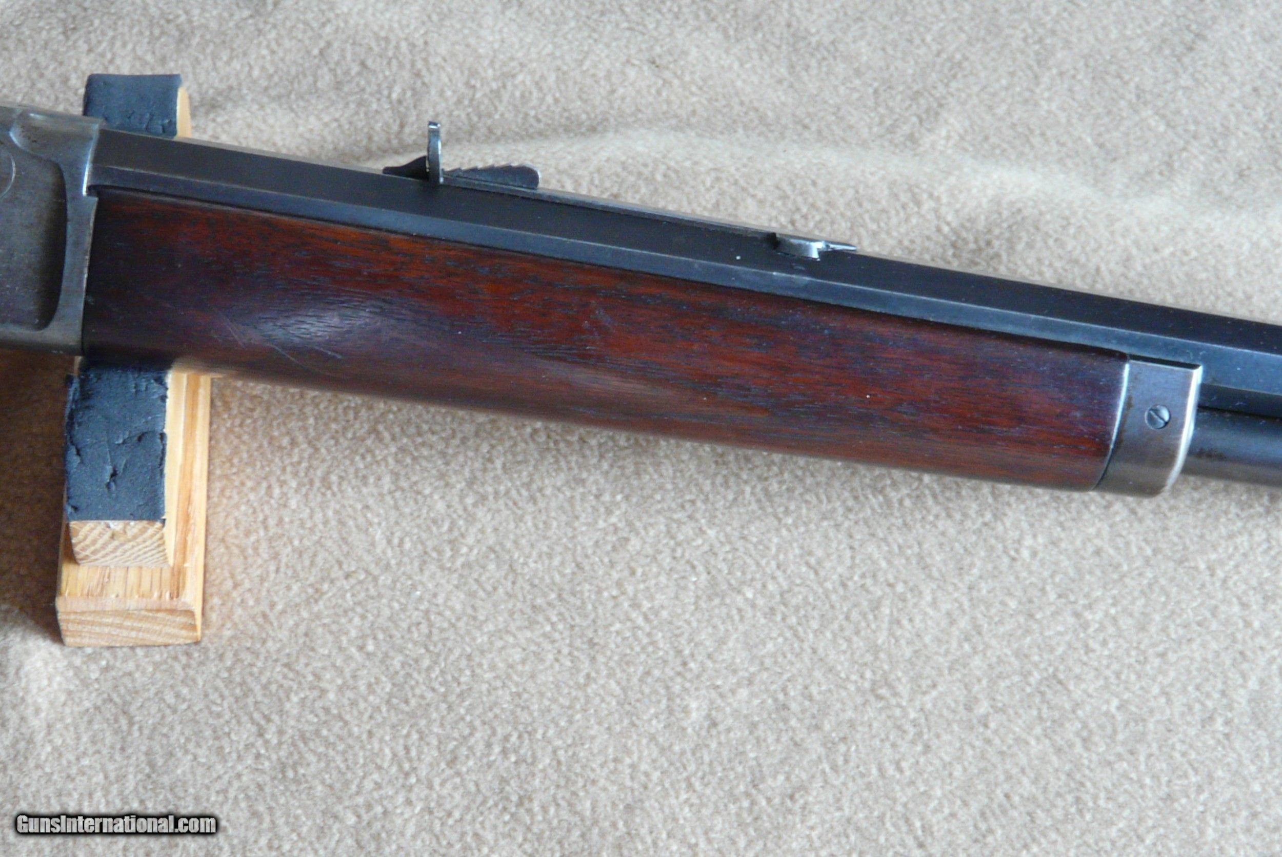 Description: This marlin 1893 is in 38-55 caliber with EXC Plus Bore, and SPECIAL ordered 28" Oct tapered Bbl ! The rifle is 100% original, with EXC orig Wood, forend and stock, Bbl Blue is 98% and all original, Receiver has typical Marlin case color that is fading, buttplate also, absolutely no changes made in this rifle, mechanics are perfect ! Hard to find in this caliber and condition! Holes on top of receiver, are on every model 1893 rifle, this is 100% factory original !! SOLD Antique: Yes |