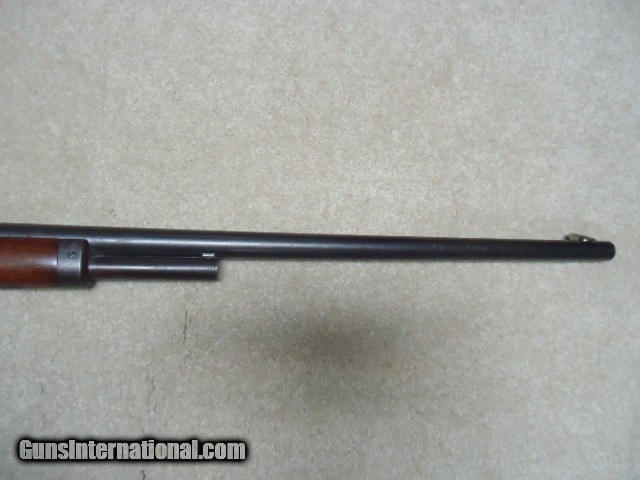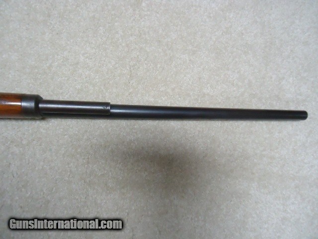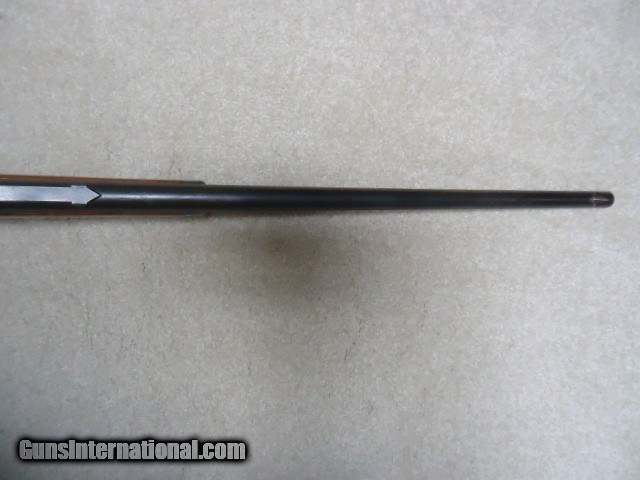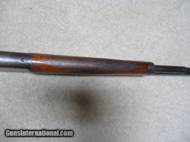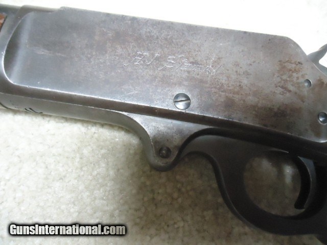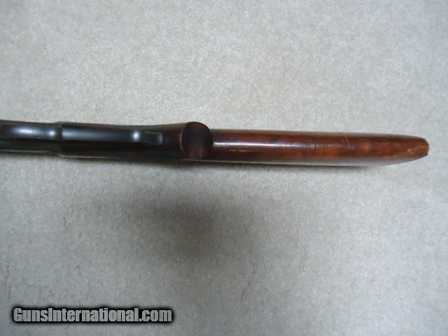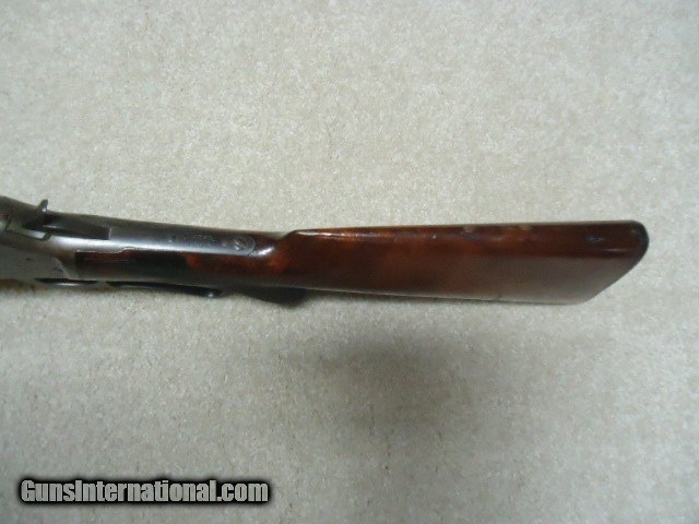 Description: MARLIN 1893 DELUXE .38-55 RIFLE, #211XXX, MADE 1900. This is an interesting rifle that came out of here in Montana. It has a 26" round barrel, half magazine, pistol grip, checkered, shotgun butt and fancy walnut. The left side of the receiver has period engraved "H. J. Stewart." Fine, lightly aged barrel and mag blue with one small area on the barrel about 4" back from the muzzle with old pin-prick pitting that blends well and is very minor. Barrel markings are sharp including the "SPECIAL SMOKELESS STEEL" stamping. Has the original buckhorn rear sight with elevator bar intact and Rocky Mountain blade front sight. The receiver case colors have aged to an uncleaned mottled gray with small traces of color in the most protected areas, good blue on the loading gate and excellent screw heads. Stock and forend are fine with tight wood to metal fit and shows only normal light handling. Checkering shows some light wear, but is all fine. Marlin embosed hard rubber shotgun butt plate has a small chip at the toe that does not go in to the wood. Very tight action, strong safety half-cock and excellent sharp bore. Comes with a Cody call-in sheet (I called it in) that verifies the pistol grip, barrel and magazine and caliber- Marlin letters are rarely more detailed. I'm sure "H. J. Stewart" was very proud of this fine 123 year old deluxe Marlin! SOLD Curio/Relic: Yes Rifle Caliber: .38-55 Winchester Manufacturer: MARLIN Model: 1893 DELUXE Serial Number: 211XXX Barrel Length: 26" ROUND Condition: FINE Bore Condition: EXCELLENT |