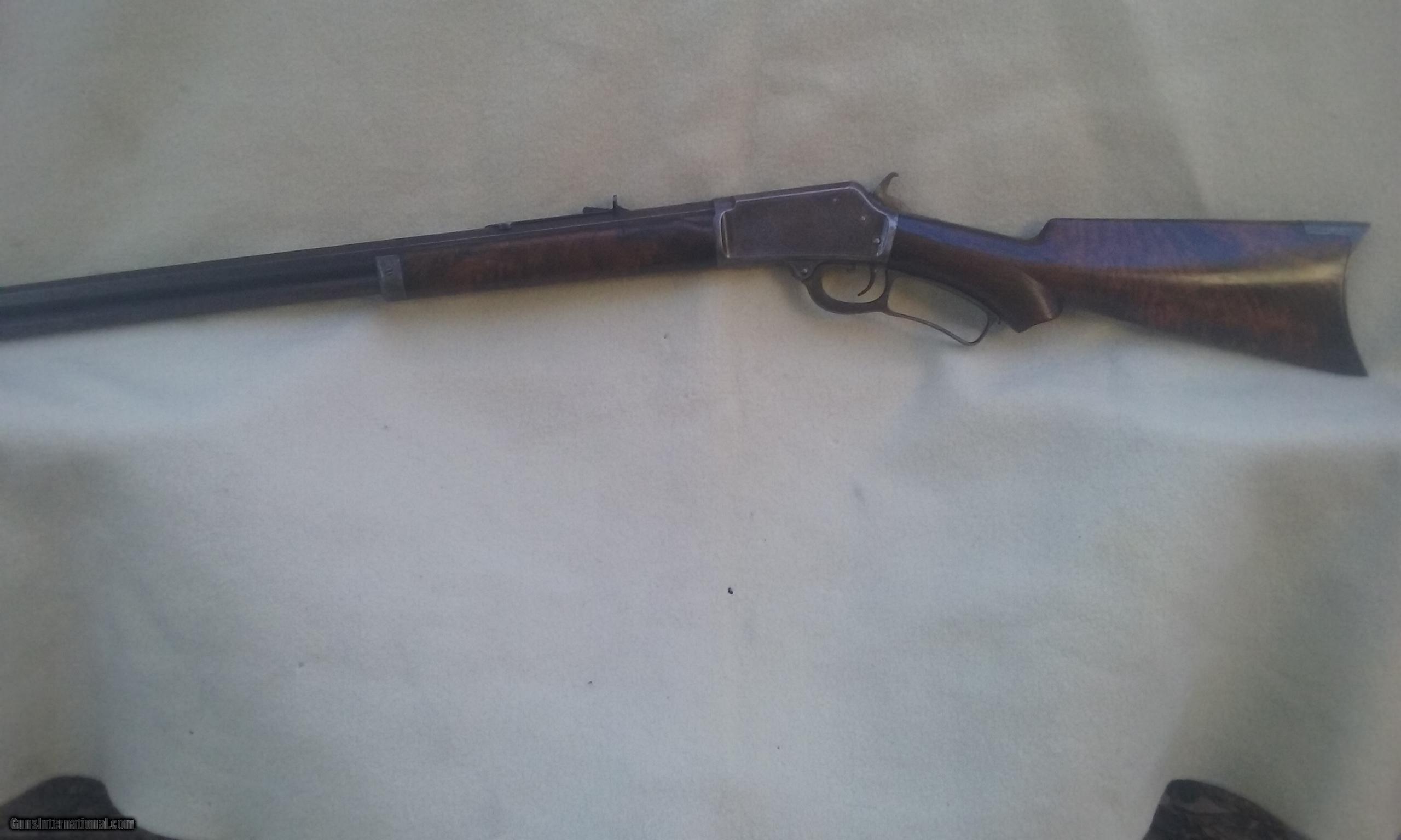 Description: Model 1889, factory Deluxe With fancy wood. 38-40. 24" bbl. Excellent metal, no pitting with a bore I would rate a solid 8.5+. Wood may have been cleaned up and coated. Wood has excellent figure with strong traces of the origional checkering. Overall a very nice piece seldom found. Antique, made around 1894. SN 76,812. Some of the screws have seen a driver but someone who knows what he's doing can clean them up. SOLD Antique: Yes Model: 1899 |