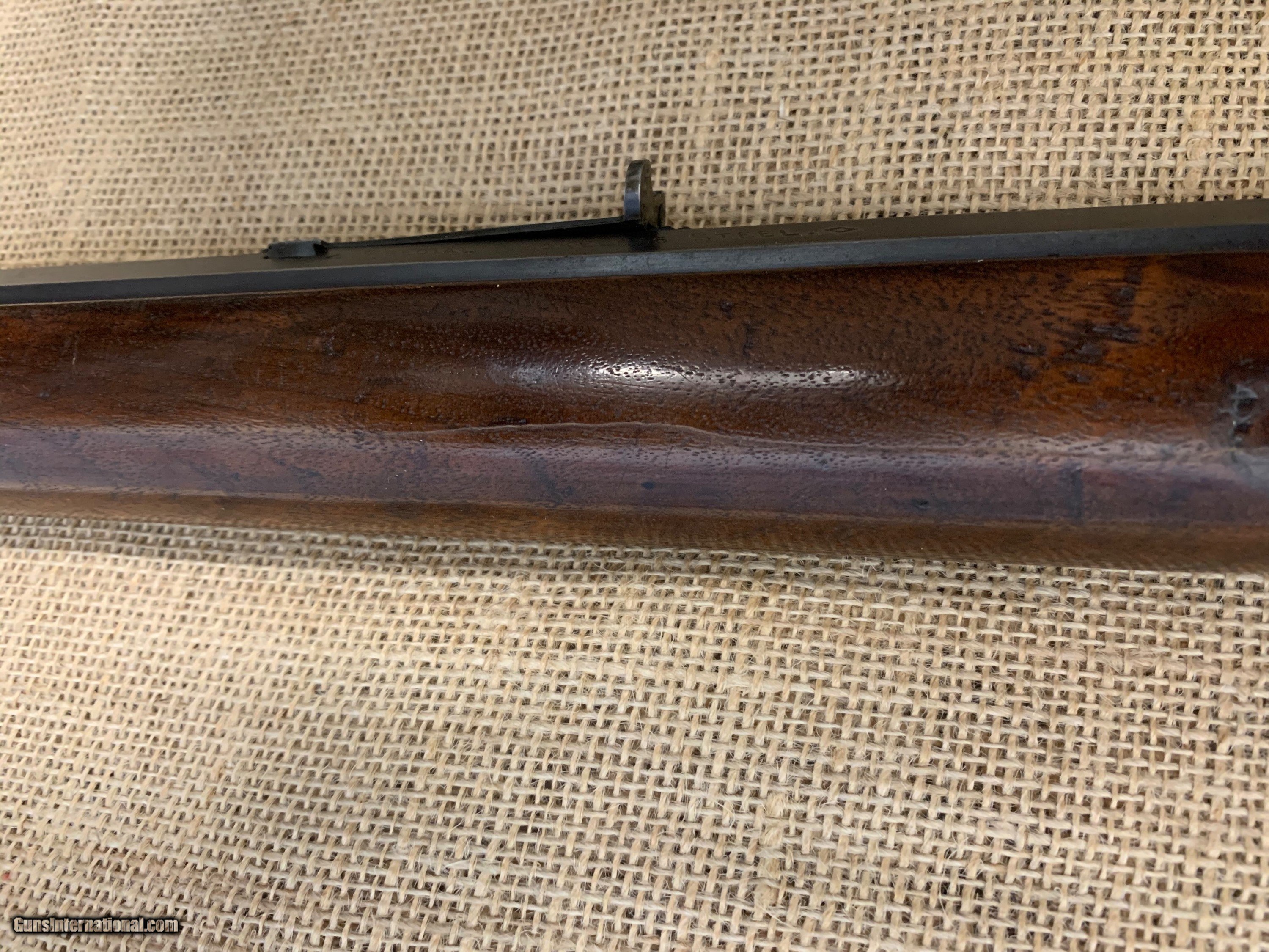Description: Marlin 1893 in 30-30. Looks like nickeled steel receiver to me. Let me know what you think. Very nice bore on this rifle. Should shoot great. Has a this crack in forearm. I took a pic to try and show it, it is hard to pick up. Born 1903 with great blueing on barrel and mag tube. Serial # on crescent butt plate matches receiver. SOLD Curio/Relic: Yes Manufacturer: Marlin Model: 1893 Serial Number: 274008 Barrel Length: 26” Condition: Very good Metal Condition: Excellent Wood Condition: Good Bore Condition: Excellent Barrel Type: Octagon Action: Lever Triggers: 4 lb trigger pull Manufacture Date: 1903 |