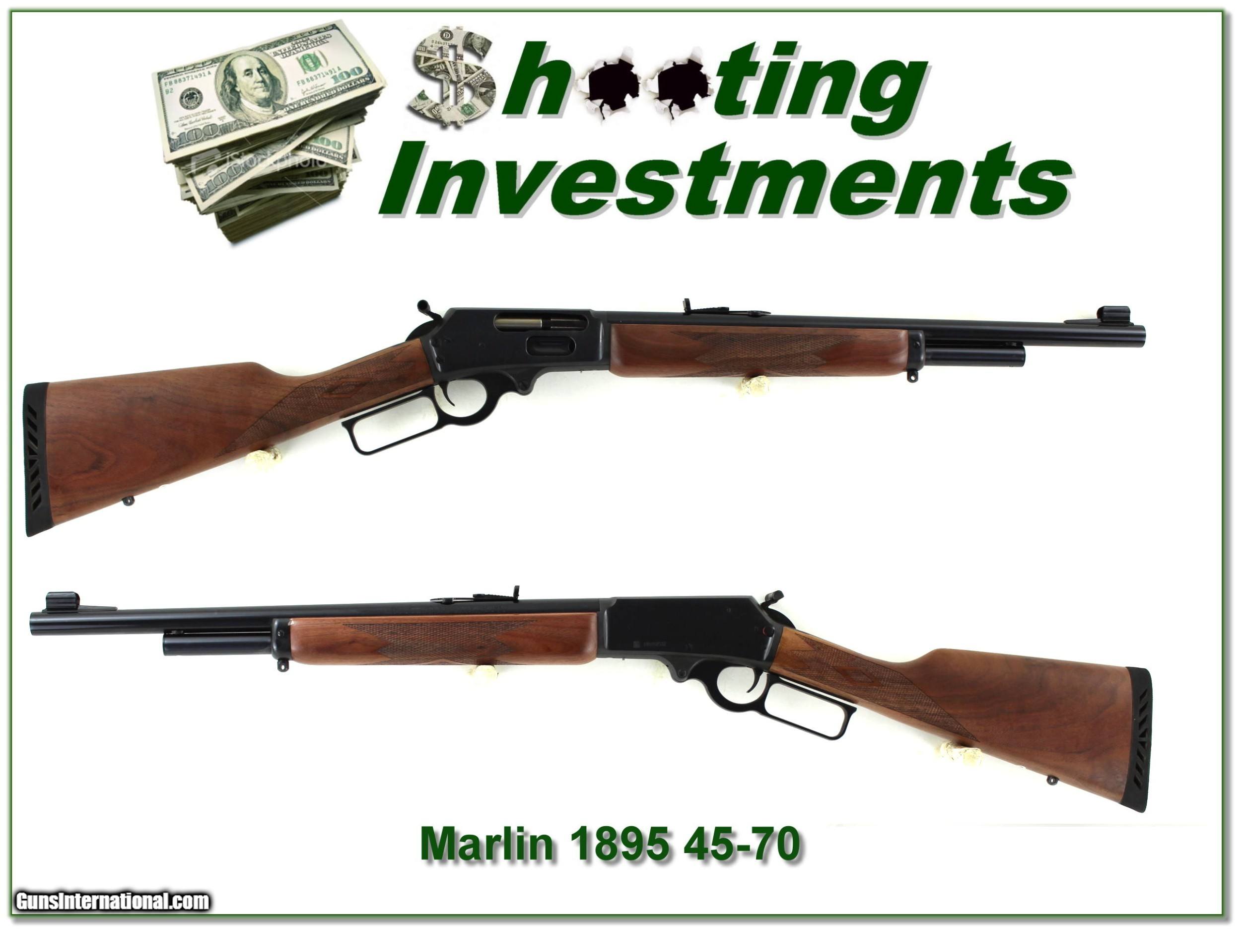 Description: This is a like new condition Marlin 1895 in 45-70. It is the 18in Guild Gun Marlin and perfect for big bears. I am sure only a couple rounds fired. I find no marks on the metal or the wood! Shipping and insurance is $49 Please email me with any questions or larger pictures. (Consign your quality firearms with Shooting Investments for only 12%! Let me know if you have any you would like to sell!) 22-0127 Payment: Payment is by Money Order, Cashiers Check or Personal Check. I can now also accept Credit Cards (MasterCard, Visa, Discover & American Express) with a 3% convenience fee. Shipping: The shipping charge will be listed in each description. It is $49 for most long guns. Some heavy guns, over 48in boxes or those insured for over $2000 will be higher. Shipments to Alaska and Hawaii are higher because air shipment is required. Most firearms are shipped on Tuesday and Thursday and usually in 5 days of receipt of payment. We package all shipments carefully and insure them. Optics are shipped Priority Mail and most other non-firearm shipments are shipped First Class. Returns: Our return policy is simple. If for any reason you are not pleased with your purchase, you may return your item for a full refund of purchase price. Ammunition cannot be returned. It is important to us that you are happy. Guns cannot be fired or dissembled before returning them and they must be returned in the same condition as received. Notification of a return must occur with-in 3 days of receipt at your dealer. Shipping, convenience and dealer fees are not refundable and are the responsibility of the buyer. Lay-a-way: If needed, we offer a 60 day lay-a-way option on most firearms. It is 1/3 now, 1/3 in 30 days and 1/3 in 60 days. Lay-a-way firearm sales are final and if not completed the first payment cannot be returned. Consigning your firearms with Shooting Investments: We will help you get top dollar for your firearms. While most local guns shops charge 20% or more, our fee is only 12% with a minimum of $75. At your local gun shop it might take months to sell. Selling on-line provides instant access to thousands of interested buyers. You won’t find any other on-line dealer willing to sell your firearms for only 12% or listing every gun on 3 separate s. Selling through an House typically costs the seller 15% and the buyer an addition 15% (so 30%) and you have to wait several months to sell and longer to receive funds. If properly priced, we will sell your firearms in a few weeks. Send us an email or give us a call and we’ll explain how easy it is for you to get top dollar. Trading: Trading for use is really just buying your gun to re-sell. If you have a gun you want to trade, please email a picture and we will let you know what we can give or it. You will always get more if we sell it for you on consignment. Help for California Buyers: We are happy to ship to California. It is the buyer’s responsibility to make sure any item you buy is legal in your state. We are also happy to help with your purchase of a firearm from someone other than us. If you see a gun you would like to buy but the seller can’t or won’t ship to California they can ship to use and we’ll then ship it to your California dealer. The cost for this service is only $30 + shipping. Let us know if we can help! SOLD |