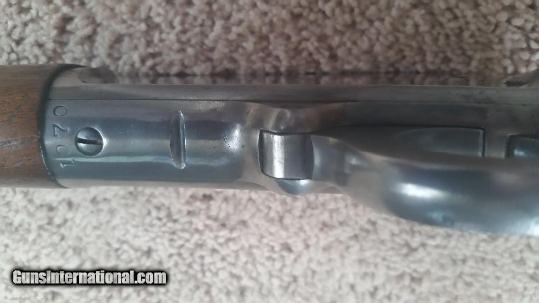 Description: PRE MAUMEE VALLEY GUN COLLECTORS ASN. SHOW PRICE MAUMEE OHIO MARCH 17 &18 2018. IF YOUR LOOKING FOR A ORIGINAL SHOOTABLE COWBOY ERA RIFLE TO SHOOT THIS ONES FOR YOU.THIS RIFLE WAS MADE 20 YEARS AFTER SMOKELESS POWDER WAS INTRODUCED, THE BORE ALTHOUGH HAS SLIGHT MINOR PITTING IS IN VERY GOOD CONDITION. THE PRICE IS REASONABLE FOR THE OVERALL QUALITY OF THE FIREARM. THE FIREARM IS A MODEL 94 MARLIN IN 38-40 RIFLE WITH FULL TUBE MAGAZINE DATE OF MANUFACTURE BETWEEN 1922 -1926, DURING THE YEARS FRANK KENNA OWNED MARLIN FIREARMS. THIS MARLIN RIFLE IS BUILT ON A TRAPPER RECEIVER, THATS WHERE THE GROOVE ON THE RECEIVER BELOW THE SERIAL NUMBER AND ABOVE THE COCKING LEVER APPREAR.THE SERIAL NUMBER IS DATED TO THE TRAPPER RECEIVER NOT THE DATE OF MANUFACTURE OF THE COMPLETE RIFLE. THE GROOVE IS WHERE THE FACTORY REMOVED A SWIVEL ON THE RECEIVER.. THE STAR LOCATED BEHIND THE HAMMER AND THE BULLSEYE ARE DESIGNATIONS THAT WAS ALSO USED DURING THE FRANK KENNA YEARS, THE RIFLE IS ABOUT 85% BLUEING ON THE BARREL AND RECEIVER, THERE IS NO PITTING ON EITHER THE BARREL OR RECEIVER. THE LEVER LOCKUP IS TIGHT. THE WOOD IS ALSO ABOUT 85% WITH NO MAJOR DENTS, DINGS OR SCRAPES ON THE BUTTSTOCK, HOWEVER THERE ARE TWO DENTS ON THE RIGHT SIDE OF THE FOREARM JUST IN FRONT OF THE RECEIVER, BOTH SHOULD BE VISIBLE IN THE PHOTO'S. THE BORE IS VERY SHOOTABLE BRIGHT WITH GOOD GROOVES AND LANDS WITH VERY MINOR PITTING IN SOME AREAS, I USED A MICRO BORESCOPE AVAILBLE ON LINE THAT IS COMPATABLE WITH MY ANDROID PHONE SO I KNOW THE EXACT CONDITION OF THE BORE. THIS RIFLE IS A GOOD EXAMPLE OF A MARLIN RIFLE THAT IS VERY SHOOTABLE AND THE OVERALL CONDITION WOULD MAKE SOMEBODY A FINE MARLIN RIFLE TO SHOOT. BUYER PAYS SHIPPING TO VERIFIED FFL LICENSE HOLDER AND ALL FFL FEES. SOLD Manufacturer: MARLIN FIREARMS CO. Model: 94 Serial Number: 1070 SEE NOTE IN THE DESCRIPTION |