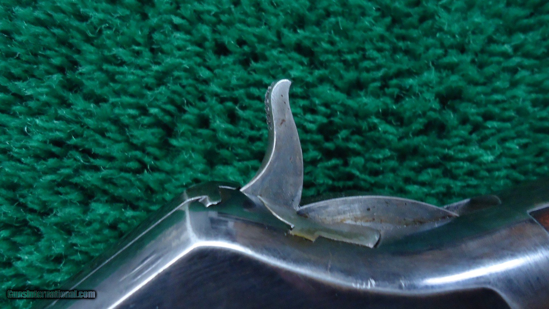 Description: 28 inch octagon barrel chambered in 45-70 Govt. caliber with a very good bore. Sights include a beaded blade front and graduated leaf rear with a front mounted "V" notch aperture. Full length magazine tube. Most original blue remains on the barrel and action. Traces of case color remain on the hammer and lever. Smooth action. Forearm and straight grip stock are a nicely grained walnut with a steel buttplate that are in very good condition. Just a few handling dings. This is an early Model 1881 with the rebated receiver. Fewer than 300 were produced with the rebated receiver. Nice early serial number Marlin. Leroy Merz Antique Firearms specializes in antique and vintage Winchesters and other fine American firearms. Since 1965 Mr. Merz has taken part in the world of firearms and has been a contributor to many well known reference books. We have hundreds of additional guns in every price range at our home online. Search for Merz Antiques in google. SOLD Antique: Yes Rifle Caliber: .45-70 Government |