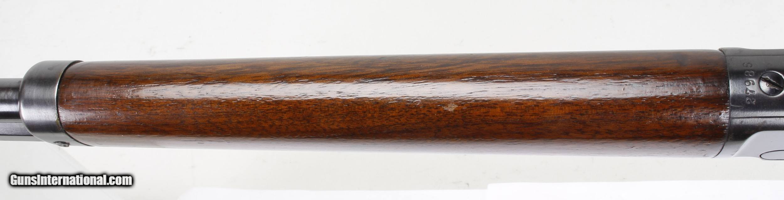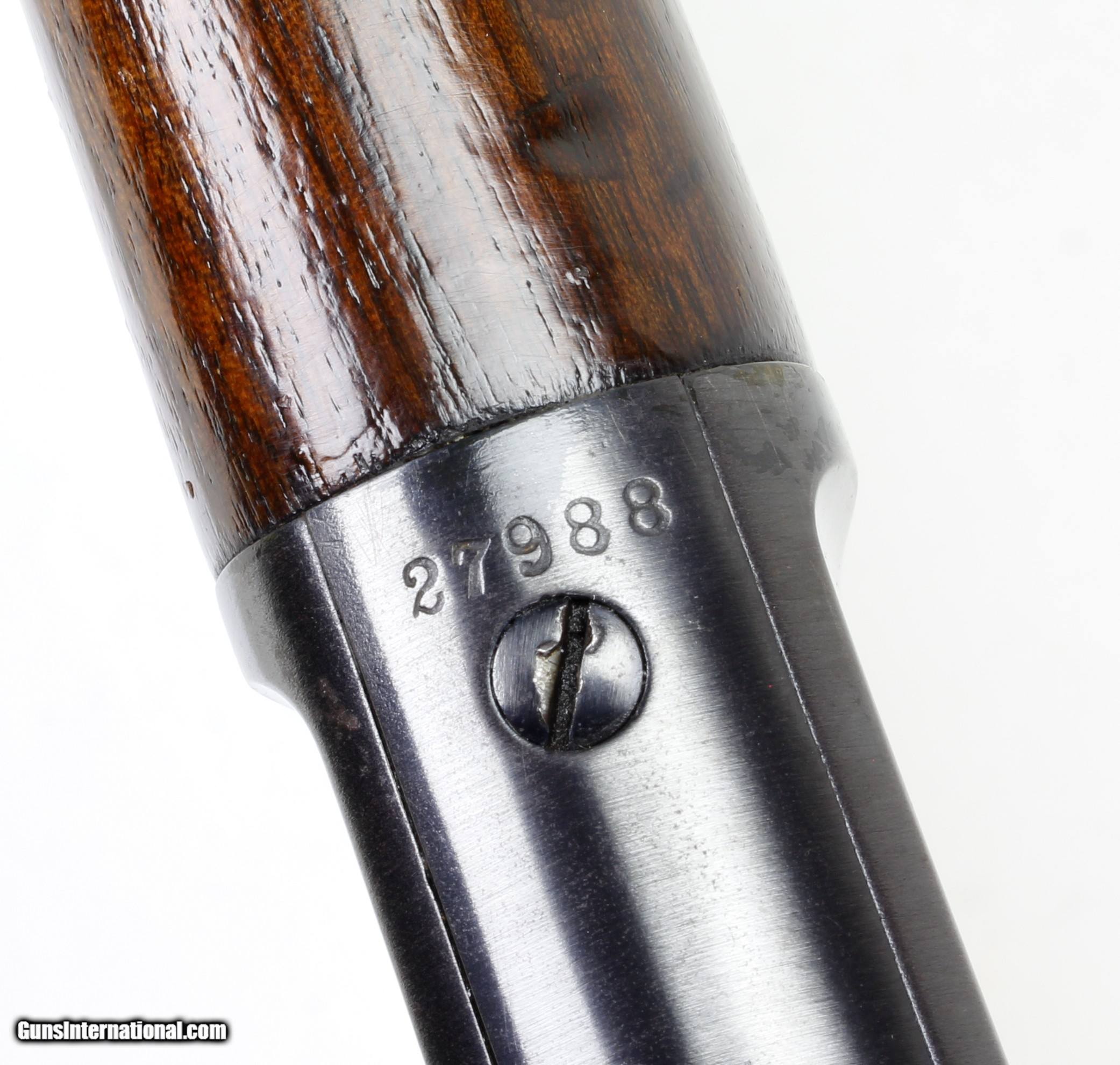 Description: Marlin Model 1889 Rifle in .38-40. SN #27988. Mfg in the 1st year of production of 1889. LOP 12 3/4". 24" octagon barrel with a good to very good bore fore it's age. Strong rifling with some light pitting in the grooves. The metal looks to have been re-blued many years ago and is in good condition. The original straight Walnut stock and forend are in very good condition. Crescent buttplate. Full tube magazine. Tang is tapped for a Tang Sight. This is an antique and requires no FFL to purchase. Ships Lower 48 W/ Insurance $40.00. SOLD Antique: Yes Manufacturer: Marlin Model: 1889 Serial Number: 27988 Barrel Length: 24" Octagon Caliber Info: .38-40 Condition: VG Metal Condition: VG Wood Condition: VG Bore Condition: Good to VG for Age LOP: 12 3/4 Finish: Blue Manufacture Date: 1889 |