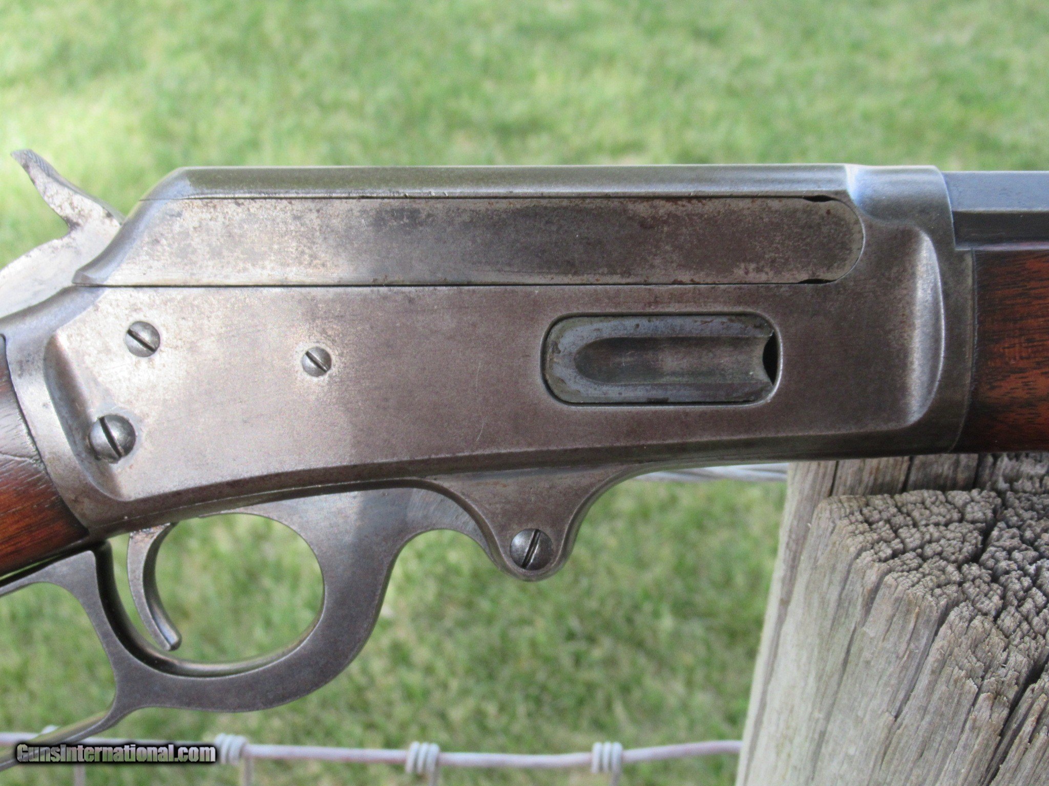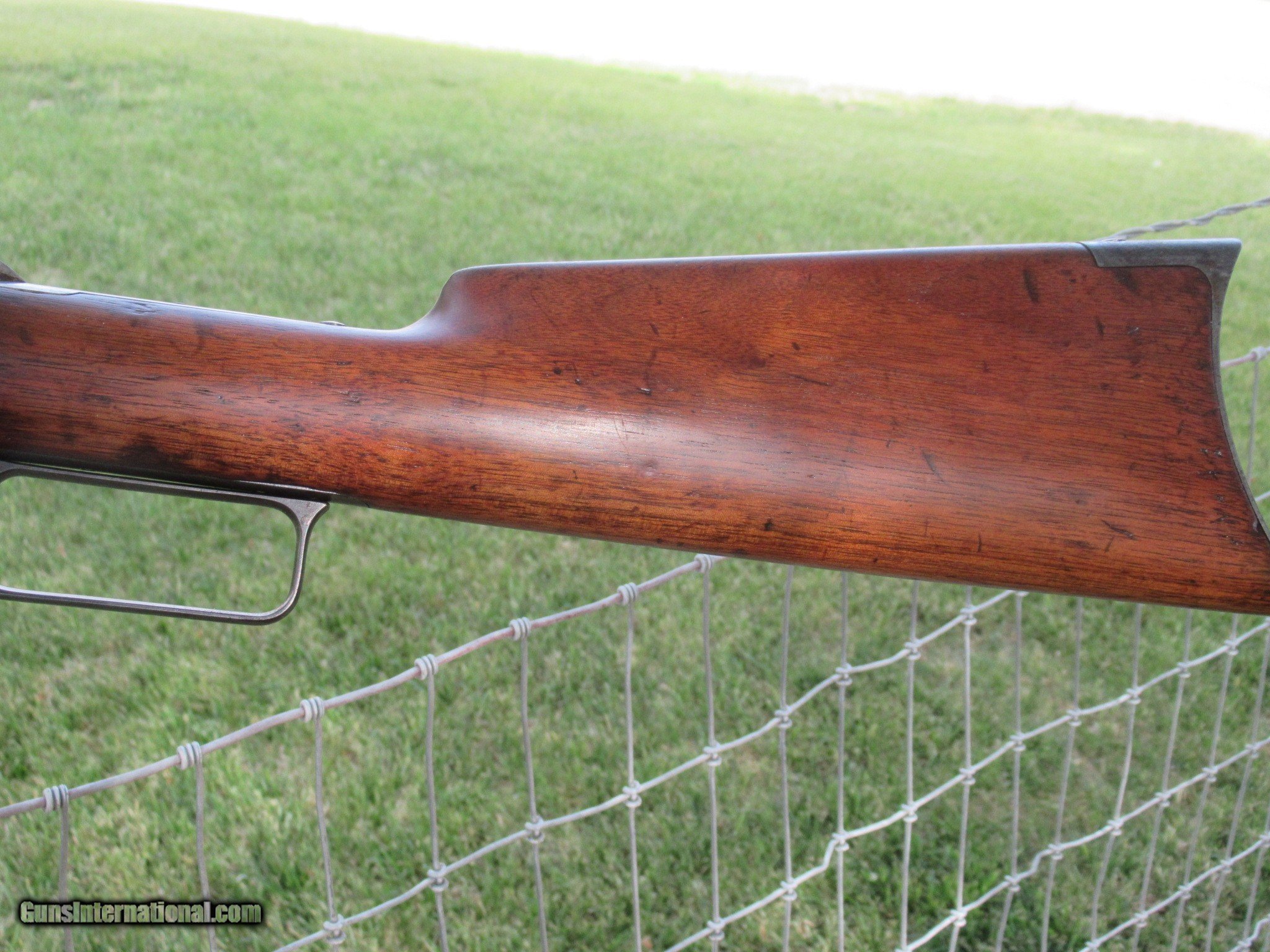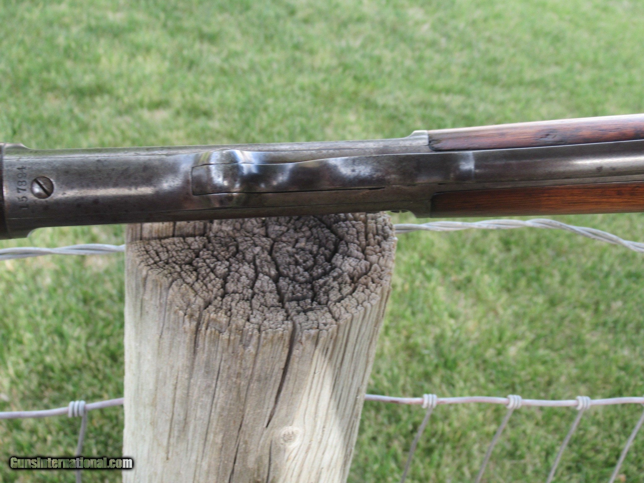 Description: For sale is an all original 1893 Marlin in .38-55. It has a 30" barrel with a full magazine. It has excellent rifling with no pitting or frosting. All the metal has a smooth finish with no rust or pitting. The barrel shows mostly blue turning dark with very little handling wear. "SPECIAL SMOKELESS STEEL" is marked on the barrel with "MARLIN SAFETY" marked on the top of the receiver. The upper tang is marked "MODEL 1893". This serial number shows as having been built in 1897 and no FFL is required. The action works flawlessly. There is a small bit of color case hardening on the hammer and behind the trigger. This has the original walnut stock and forend with some scuffs and scratchesa but has not been cleaned, sanded or varnished. It will make you a great addition to your collection as well as nice shooter with ammo still available. It will only increase in value as this type of Western rifle is becomming very hard to find in this condition. Please call Raff at 760 4977836 or email if you have any questions at all and Thank You for looking. LOWER PRICE! SOLD Antique: Yes Rifle Caliber: .38-55 Winchester Manufacturer: MARLIN Model: 1893 Serial Number: 157894 Barrel Length: 30 Condition: Fine Action: Lever Weight: 8 LBS Sights: BUCKHORN Manufacture Date: 1897 Item Location: Arizona |