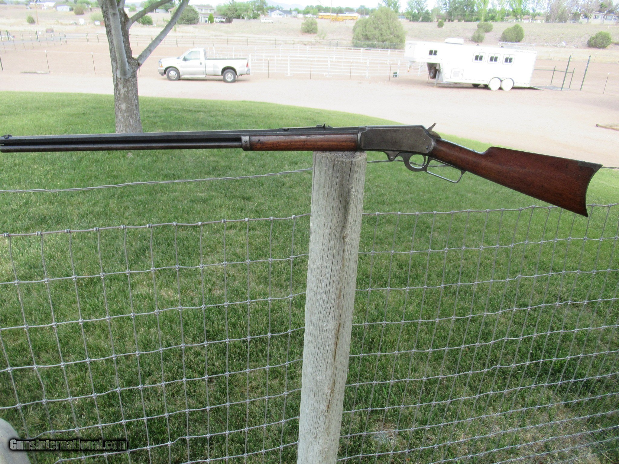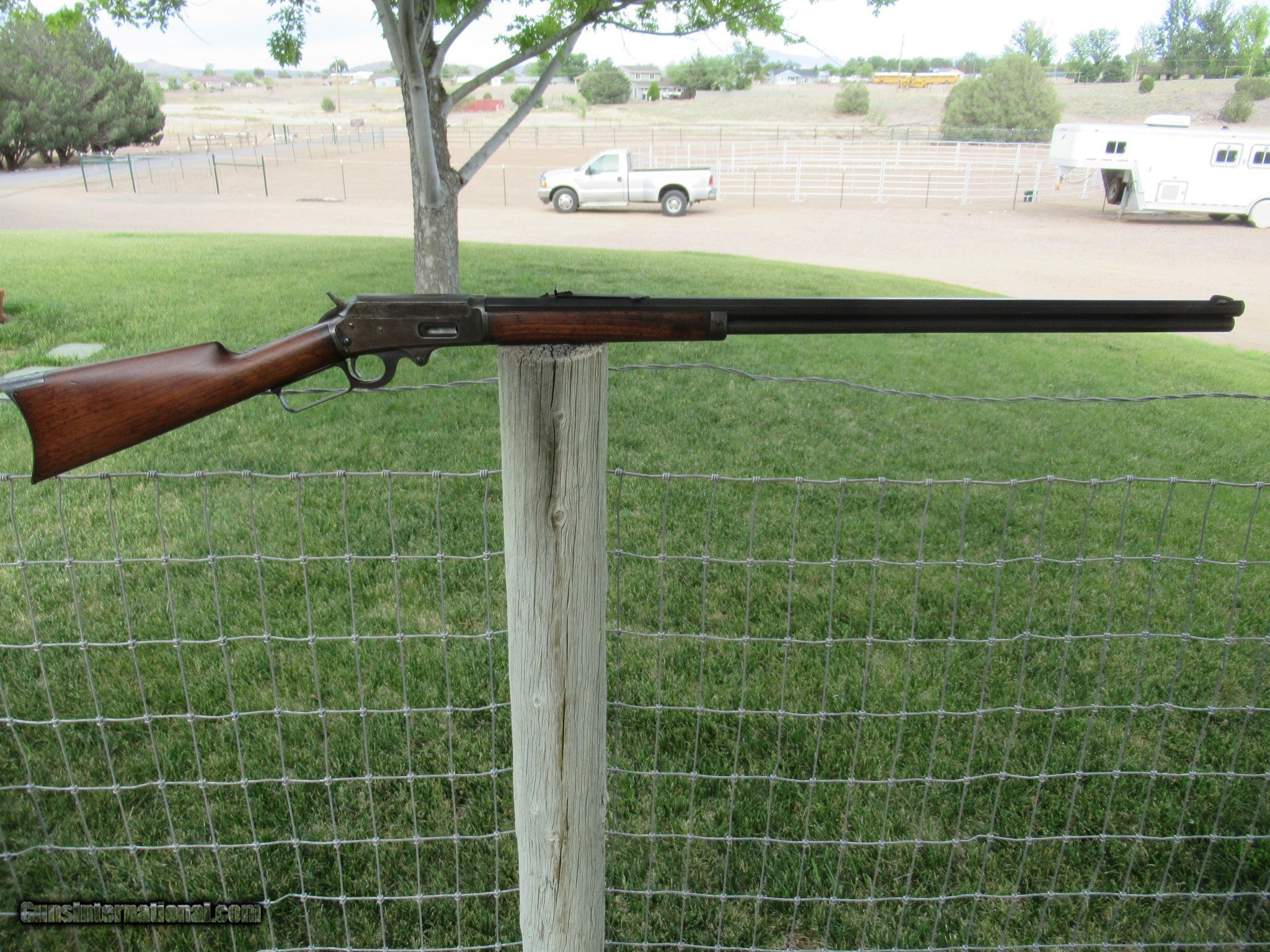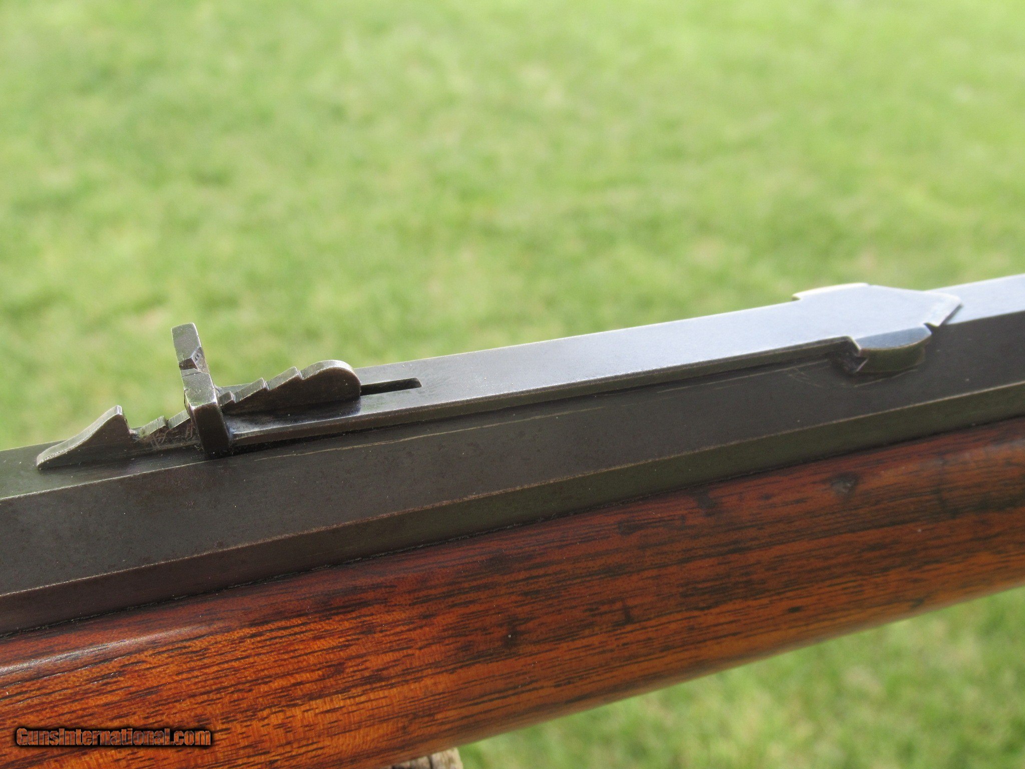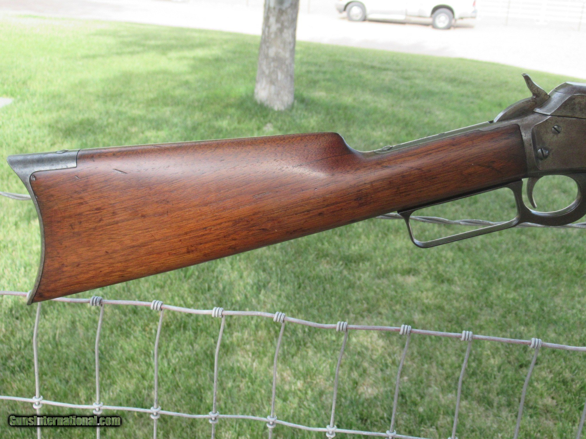Description: For sale is an all original 1893 Marlin in .38-55. It has a 30" barrel with a full magazine. It has excellent rifling with no pitting or frosting. All the metal has a smooth finish with no rust or pitting. The barrel shows mostly blue turning dark with very little handling wear. "SPECIAL SMOKELESS STEEL" is marked on the barrel with "MARLIN SAFETY" marked on the top of the receiver. The upper tang is marked "MODEL 1893". This serial number shows as having been built in 1897 and no FFL is required. The action works flawlessly. There is a small bit of color case hardening on the hammer and behind the trigger. This has the original walnut stock and forend with some scuffs and scratchesa but has not been cleaned, sanded or varnished. It will make you a great addition to your collection as well as nice shooter with ammo still available. It will only increase in value as this type of Western rifle is becomming very hard to find in this condition. Please call Raff at 760 4977836 or email if you have any questions at all and Thank You for looking. LOWER PRICE! SOLD Antique: Yes Rifle Caliber: .38-55 Winchester Manufacturer: MARLIN Model: 1893 Serial Number: 157894 Barrel Length: 30 Condition: Fine Action: Lever Weight: 8 LBS Sights: BUCKHORN Manufacture Date: 1897 Item Location: Arizona |