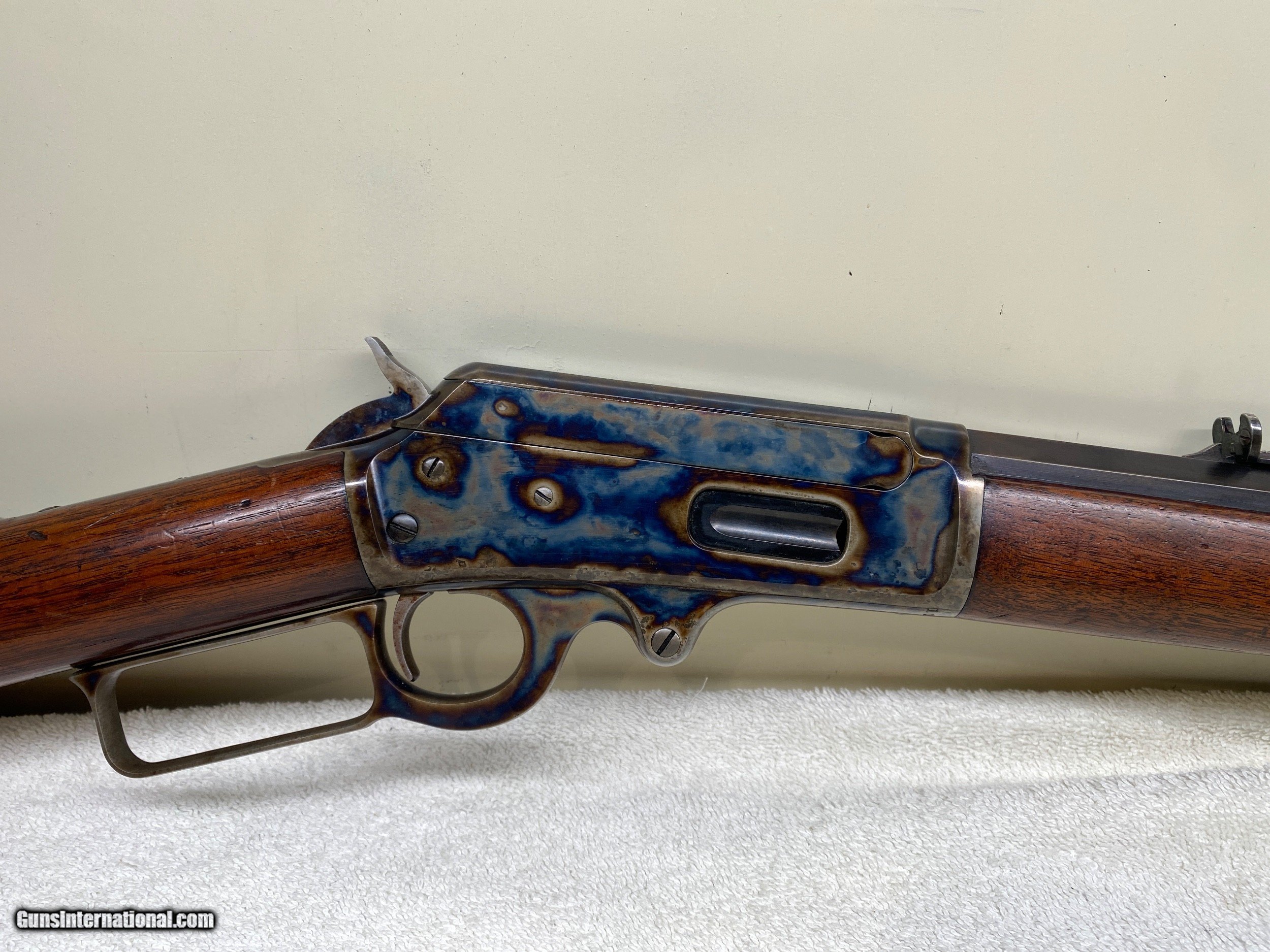 Description: SOLD Amazing condition Marlin Model 1893 made in 1894. Case colors have been professionally restored. The rest of the finishes are original and in great condition. I'd give the bore an 8 1/2 out of 10, which is almost unheard of in a 128 year old. Sights are original and period correct. The earliest 1893s did not have the "Black powder only" or the "Special smokeless steel" stamps on the barrel. They also did not have the "Model 1893" stamped on the tang. Not much more to say, the pictures will say the rest. Pre 1898 antique, so Check or MO,for $75.00 Priority, Insured shipping to your front door. (proof of age over 21 req.) SOLD Antique: Yes Rifle Caliber: .32-40 Winchester Manufacturer: Marlin Fire-Arms Co. Model: 1893 Serial Number: 106992 Barrel Length: 26 Bore: 32-40 Condition: excellent Metal Condition: excellent Wood Condition: excellent Bore Condition: excellent Barrel Type: Octagon Action: Lever Triggers: original Stock: original Butt Pad: Crecent Weight: 7# Sights: original Manufacture Date: 1894 Extras: New Case Colors Item Location: Northern New York |
