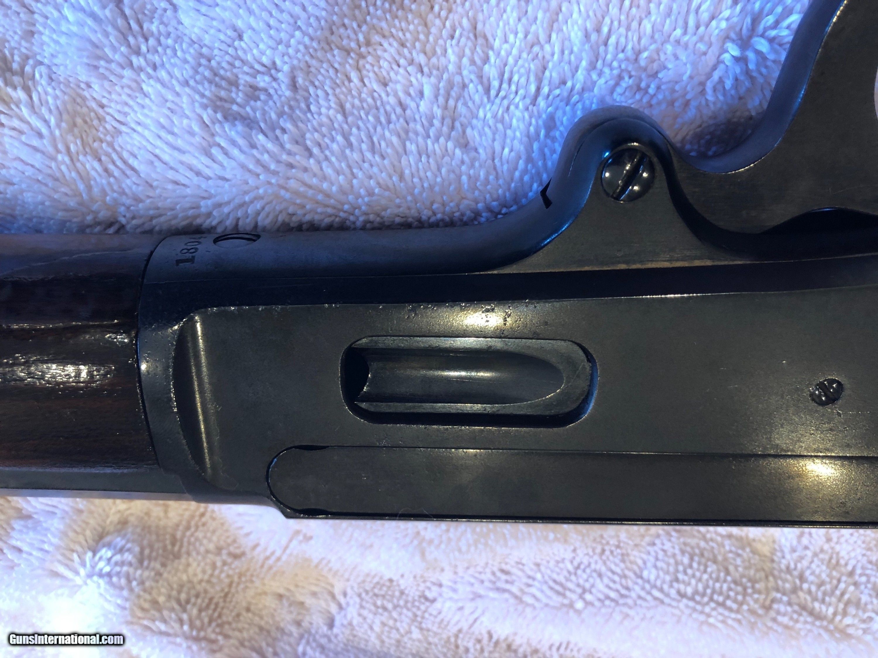 Description: MODEL 93 ALL BLUE MODEL IN VERY GOOD COND. WOOD HAS VERY NICE COLOR AND COND. FULL OCTAGON BARREL. HAS NICE STOCK CRESENT BUT PLATE. OVERALL COND IS VERY GOOD, BORE, STOCK, AND METAL. ONE SPOT OF PITTING ON RECIEVER, AND ONE REPAIR ON FOR ARM, SEE PICTURES. ALL ADDRESS MARKS ARE SHARP AND CLEAR. EARLY MAN. DATE FROM SERIAL # 1903 - 1905 THIS IS A VERY CLEAN, SMOOTH ACTION, GOOD LOOKING GUN THAT CAN BE SHOT OR NICE COLLECTOR. THIS GUN IS 120 YEARS OLD BUT DOESN'T LOOK TO HAVE BEEN SHOT MUCH OR ABUSED. THIS IS AN ESTATE SALE FOR A FRIEND AND I HAVE AUTHORITY TO MAKE SALE. E-MAIL OR CALL WITH QUESTIONS. BOB 714 863-2539 SOLD Curio/Relic: Yes Rifle Caliber: .38-55 Winchester Manufacturer: MARLIN Model: 1893 Serial Number: 180461 Barrel Length: 26 Condition: VERY GOOD Metal Condition: VERY GOOD Wood Condition: VERY GOOD Bore Condition: VERY GOOD Sights: Original Manufacture Date: APROX. 1900-1905 |