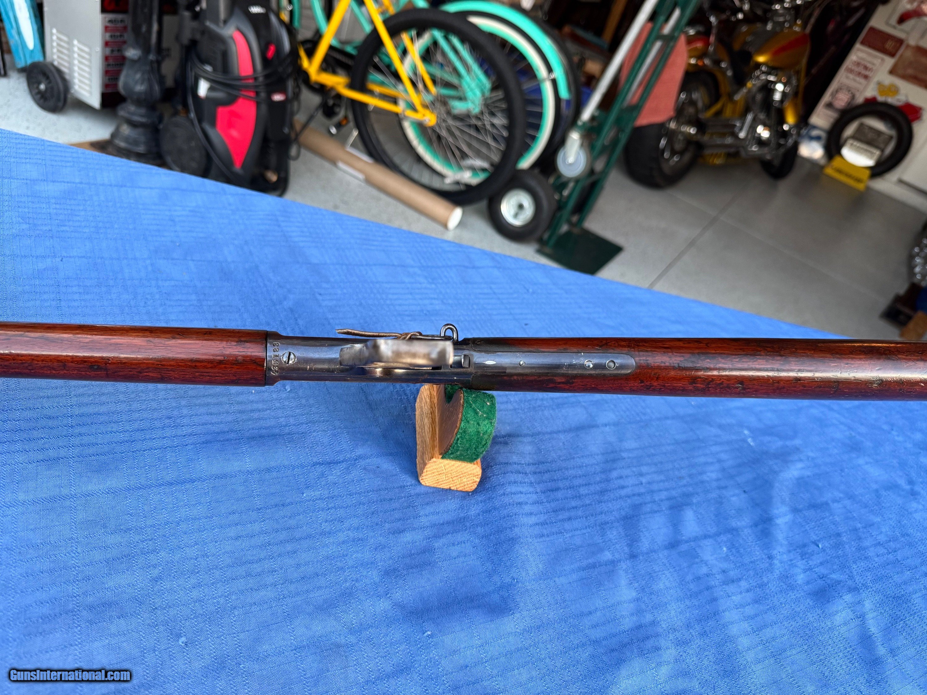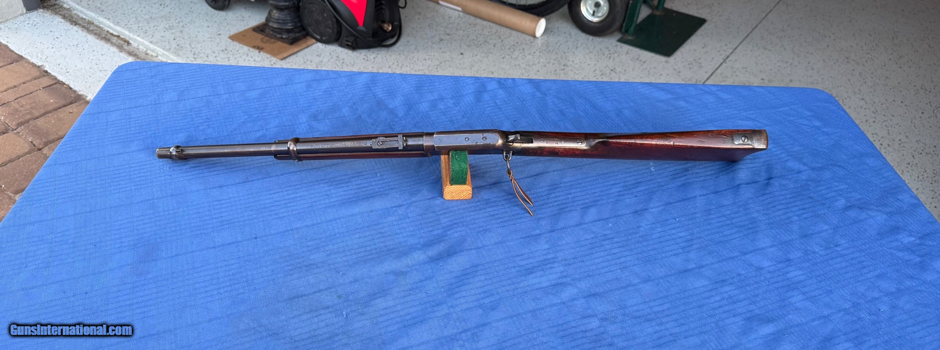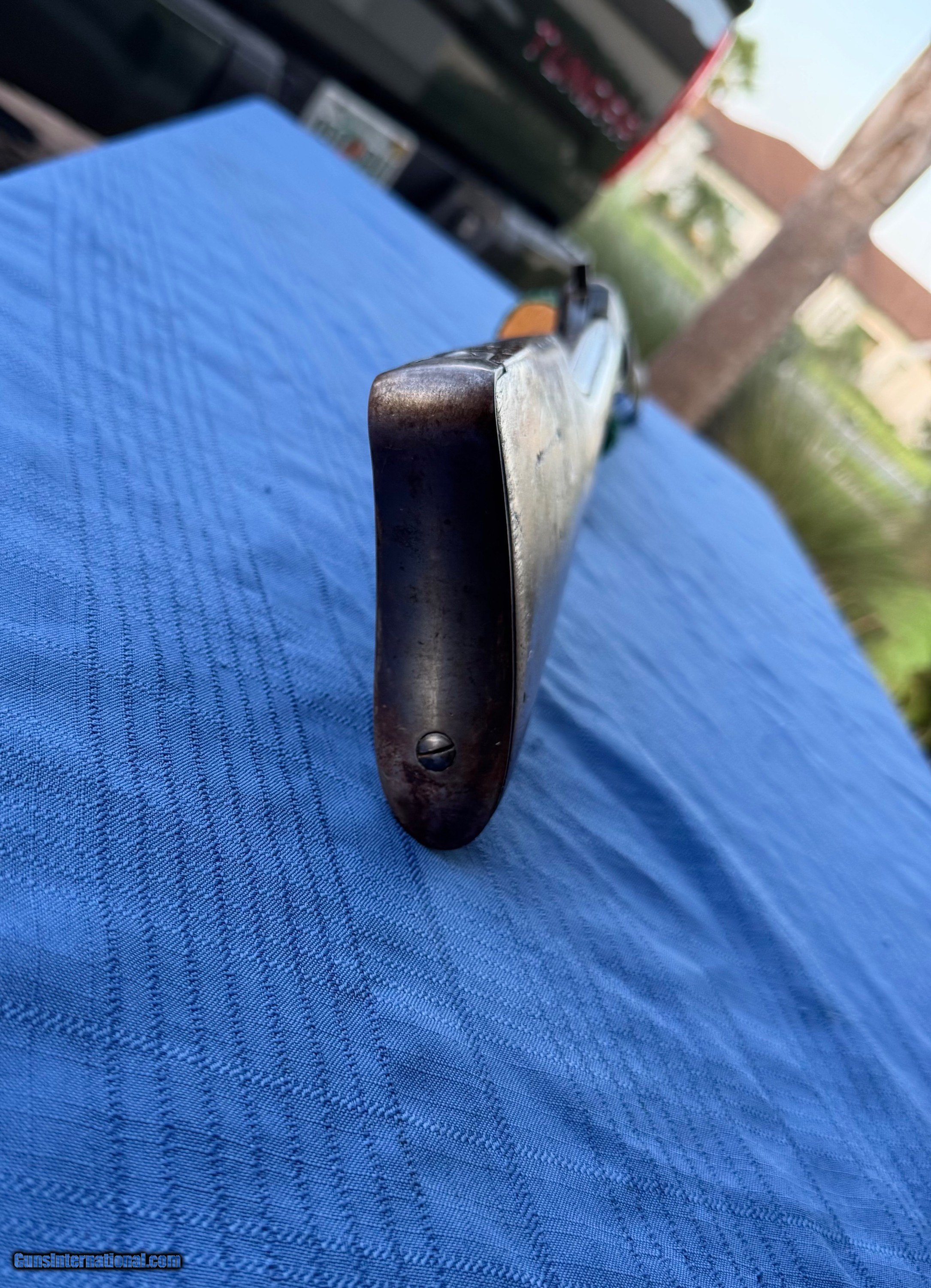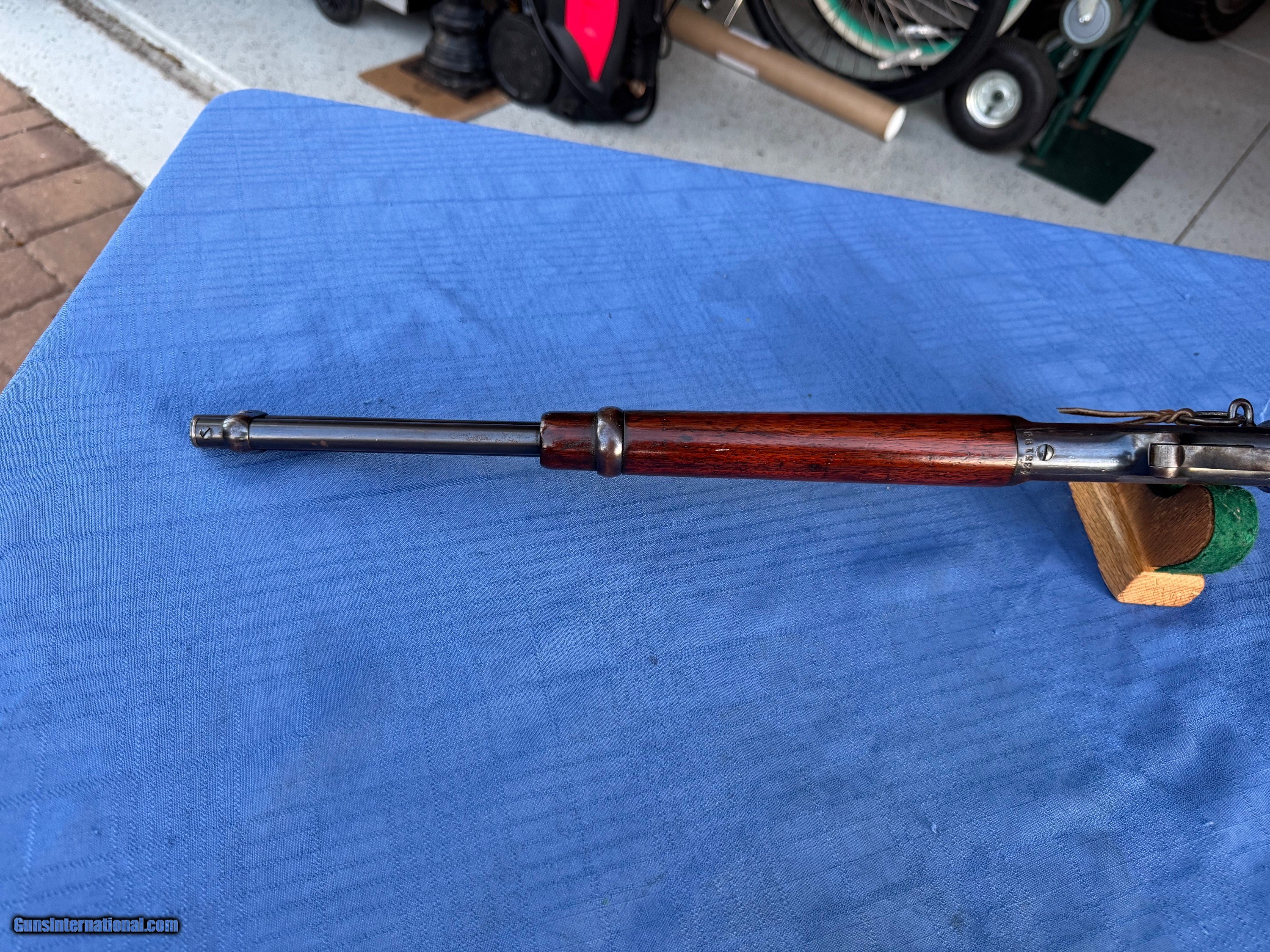 Description: Here's a Excellent Example of a Marlin model 1894 15" Trapper! Serial number 435183. 32-20 cal. This was a Popular Round for trappers back in the day !!One of the Rarest of all trappers Model 1894 Marlin . Gun has most all of its original bright blue finish still remaining. With handling marks. Original walnut stocks are in excellent condition in-touched with some wear from being carried . Bore and mechanics are in excellent condition! Bright shootble bore ! Gun is in excellent working condition! Looks like the gun was carried but not shot much inside is beautiful. Gun locks up tight ! Comes with original ATF paperwork . Super nice Marlin 1894 Trapper . SOLD Antique: Yes Rifle Caliber: .32-20 Winchester Manufacturer: Marlin Model: 1894 Trapper Serial Number: 435183 Barrel Length: 15” Condition: Excellent |