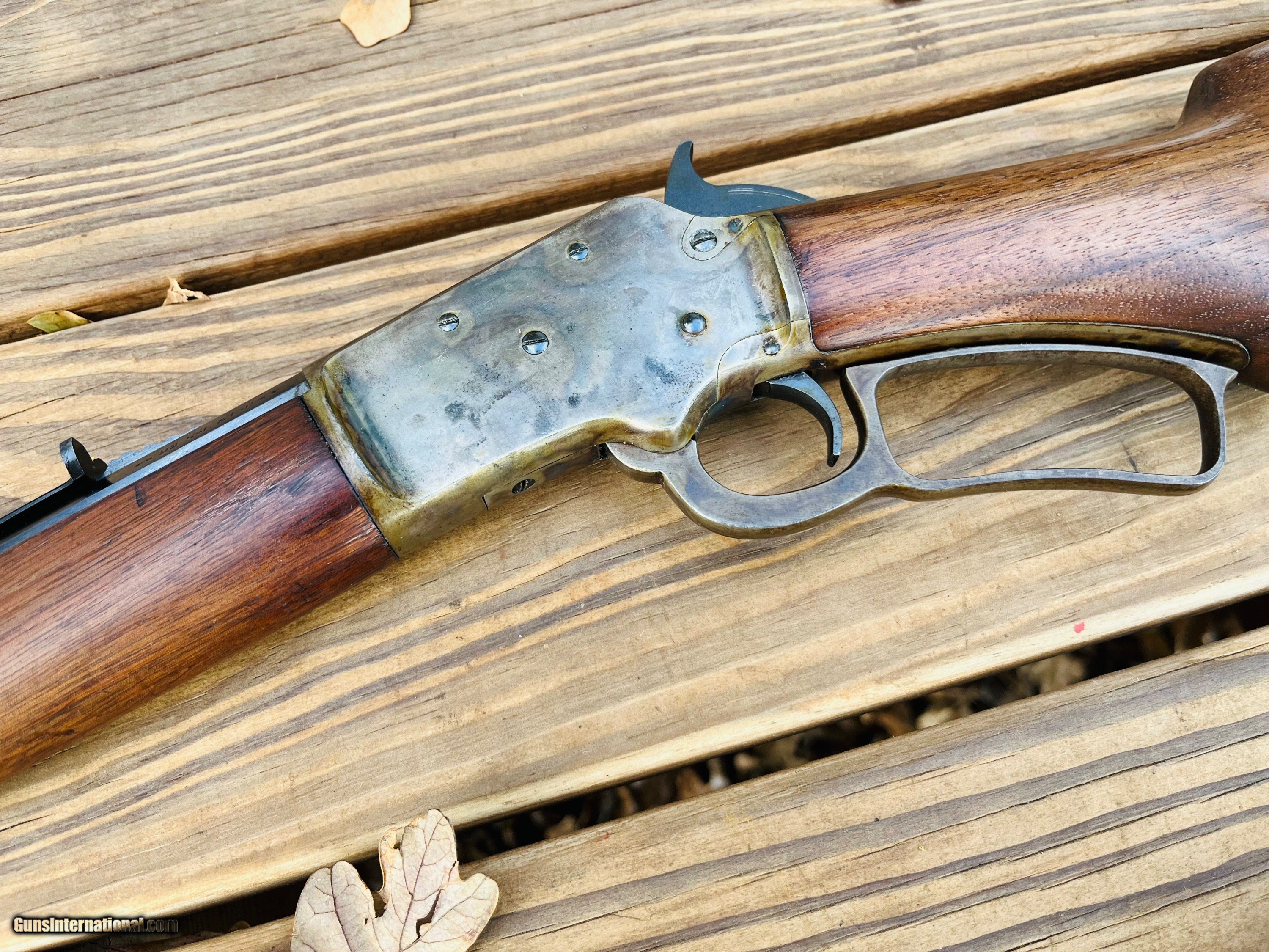 Description: Very early 4 digit serial number Marlin Model 39. The rifle shows very fine on all surfaces. Case color muted on left side but visible. Color on right side is magnificent. Rifle has excellent bore and all mechanical aspects are in perfect working order. Wood to metal fit is very good. The pictures truly don't do this rifle justice it is really beautiful in person. Please see images for your own evaluation. Feel free to call with further questions. Thank you for looking! ** Shipping is included for asking price ** SOLD Rifle Caliber: .22 Long Rifle Manufacturer: Marlin Model: 39 Serial Number: 9176 |