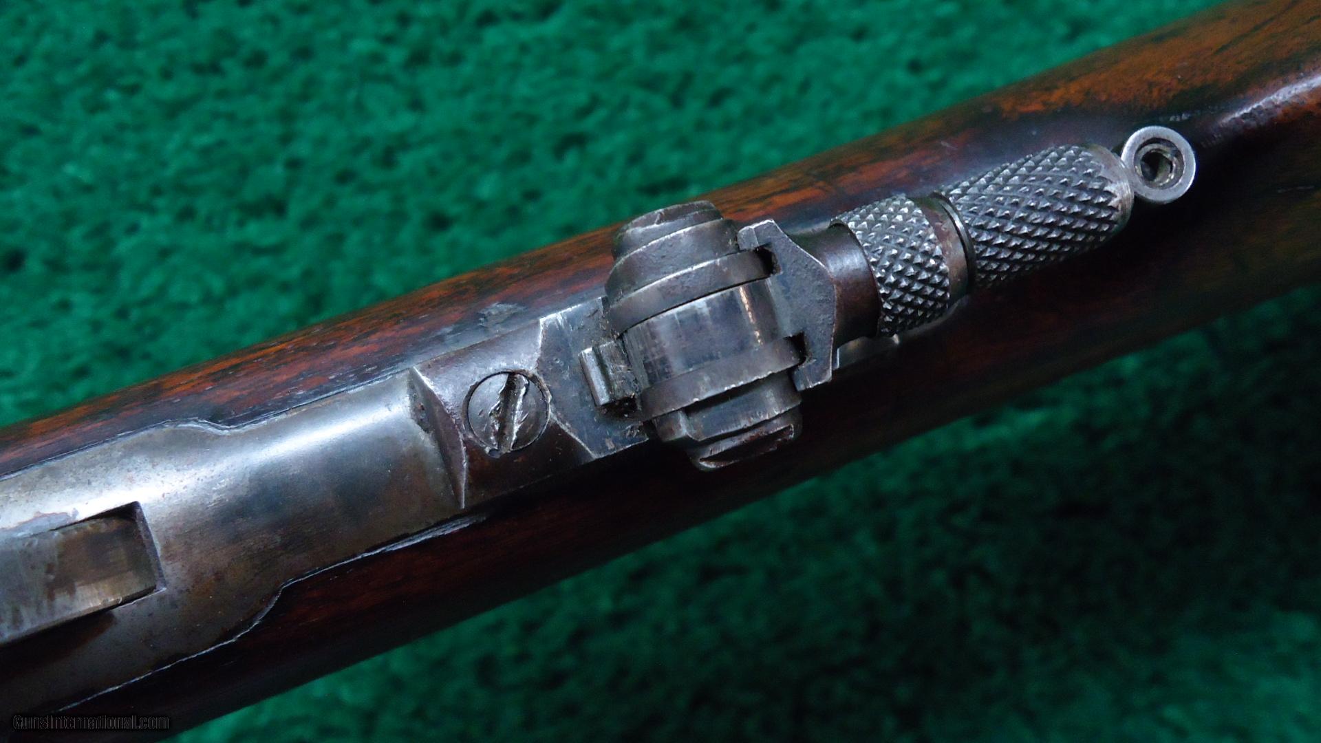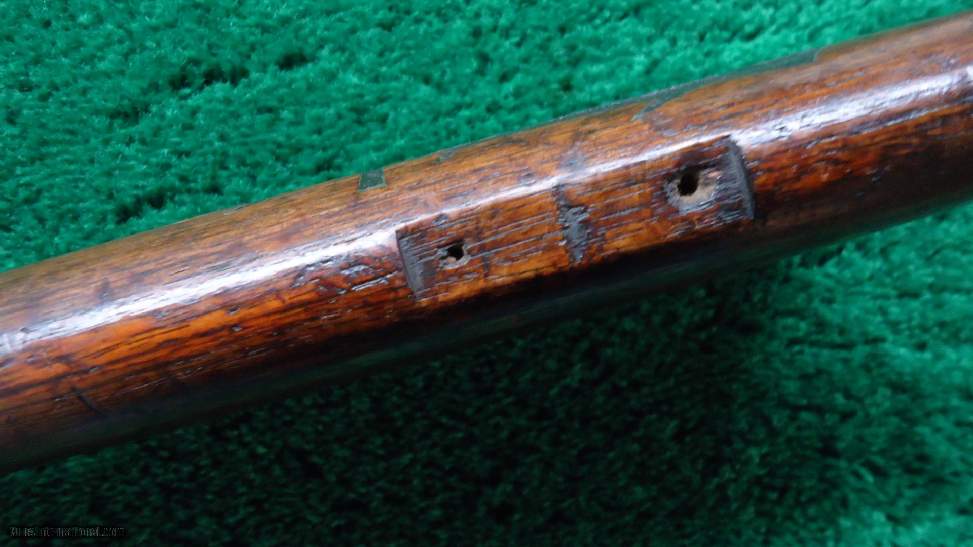 Description: Cal 30-30. Takedown frame and special order 26" half oct bbl and half length mag tube. Marbles buckhorn rear sight, of the period blade front sight and folding tang sight. Wood has a carving of a couple of deer running across a field. A little crude. Has a couple holes in the bottom for sling swivels and also in the forearm cap. Rifle style buttplate. Considerable amount of varnish on the wood. Bbl and mag retain about 75% blue turning brown. Receiver is mostly a plum color. Sharp markings and good corners. Nice little gun. Leroy Merz Antique Firearms specializes in antique and vintage Winchesters and other fine American firearms. Since 1965 Mr. Merz has taken part in the world of firearms and has been a contributor to many well known reference books. Just recently we mailed the 126th edition of our privately-published catalog. We have hundreds of additional guns in every price range at our home online. Search for Merz Antiques in google. SOLD Antique: Yes |