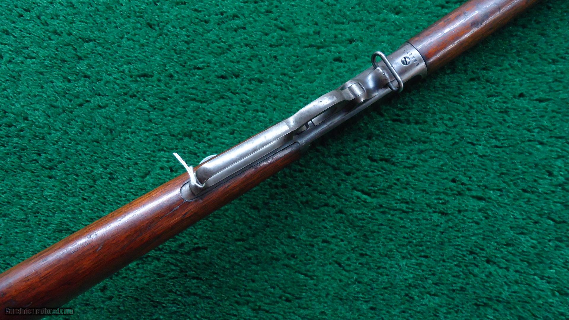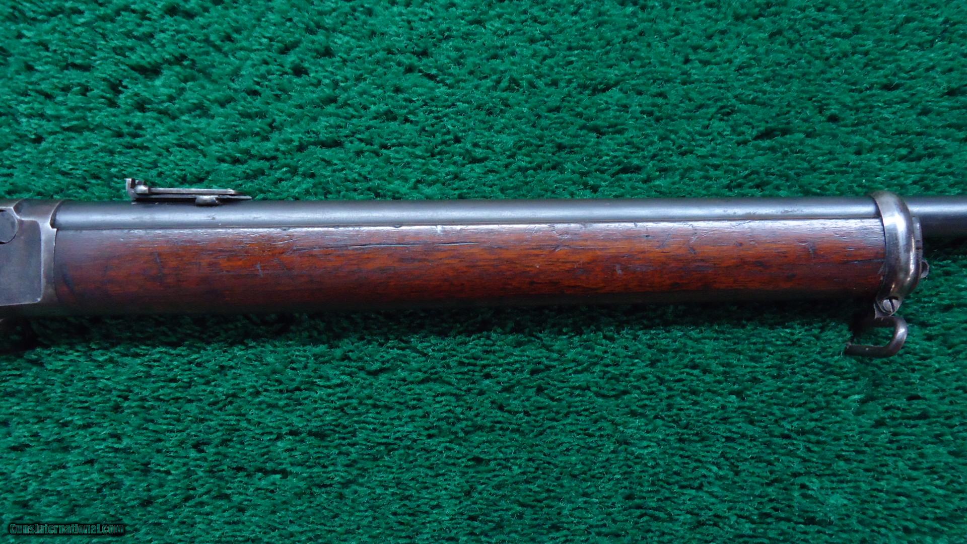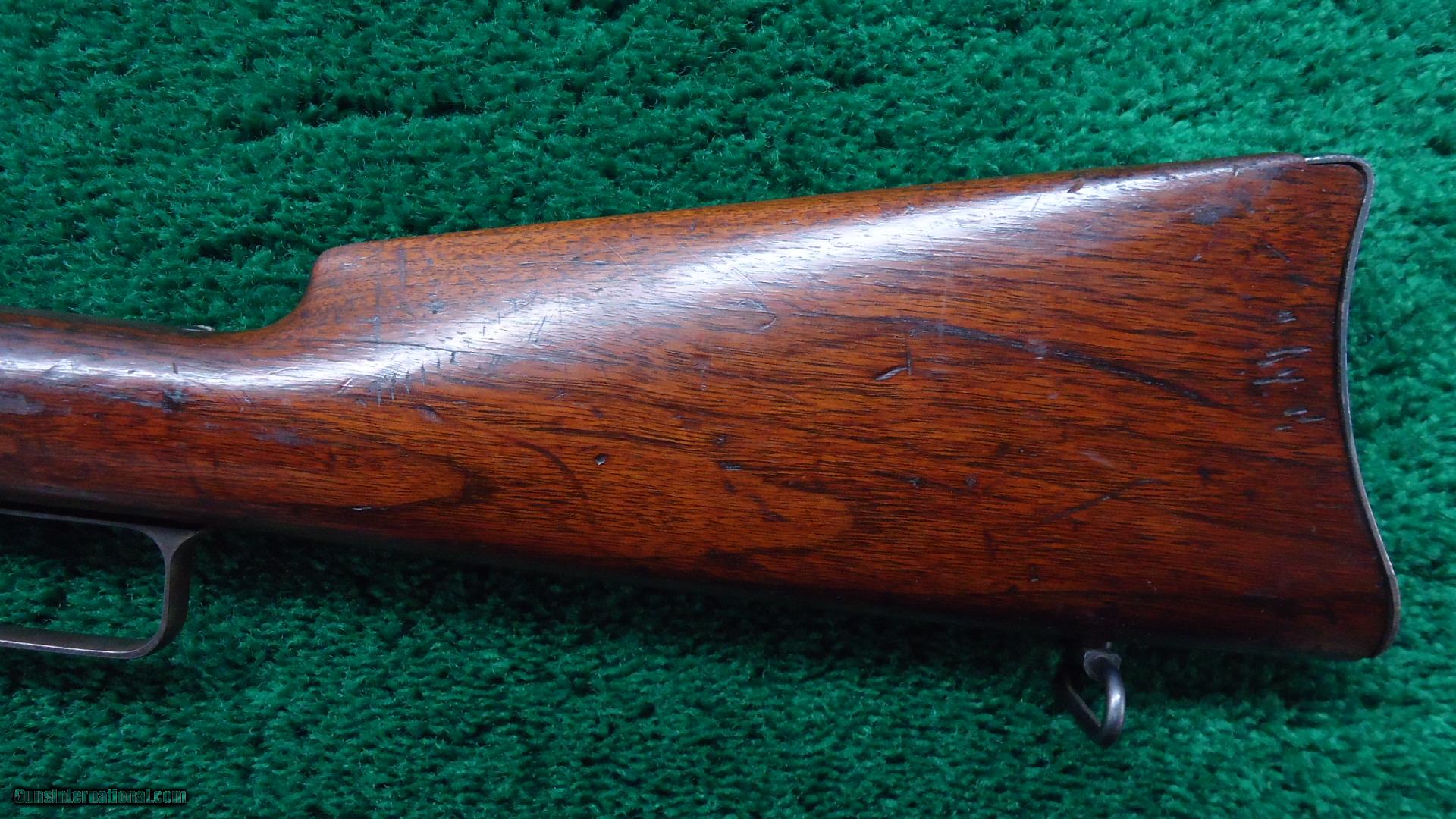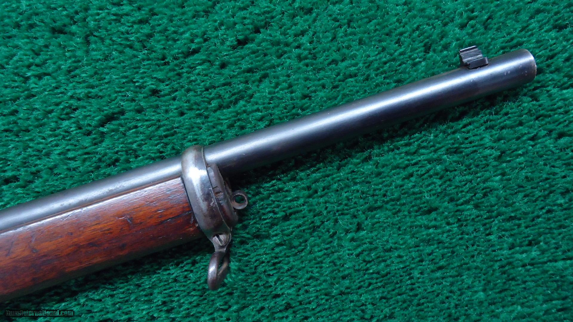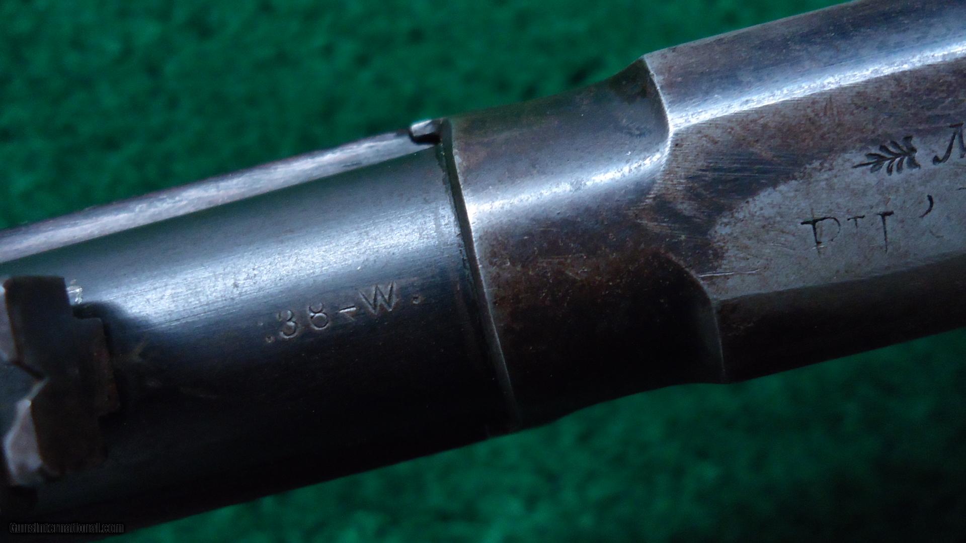 Description: Bbl has been cut to 20" and the mag tube is about 14". Front half of the stock has been cut. Orig buttstock has a screw going through one side but retains most varnish. Musket style buttplate as well as sling swivels. Bbl contains 85-90% dull blue. Receiver has about 60% blue. Carbine ladder rear sight. Blade front sight. Cal 38-40. Fairly scarce gun. Too bad someone cut it off. Leroy Merz Antique Firearms specializes in antique and vintage Winchesters and other fine American firearms. Since 1965 Mr. Merz has taken part in the world of firearms and has been a contributor to many well known reference books. Just recently we mailed the 126th edition of our privately-published catalog. We have hundreds of additional guns in every price range at our home online. Search for Merz Antiques in google. SOLD Antique: Yes |