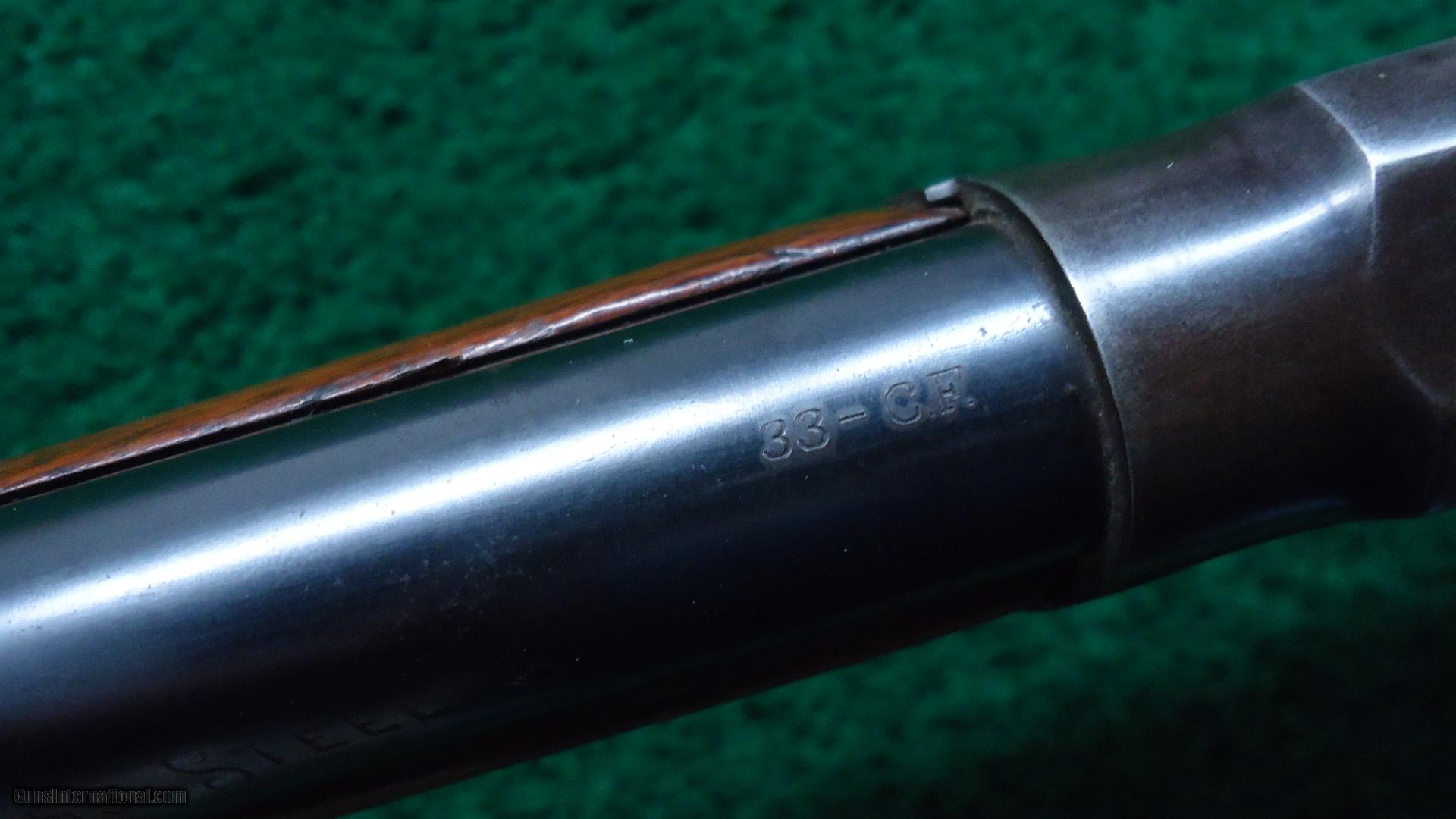 Description: In cal 33 WCF. Has 24" round tapered bbl and half length mag tube. Originally was cal 38-56 with 26" bbl. Lyman blade front sight. Of the period sporting rear sight. Wood has been very lightly cleaned and has a light coat of varnish added. Rifle style buttplate. Bbl and mag retain 75% bright blue. Receiver is mostly a plum/brown with no pitting. Sound solid little gun. Antique serial range 95's are desirable and rather hard to find. Leroy Merz Antique Firearms specializes in antique and vintage Winchesters and other fine American firearms. Since 1965 Mr. Merz has taken part in the world of firearms and has been a contributor to many well known reference books. Just recently we mailed the 126th edition of our privately-published catalog. We have hundreds of additional guns in every price range at our home online. Search for Merz Antiques in google. SOLD Antique: Yes |