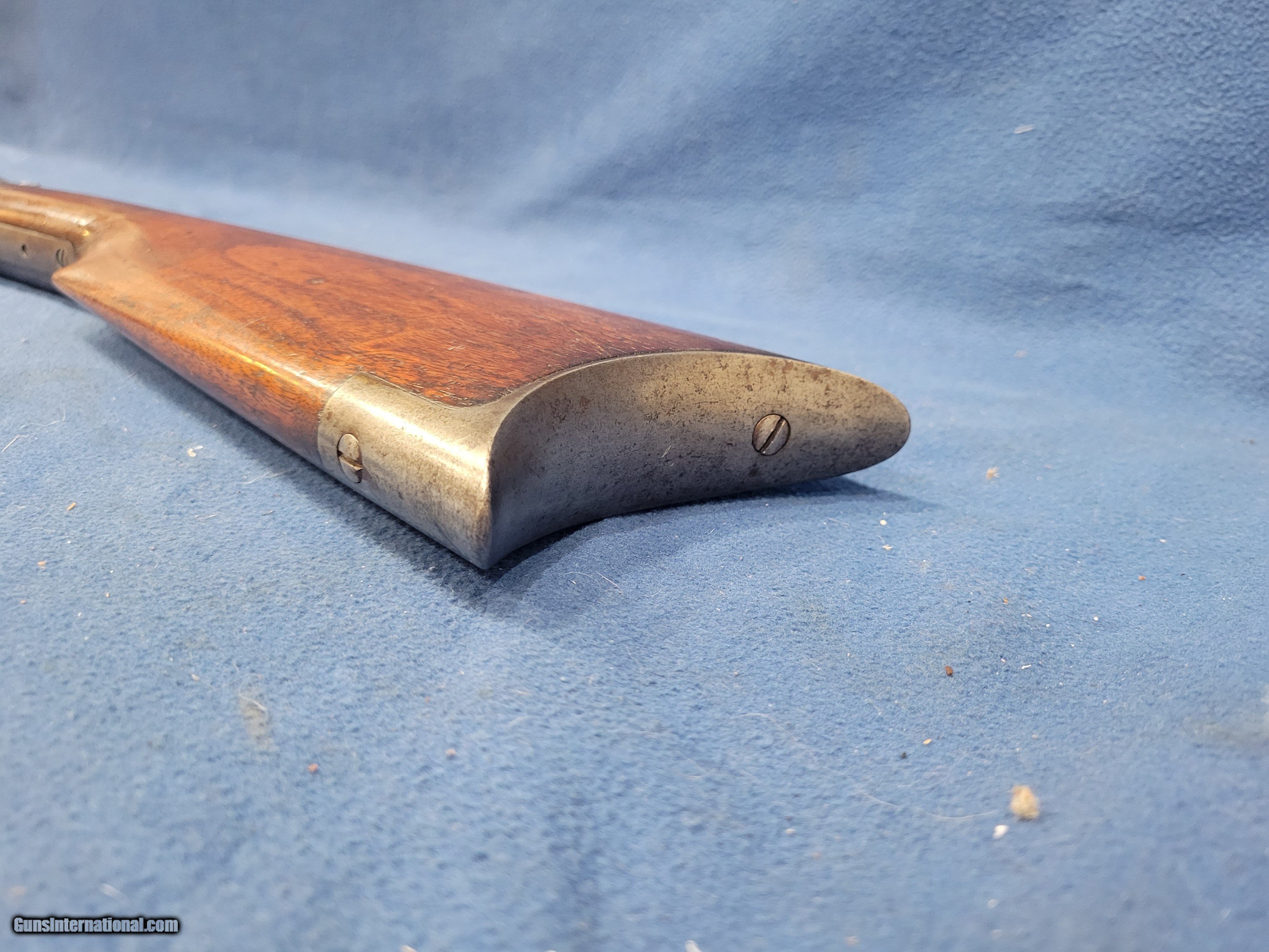 Description: INV. 11978 RARE, MARLIN MDL. 1889, CAL .38-40, SER. 56812, SPECIAL ORDER ROUND 24" BARREL, MFG. 1891. THIS VERY SHORT-LIVED MODEL HAS RETAINED ABOUT 80-85% OF THE ORIGINAL FACTORY BLUE, THE LOSS IS PRIMARILY DUE TO FADING AND SOME VERY SLIGHT RUB MARKS, AND THE CASE-COLORED RECEIVER HAS FADDED TO A SOFT SILVER. THERE IS ACTUALLY VERY LITTLE EVIDENCE OF RUST ANYWHERE ON THE GUN. THERE ARE NO SCRATCHES OR RUB MARKS EITHER. THE WOODEN PARTS SEEM TO HAVE RETAINED ABOUT 85% OF THE ORIGINAL LACQUER THERE IS SOME LOSS AT THE PISTOL GRIP. THE RE A FEW LIGHT SCATTERED DINGS BUT CERTAINLY LESS THAN EXPECTED FROM A 132-YEAR-OLD" CABINET QUEEN". ALL PARTS ARE ORIGINAL TO THE GUN, .THE LOADINDING GATE, BOLT RAILS, AND FEED RAMP SHOW ONLY MODEST USE. THE BORE SHOWS SOME AGE, HOWEVER, IT IS QUITE BRIGHT WITH WELL-DEFINED RIFLING AND SOME SCATTERED FROST..A CURSURY EXAMINATION INDICATED THE GUN OPERATES CORRECTLY. FOR THE COLLECTOR THIS MODEL IS QUITE RARE, PARTICULARLY IN .38-40 CAL. AND CERTAINLY THE SPECIAL ORDER ROUND BARREL. INVESTOR PRICED AT.... $1395.*** ***100.% OF THE GUN'S PRICE IS SATISFACTION GUARANTEED. To purchase this firearm or if you want to request more information contact us at: Email ckguns[at]ymail[dot]com Phone 201-512-0002 Cell 201-575-6838 FAX 201-215-4759 We accept most major credit cards. Prices shown are Discounted 3% for Cash or Check. The buyer must be familiar with all the laws governing the purchase and the ownership of firearms in their own city and state. The Yankee Armorer, Inc is not responsible for any failure to comply with or observe these laws. The Yankee Armorer, Inc will only ship after full payment and receipt of all required documents. Shipping: Add $35.00 for handguns, $45.00 for long guns. New Jersey buyers are subject to a 7% sales tax. The Yankee Armorer, Inc offers a 3 day inspection period with full refund upon return of intact firearm and in the original condition. The Yankee Armorer, Inc offers a no interest lay away program - 25% down; 25% in 30 days; 25% in 60 days; and full payment in 90 days. Any violation of this policy is subject to restocking and forfeiture of all payments. Any variation from this policy must be agreed to in advance. Unshipped Cancelled sales are subject to a 20% restocking fee. Be advised that all firearms sold by The Yankee Armorer, Inc. or the Gun Exchange, LLC (SELLER) are sold as collector’s items. They have not been fired or tested for safety and must be examined by a license gunsmith prior to use. By purchasing any item from the (SELLER), you are agreeing to hold the (SELLER) free from any damages or lawsuits of any nature. Any item left for transfer or storage will be charged to $25.00 per month, per item from the day of its receipt. Any variation from this policy must be agreed to in advance. Store hours 10:00 am to 5:00 pm Tuesday -Saturday. It's always best to call for appointment. Store 201-512-0002, cell 201-575-6838. SOLD |