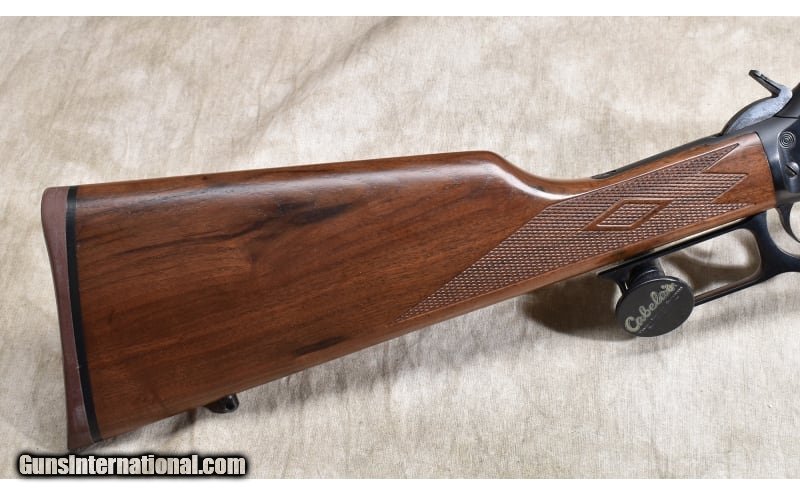 Description: This little carbine features an easy handling 35-1/2 inch overall length and is suitable for any pest control or close quarters deer hunting. It features a figured walnut stock, matched fore end, "iron" sights, and scope ready. The checkering is sharp, and it doesn't appear to have been used much, if at all. .357 Mag/.38 spl SOLD Chambers: 9 rounds Metal Condition: Excellent. Wood Condition: Excellent. Bore Condition: Shiny and bright with good rifling. Barrels: 18-1/2 inch Triggers: Factory trigger. Stock Dimensions: 13-1/2 inch LOP. Fore End: Well-matched checkered walnut. Butt Pad: Rubber pad. Weight: 6 lb - 8 oz. Sights: "Hooded bead and semi-buckhorn open sights, drilled and tapped for your choice of scope. Item Location: Lacey, WA |
