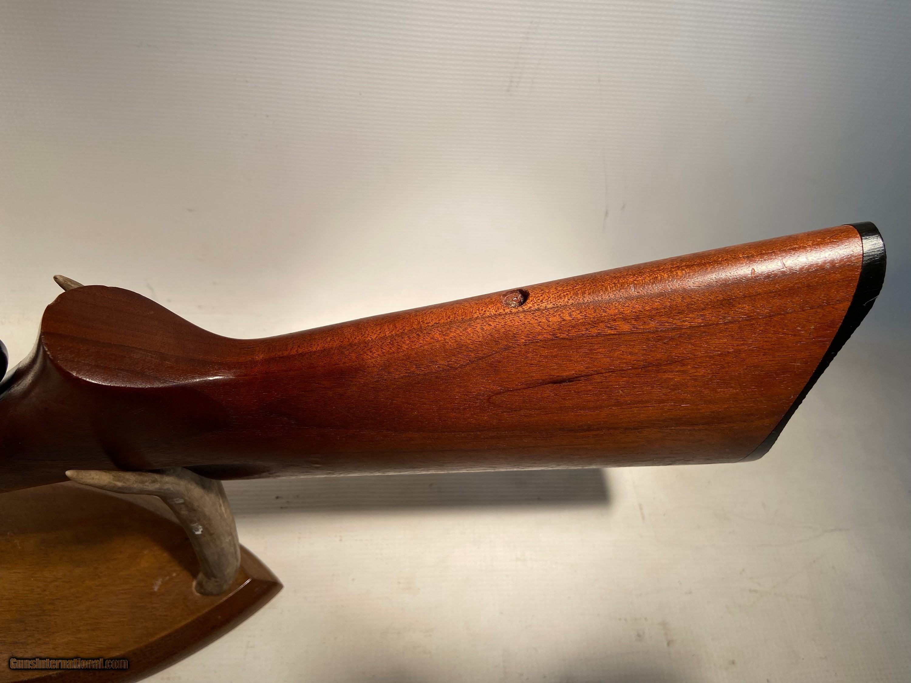 Description: Here we have a 1949 Marlin 336 RC Carbinbe chambered in 30/30. This rifle is JM Stamped and features Waffel Top reciever, Perch Belly forend and was the 1st Model Manufactured! This gun is in 95% overall! The stock has a few markings on it (95% +/-) and is missing on piece on the underside of the stock. The reciever/barrel have a few wear marks but is in 95% +/- condition. The bore is in perfect condition (95% +)! This gun also includes all the paperwork sent directly from Marlin themselves. This is a very rare find! If you have any questions, please call us before purchasing. SOLD Rifle Caliber: .30-30 Winchester Manufacturer: Marlin Model: 336 RC Carbine Serial Number: G6880 Barrel Length: 20 Condition: 95% Metal Condition: 95% +/- Wood Condition: 95% +/- Bore Condition: 95% + Action: Lever Action Manufacture Date: 1949 Extras: Paperwork Included |