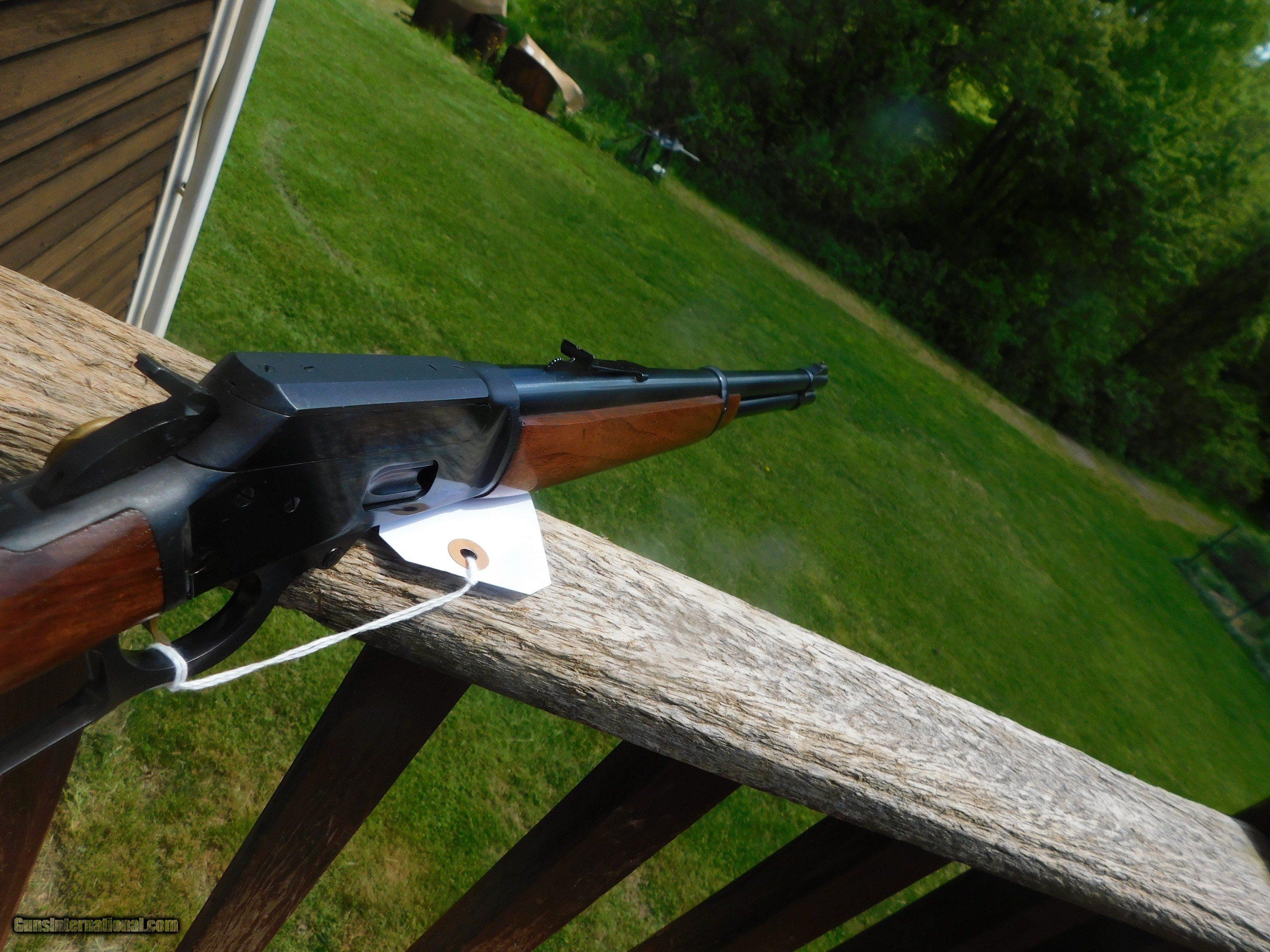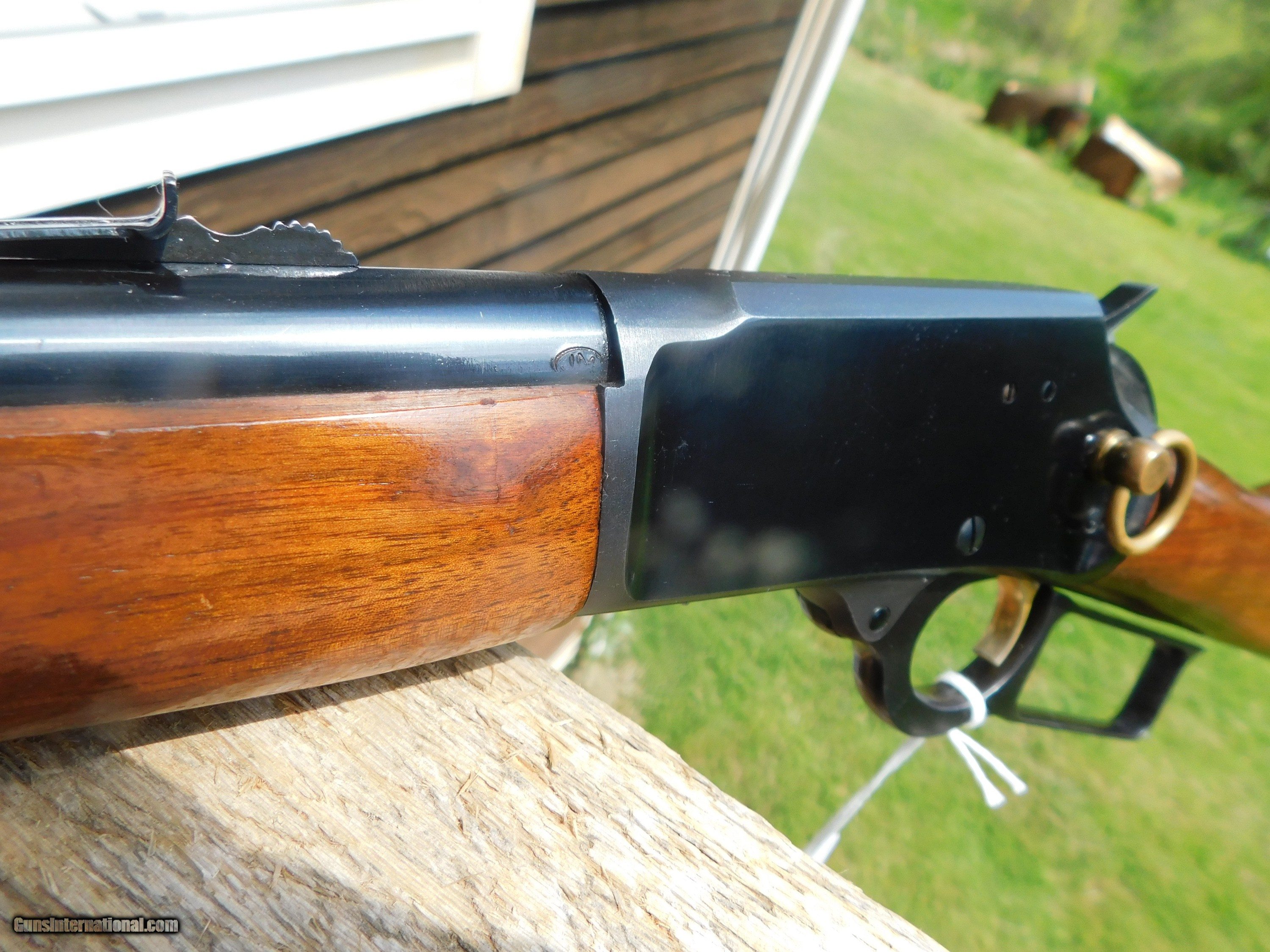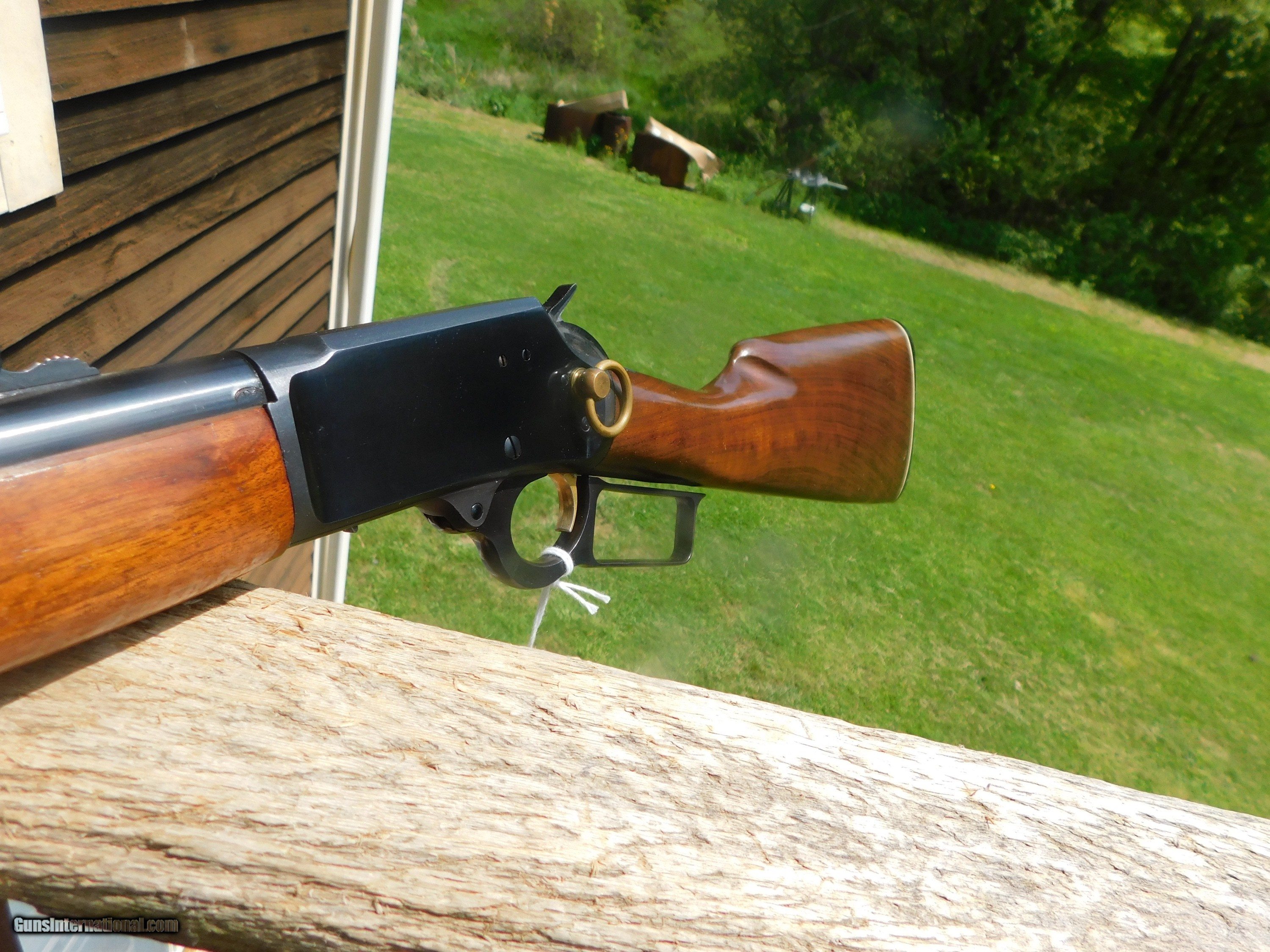 Description: SALE PENDING TOM K TX 5/26 Not often found is this very nice 1971 1894 JM Texan Squre Lever Saddle Ring Carbine Chambered in 44 mag. This gun is in exceptional BUT NOT new condition...with a few handling marks on the stocks . Metal very nearly perfect all over. No chips ,no crackes almost no finish loss...even the Marlin Bullseye is still there and it hans not even been drilled for sling swivels....JUST A GREAT GUN. Fun to hunt (with modern 44 mag ammo a proven deer / bear woods carbine and can plnk with 44 sp lighter loads. It does not appear a scope has ever been mounted....We hae many excellent used scopes including period correct models in various magnifications (inquire) If you like this little Marlin check out someo of our others including the Mountie in 35 Rem as well as a Winchester 94 AE Trapper in 44 mag also. Shipping is $ 59.00 IF IT DOES NOT SAY ."SALE PENDING, UNDER DEPOSIT or ON HOLD"...IT IS AVAILABLE. WE DO NOT REPLY TO INQUIRIES THAT SAY "INTERESTED IN THIS GUN" OR "IS IT AVAILABLE" IF YOU WOULD LIKE TO BUY THIS OR ANY OF OUR GUNS WE SUGGEST YOU PHONE US; WE ARE OFTEN AVAIALABLE LONG HOURS. IF YOU ARE INTERSTED IN A GUN THAT IS UNDER DEPOSIT AND WOULD LIKE TO BE NOTIFIED IF A SIMILAR GUN COMES IN DROP US A LINE AND WE WILL MAKE EFFORTS TO CONTACT YOU WHEN ONE DOES COME IN. WE HAVE OVER 2000 SALES ON ALL SITES WITH AN A+ RATING ON ALL WE ALSO KEEP AN INVENTORY OF OLDER PERIOD CORRECT SCOPES; CALL WITH NEEDS WE MOSTLY PICK VERY CLEAN AND LIGHLTY USED GUNS. WE ARE HAPPY TO TAKE CONSIGNMENT GUNS AND COLLECTIONS OR WILL BUY YOURS OUTRIGHT. WE SOMETIMES ARE EMPLOYED FOR ESTATE PURPOSES AND VALUATIONS. AT THIS TIME WE ARE ONLY ACCEPTING US POSTAL MONEY ORDERS OR BANK CHECKS FOR PAYMENT IT IS THE BUYERS RESPONSIBILITY TO GET US A COPY OF YOUR RECEIVING FFL'S LIC AND A COPY OF YOUR PHOTO ID BEFORE THE GUN SHIPS YOU MUST CALL OR CONTACT YOUR FFL.WE DO NOT CALL FOR YOU UNLESS THEY RQUIRE IT. LAYAWAY PURCHASES NOT COMPLETED ON ANY RETURNED ITEM UNLESS NOT AS DESCRIBED OR DAMAGED ARE SUBJECT TO A 10% RELISTING/RESTOCKING FEE AND MUST BE RETURNED WITH NO NEW MARKS OR SCRATCHES, SENT BACK INSURED, PRIORITY SIGNATURE REQUIRED. ALL INFORMATION CONTAINED HEREIN IS BELIEVED TO BE ACCURATE BUT IS NOT GUARANTEED. WITH ANY OLDER OR USED GUN IT SHOULD BE INSPECTED BY A GUNSMITH PRIOR TO SHOOTING SOLD |
