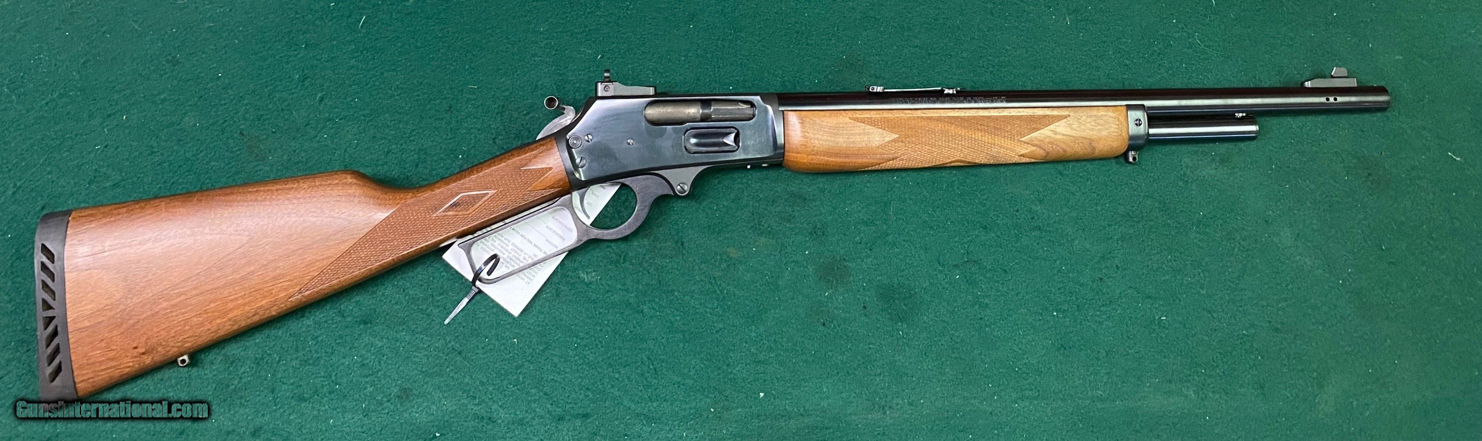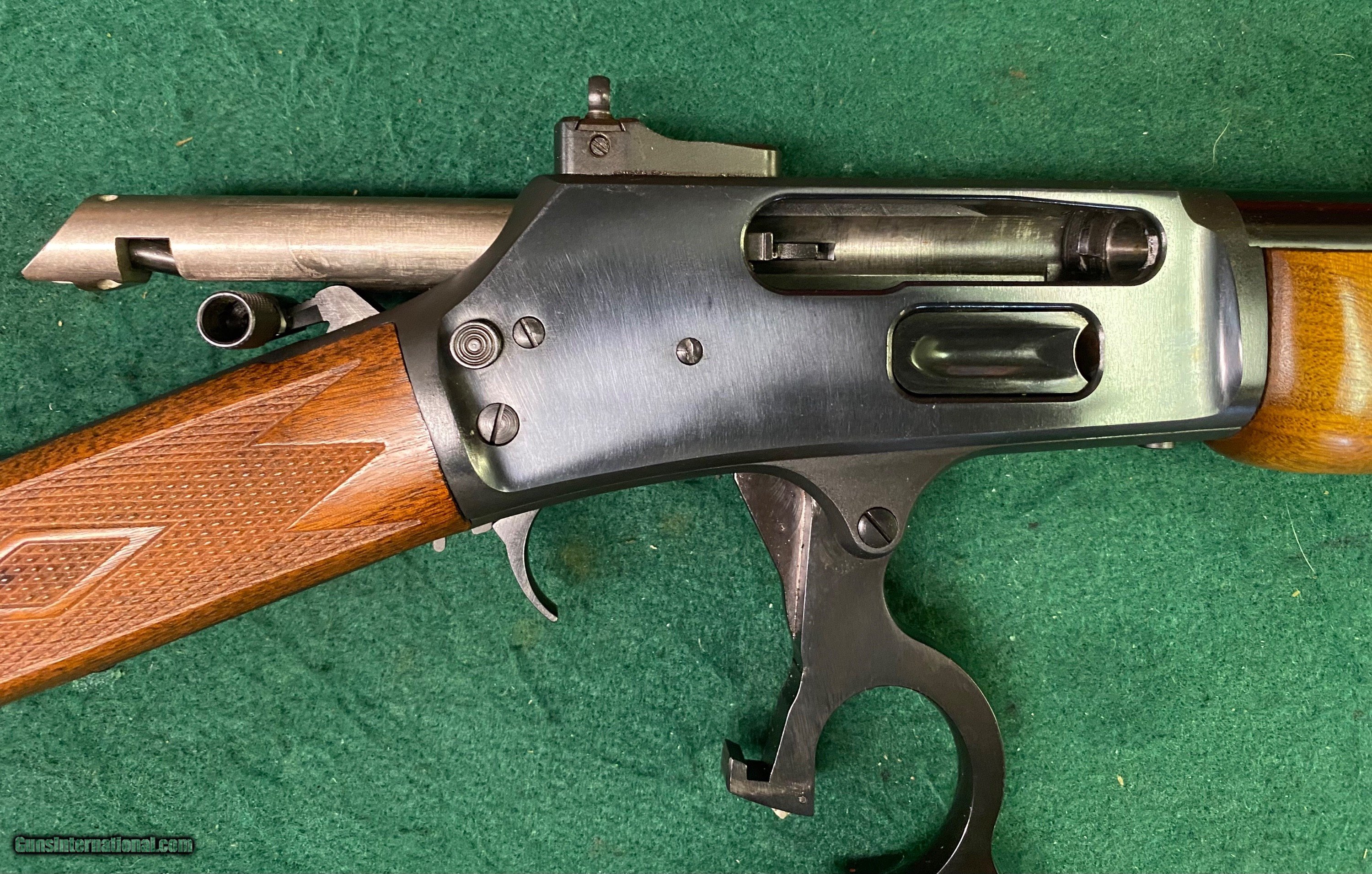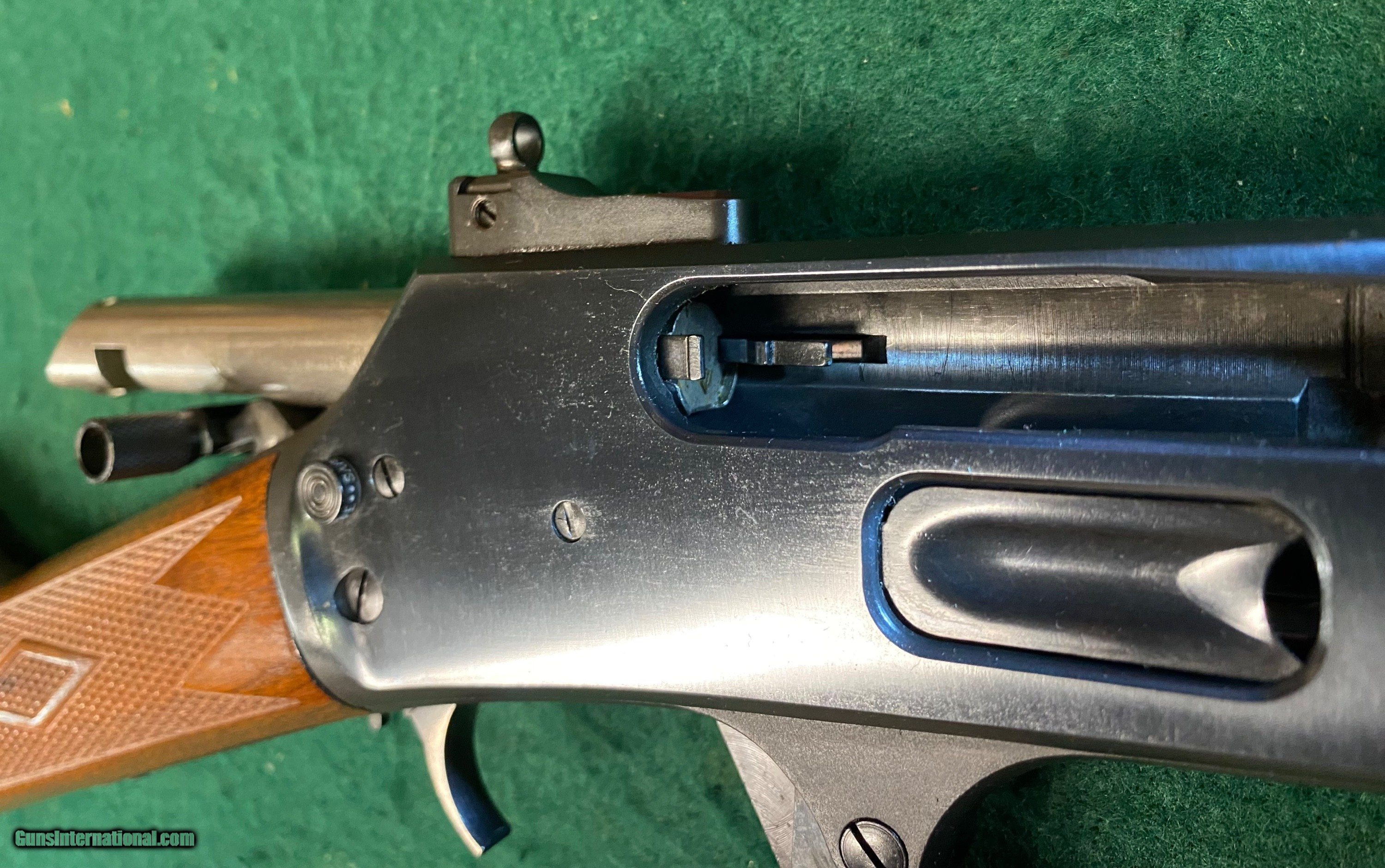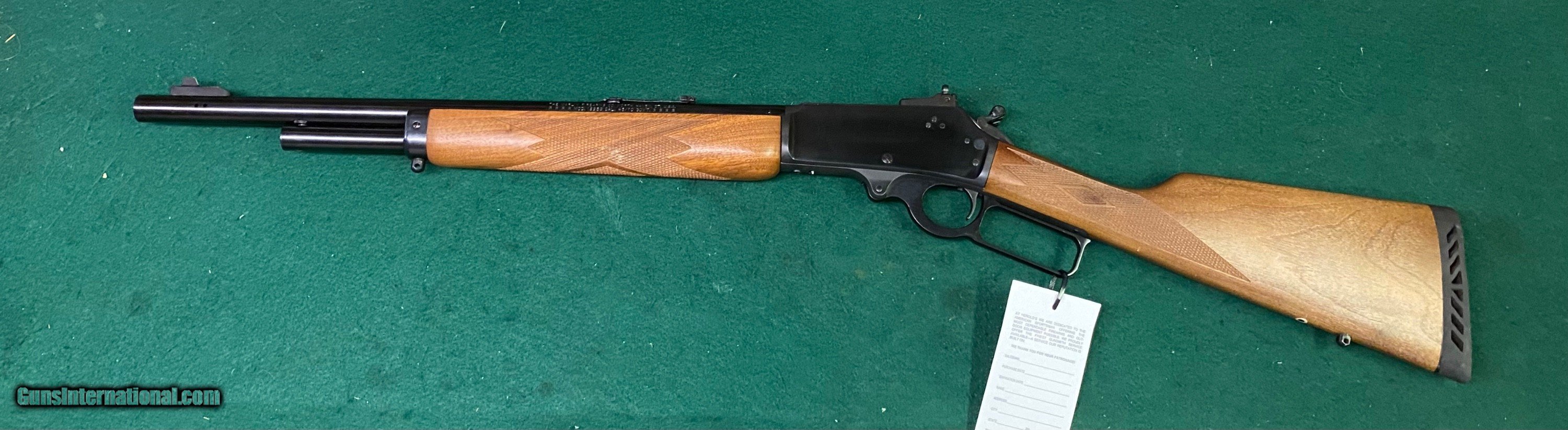 Description: Looking for a big bore lever action rifle? We have something you might be interested in: It's a Marlin 1895 in .45–70 with an 18 inch ported barrel, and a peep sight. This item is in excellent condition and it also comes equipped with sling mounts, cross-bolt safety, hammer extension and the JM stamp on the barrel. Please see pictures for more details. We reserve the right to sell this item at our retail location until a firm commitment to purchase this rifle is made on Guns International. $1595 plus shipping. Major credit cards are accepted with a 4% fee. Personal checks are also welcome (no fee added) however, we do not ship the item until your check clears our bank. Business hours are Tuesday through Saturday, 9 AM to 5 PM. Closed on Sunday and Monday, as well as some Saturdays during federal holidays. We are a brick and mortar store in business at the same location for more than two decades. If you're ever in the Waynesboro, PA. area, drop on by to see our extensive selection of vintage and modern firearms plus accessories at George Herold's Gun Shoppe. We look forward to seeing you! SOLD Rifle Caliber: .45-70 Government Manufacturer: Marlin Model: 1895 Serial Number: 99007417 Barrel Length: 18” Condition: Excellent |