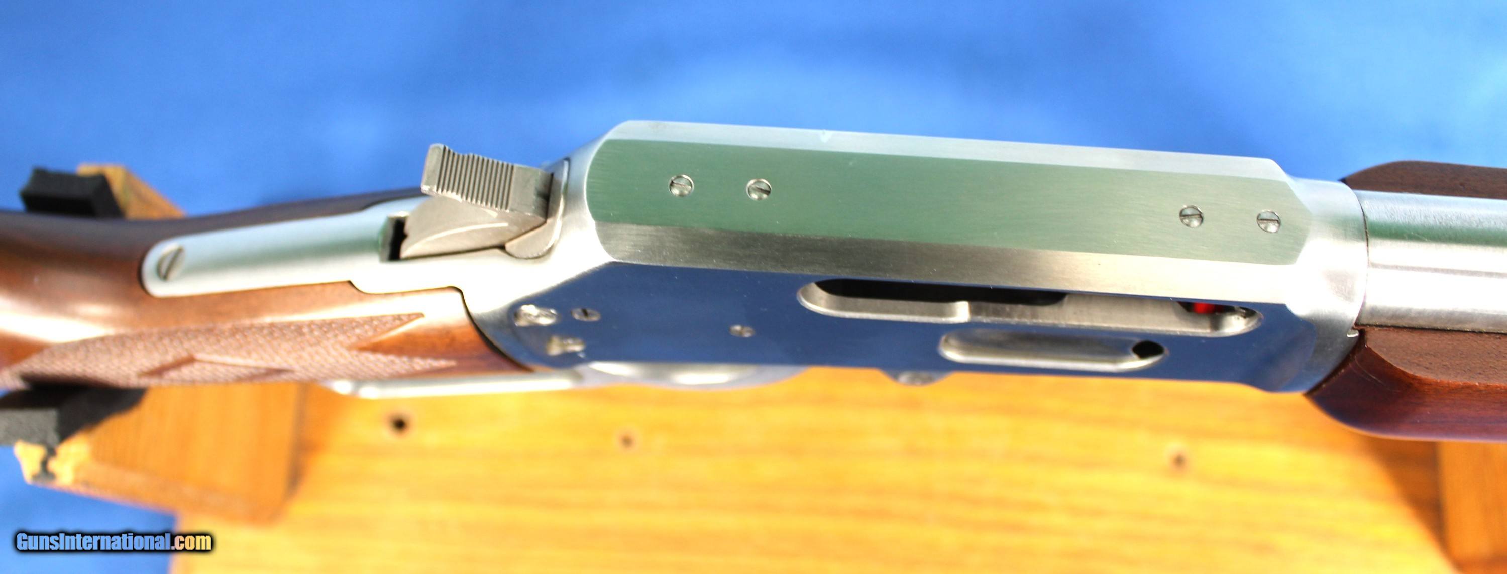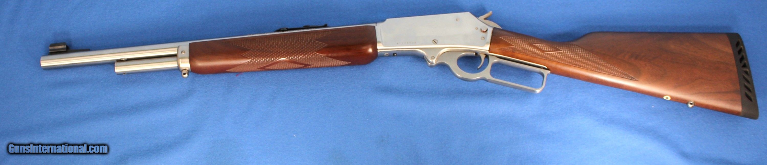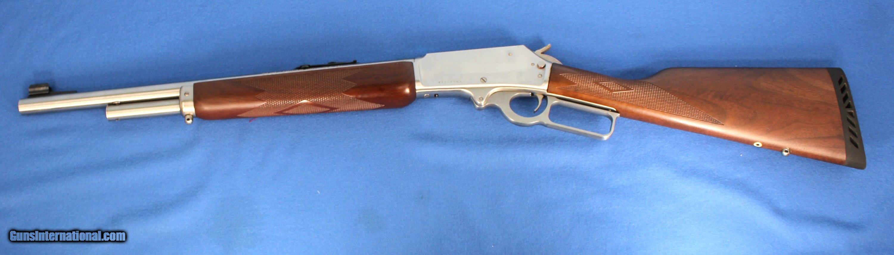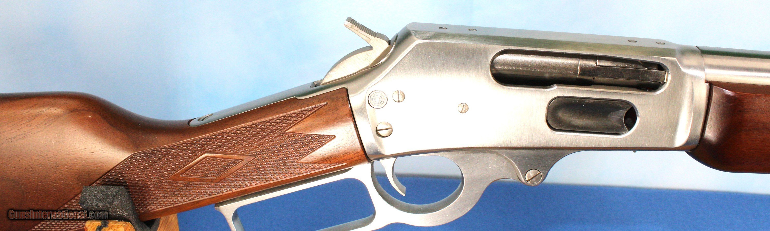 Description: MARLIN 1895GS 45-70 Specs: Caliber: .45-70 Government Capacity: 4-shot tubular magazine (JM) Barrel Length: 18.5 inches Overall Length: 37 inches Weight: 7 pounds Action: Lever action with side ejection Material: Stainless steel receiver, barrel, lever, trigger guard plate, magazine tube, and loading gate Stock: American black walnut with cut checkering and a ventilated recoil pad. Safety: Hammer block safety Sights: Semi-buckhorn rear (Damaged) and brass bead front. Condition: Used Excellent SOLD Rifle Caliber: .45-70 Government Manufacturer: MARLIN Model: 1895GS Barrel Length: 18.5 Condition: Used Excellent Metal Condition: Excellent Wood Condition: Excellent Weight: 7 lbs. |