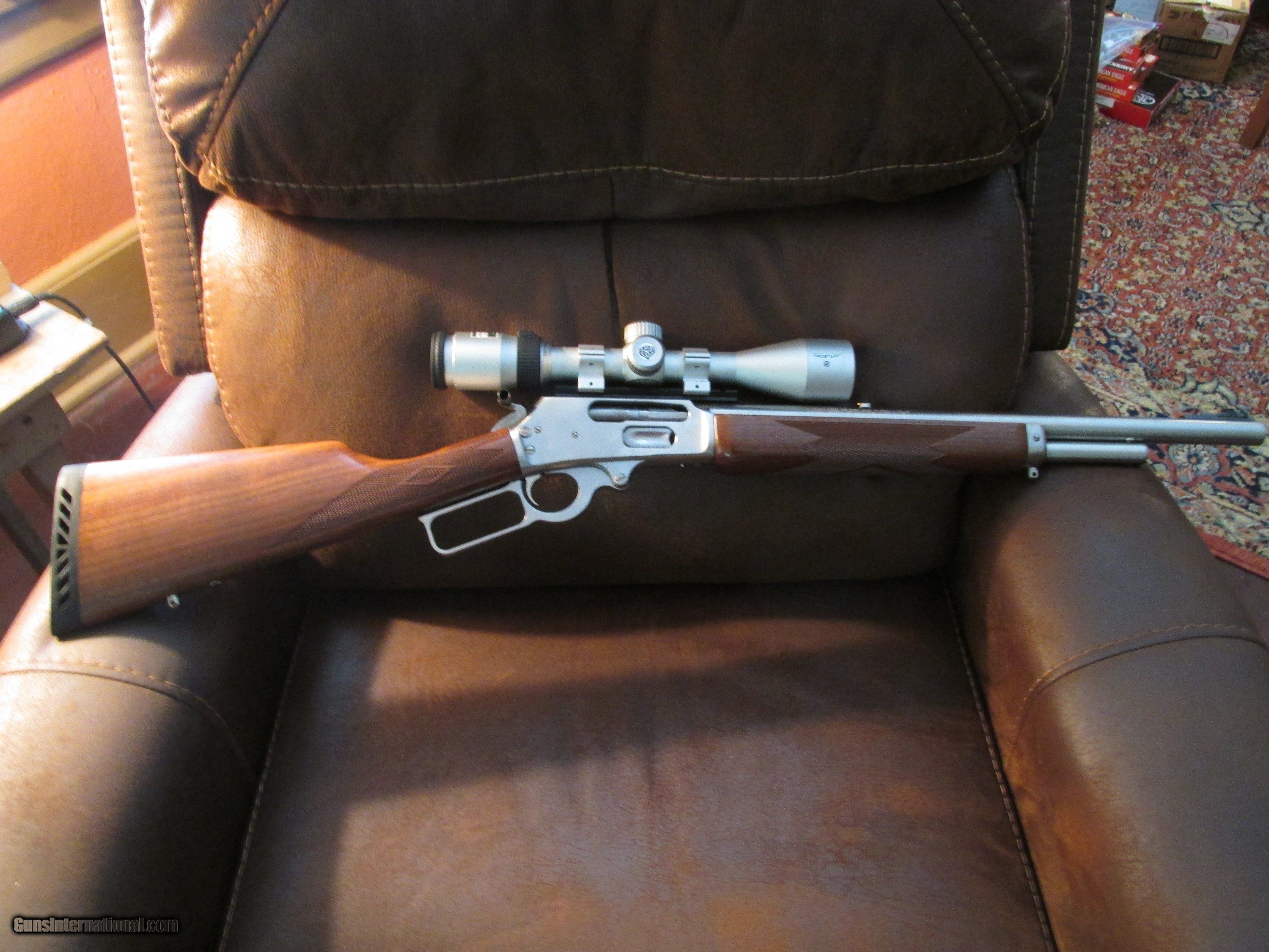 Description: This is a marlin 1895 guide scout rifle in 45-70. This rifle has a checkered walnut stock and 18.5" barrel. This has a nikon pro staff 5 scope in silver stainless to match the rifle. the scope is 2.5-10 powerwith BDC reticle. This rifle and scope look like new. Excellent shipping will be 60.00 to the lower 48. Thank you SOLD Rifle Caliber: .45-70 Government Manufacturer: Marlin Model: 1895gs Barrel Length: 18.5 Condition: excellent Metal Condition: excellent Wood Condition: excellent Bore Condition: excellent |