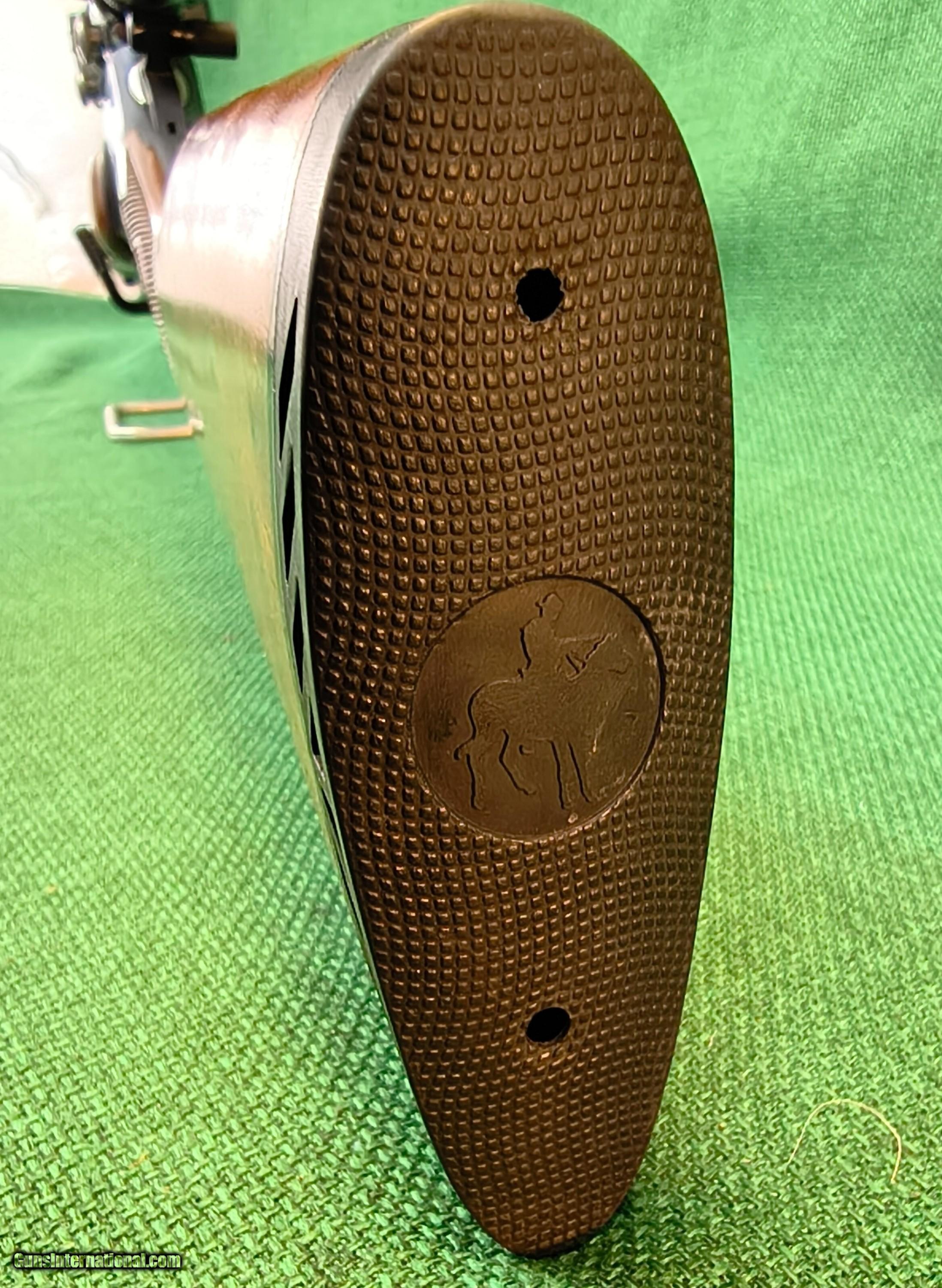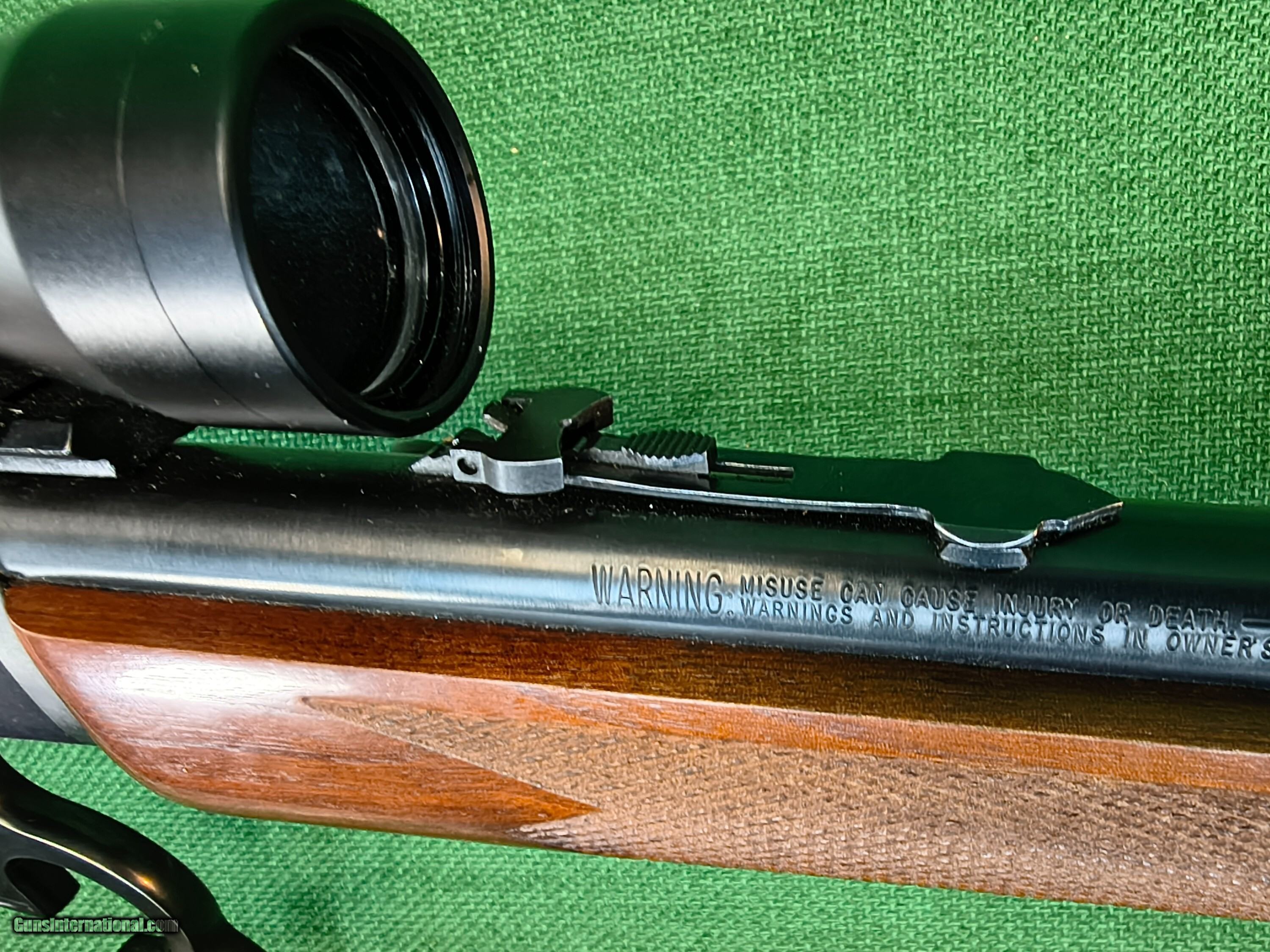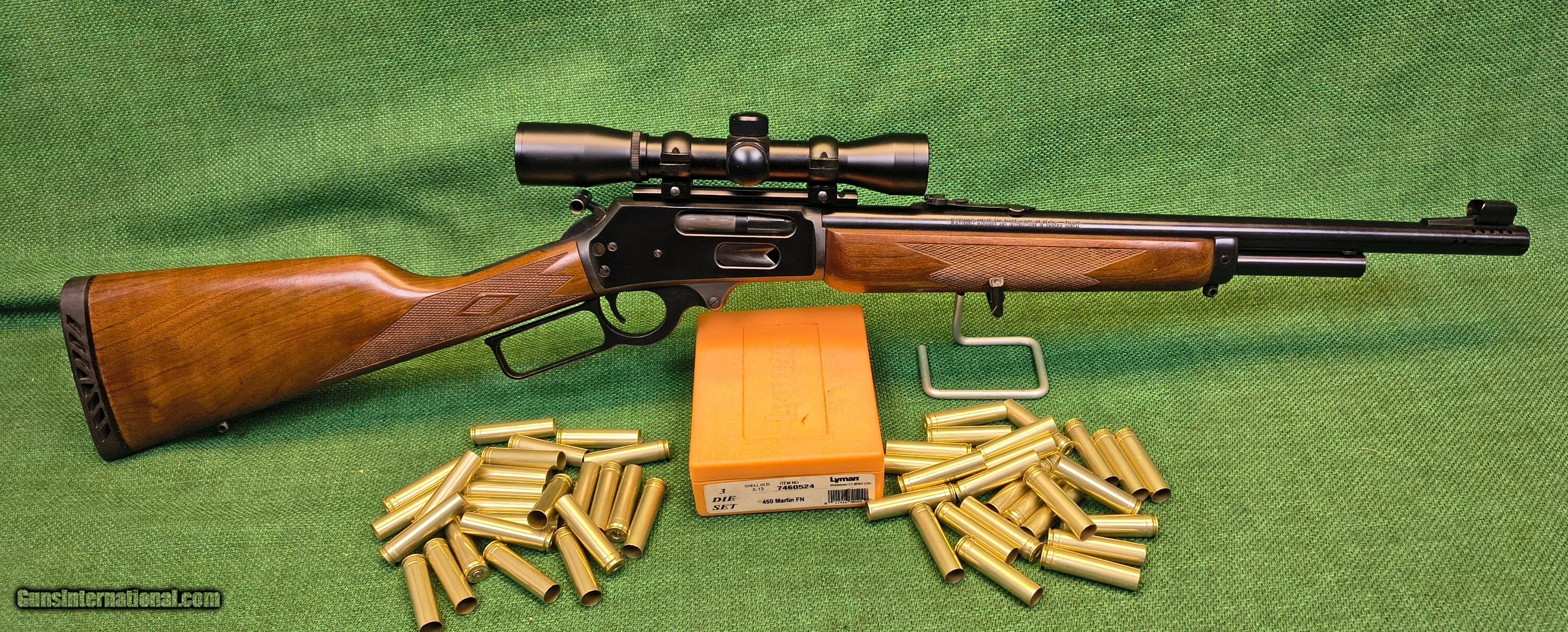 Description: This is a JM marked Marlin 1895 m lever action in 450 Marlin. This rifle comes with a 18-in ported barrel front sight hood and folding rear sight. Wood is fully checkered as seen in the photos no splits cracks things were gouges. Butt pad is original Marlin OEM and is not squished or disformed in any way. The black bullseye button is in the buttstock where it should be. Rifle comes with a hammer spur, scope mount, set of rings and a Swift scope that appears to be 4x. Receiver has been fitted with the cross bolt safety delete. Meaning that solid machined piece in place of former moving safety lever. Lever safety still in place. Also included in this package is a three die set of Lyman 0.450 Marlin dies. Shell holder is not included. In addition to the dyes you will also receive 56 rounds of cleaned brass. This brass was pin tumbled with primers removed and dry media tumbled with Dylan wax. All brass appears to be Hornady. Please see pictures for details. All used firearms should be inspected by a qualified gunsmith prior to firing. All items are sold as photographed unless other arrangements are made. We accept USPS Money Order, cashier’s check, or credit card for immediate shipping. Please note credit card sales are subject to an additional 3% fee. Shipping & Handling ($50):